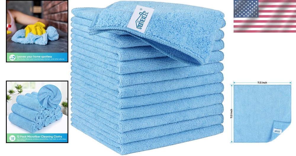 12 Pack Blue Microfiber Towels for Home Car and Window Cleaning