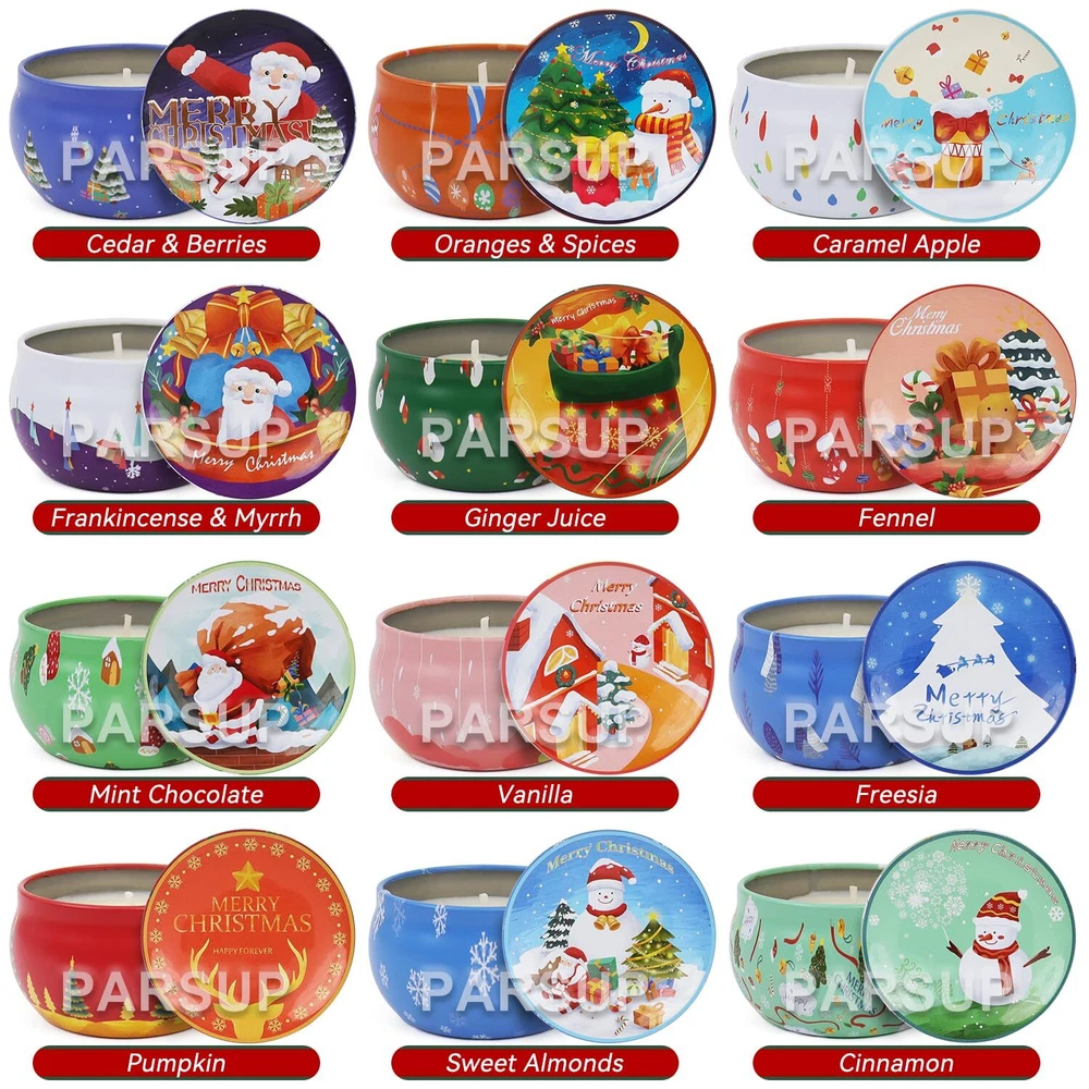 12 Pack Christmas Scented Candles, 2.5OZ Jar Candles, 12 Christmas Fragrances Scented Candle Set for Women, 12 Hour Burning Time, Candle Gift for Mom, Grandma, Teacher, Coworks 【12 CHRISTMAS-Y & COMFORTABLE FRAGRANCES】Our aromatherapy candle set come with 12 Fragrance Scents: Ginger Juice, Fennel, Freesia, Vanilla, Frankincense and Myrrh, Pumpkin, Cinnamon, Cedar and Berries, Mint Chocolate, Caramel Apple, and Oranges and Spices& Sweet Almond. Christmas scents improve Christmas atmosphere. Releasing your tension and promoting feelings of relaxation, preparing you for a better night's sleep. You can look at the bottom of the can to find out the scent of the candle. 【CUTE SIZE & LONG LASTING TIME】Each candle is about 3oz(Tin:0.5 oz, Soy Wax: 2.5oz) weight, 2.56"(6.5cm) diameter, 1.77"(4.5cm) height. The average lasting time is about 12 hours, nearly 144 hours total for 12 Packs. Tips: Trim the wicks to help increase lasting time. 【WIDE APPLICATIONS】Yoga candles, bath, dating, health care. portable cans with classic chrismtas-prints for travel, room decoration, accessories storing. It provides aromatherapy, creating mood enhancing atmospheres, relaxation for you and guests, effective in relaxing and relieving stress, suitable for people of all ages. 【PERFECT DEGIGN FOR CHRISTMAS GIFT】Our Beautiful scented candle set is designed for Christmas gift, packaged with a lovely red Christmas theme box. You can give it to your wife, friends, family, teacher or anyone you love. The whole candle gift can not only be used as a gift, but also can be treated as 12 different great christmas candle stocking stuffers. 【REUSABLE BEAUTIFUL TINS】When the scented candles is completely burned, these tins can be reused to keep your small items, such as candies, stamps, plant, small decorations, toys or keys etc Specifications Burning time: 12 hours /Each Tin, 144 hours/Set Size: 2.56 x 2.56 x 1.77 in /6.5 x 6.5 x 4.5 cm(one candle tin) Weight: 1104g (scented candle set) Kinds of Fragrances: Ginger Juice, Fennel, Freesia, Vanilla, Frankincense and Myrrh, Pumpkin, Cinnamon, Cedar and Berries, Mint Chocolate, Caramel Apple, and Oranges and Spices& Sweet Almond Ideal Gifts for women Comes with an eye-catching gift box.You can give it to your wife, friends, family, teacher or anyone you love in holiday season, suitable for all ages on any occasions. Multifunctional Decorative Tins When the candle is used up, these beautiful cans can be a storage box for your small items like keys, jewelry or as a tiny flowerpot for your plants at home. 100% Soy Wax Candles 100% handmade soy wax, and lead-free cotton wick, no toxic, no smoke. Lighting scented candle, the essential oils of the scented candle will relax your body and calm you down. Wide Applications These candles can be use when yoga, bath, dating, health care. Portable tinplate cans with vintage plant-prints for travel, room decoration, accessories storing. It provides aromatherapy, creating mood enhancing atmospheres, relaxation for you and guests, effective in relaxing and relieving stress, suitable for people of all ages. Warm Note 1.The burning time of this product varies depending on the use environment. 2.Please keep it out of the reach of children to avoid accidents. 3.When using, please put it in a safe place to avoid accidents. SHIPPING - We offer FREE shipping on all orders! - We ship within 3 business days of payment, usually sooner - We only ship to the lower 48 states, no APO/FPO addresses or PO Boxes allowed International buyers – please note: Import duties, taxes, and charges aren't included in the item price or postage cost. These charges are the buyer's responsibility. - Please check with your country's customs office to determine what these additional costs will be prior to bidding or buying. - We have confidence in our products, but if you are not fully satisfied please contact us within 30 days of purchase and you will get full refund. * Order Cancellation Policy ** You can return a product for up to 30 days from the date you purchased it. 1. The seller reserves the right to cancel the special case only due to eBay cancellation fee. 2. The decision of seller is the final. 3. The seller will respond to the cancellation request within 2 business days. Please wait for the result of cancellation. 4. In case the cancellation is not completed by some reasons, the buyer can follow the options below to get the refund. 4.1 The buyer can reject the item when it arrives. 4.2 The buyer can send the item back to the seller within 30 days If the buyer receives item (USA Shipment ONLY). The seller will provide the FREE return label to the buyer when the buyer opens " Return Item" case on eBay by using the reason as "Change my mind" ONLY. 5. When buyer has placed the order. The order will be processed and completed by automatic warehouse system within 5 minutes. In case that buyer sends the cancellation request after 5 minutes of placing the order, the request will be rejected. **Sending direct message to cancel the order is not allowed for every case.* Return Policy For the return case - If buyer would like to return the items for refund or replacement, please CONTACT SELLER to receive the free return label from seller. The refund or replacement will be processed with the tracking number of return label which is provided by seller only. The other ways of return which are not approved by seller will not be processed for the refund or replacement.
