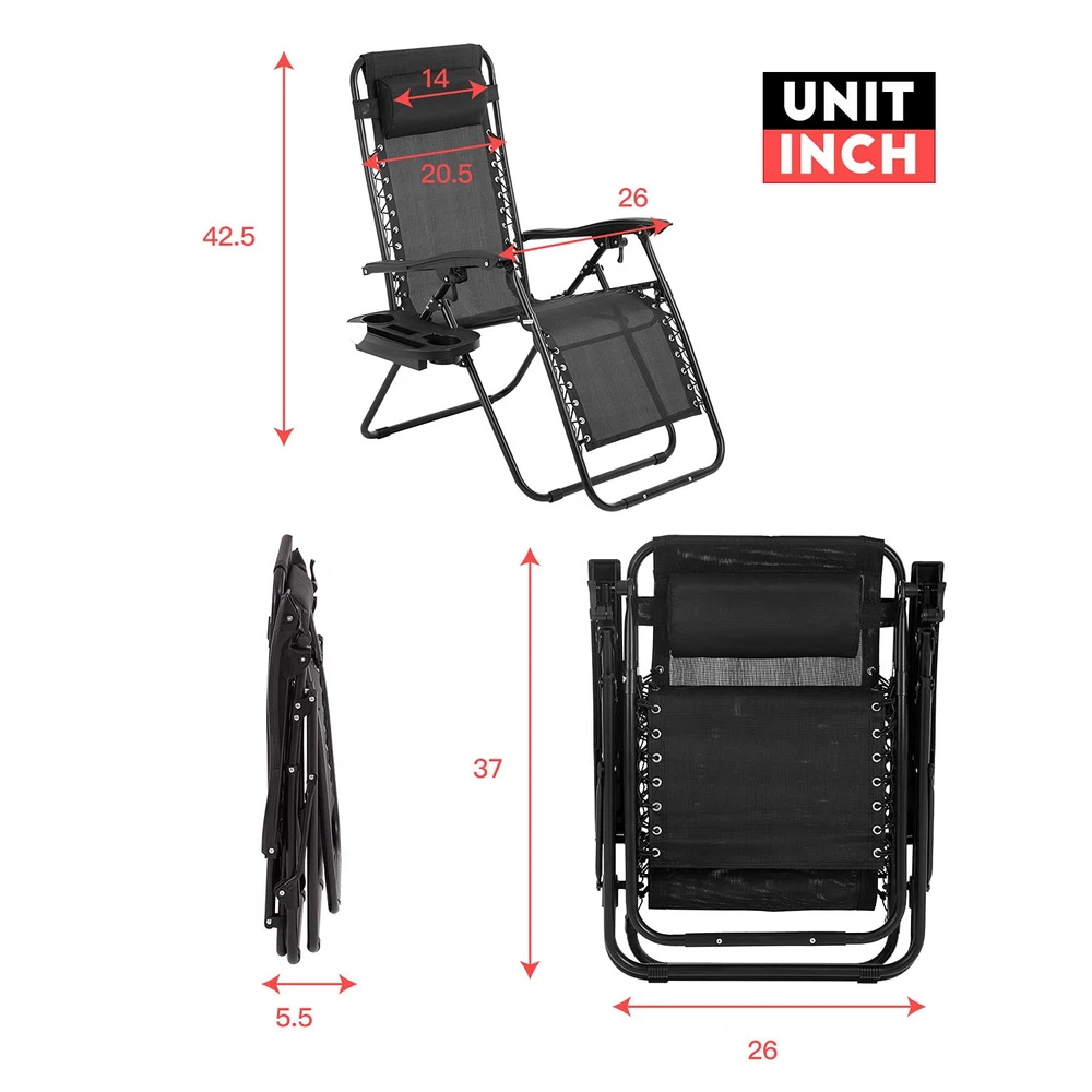 1/2 Pack Folding Zero Gravity Lounge Chair with Adjustable Recline
