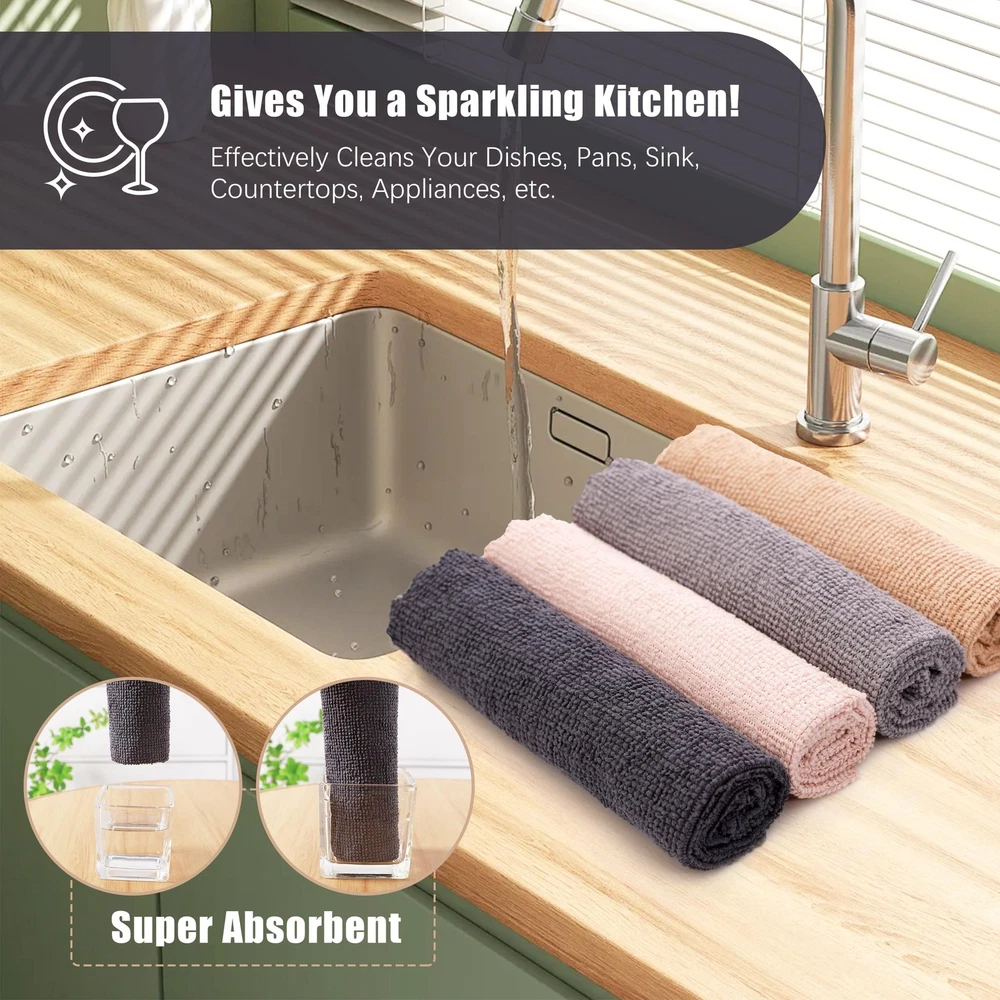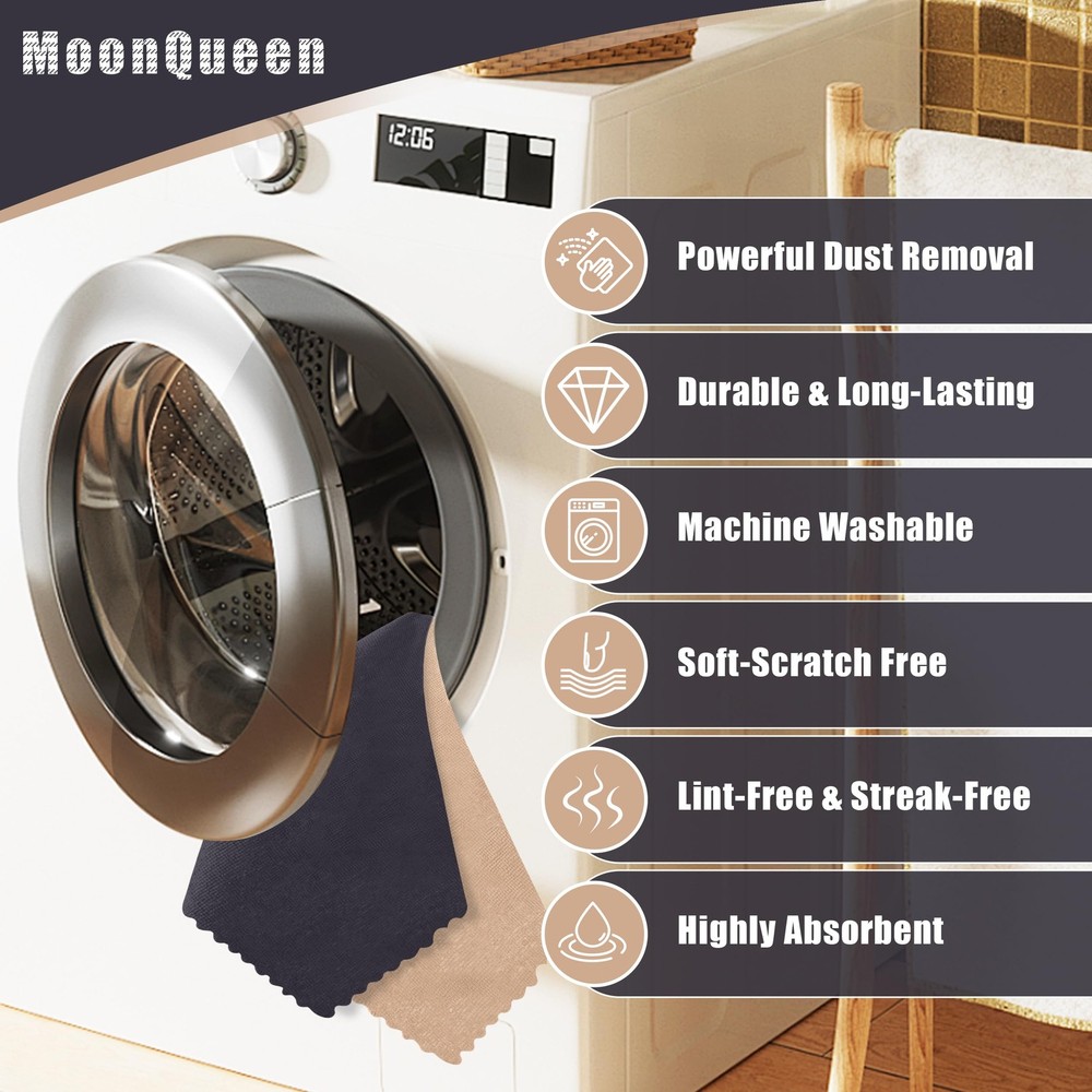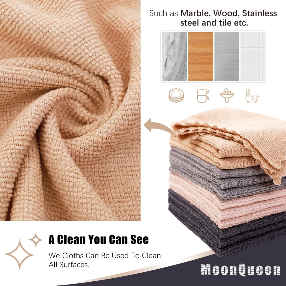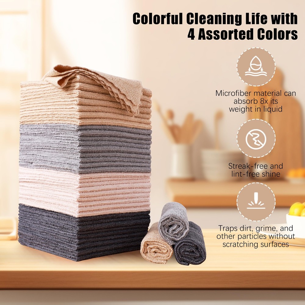 Microfiber Cleaning Cloth, 12 Pack, Grey/Light Grey/Brown/Cream ULTRA SOFT MATERIAL - These ultra soft and highly absorbent microfiber cleaning cloths are perfect for delicate surfaces such as windows, kitchenware, and cars. The gentle material ensures a scratch-free cleaning experience, making them suitable for various household and automotive cleaning tasks. Keywords: microfiber cleaning cloths, delicate surfaces, windows, kitchenware, cars ABSORBENT & LINT FREE - Made of 85% polyester and 15% Polyamide, these non-abrasive cleaning rags offer high absorbency and are lint-free. Whether you use them with or without water, they can quickly soak up moisture from countertops and tables without leaving behind lint or streaks. They a spotless finish on worktops, appliances, mirrors, and more. TACKLE VERSATILE - Our premium microfiber towels are not only ideal for general cleaning tasks, but also perfect as dish rags. They effectively remove grease and particles from microwave ovens, plates, and pots, leaving behind a sparkling clean surface. Additionally, these towels are excellent dusters that effortlessly eliminate fingerprints from silverware and glasses, ensuring a spotless and hygienic kitchen. REUSABLE - These microfiber towels are designed for long-lasting use. They can endure hundreds of washings without compromising their performance. In addition to being durable, they are lightweight, super absorbent, and quick-drying, making them perfect for everyday cleaning tasks. 's mission: We are dedicated to making your housework easier and the world cleaner. If you have any questions about our product or after-sale service, please feel free to . We are here to provide support and advice to ensure your satisfaction.