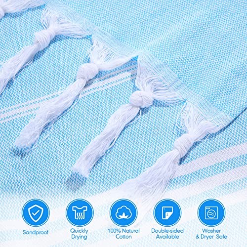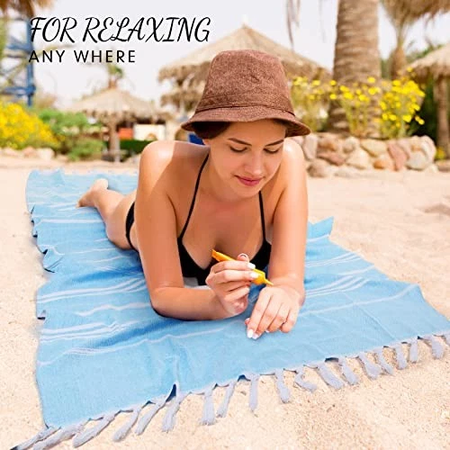 Return Policy Fast Delivery Trusted seller 12 Pack Turkish Beach Towel Bulk 71x36 Inches Cotton Turkish Bath Oversized Sand Free Quick Dry Blanket Towels for Beach Pool Bathroom(Sky Blue) Product Description Large Beach Towels: the Turkish beach towels are made of cotton, can be applied regardless of front or back; Nice absorbent, sturdy, not easy to deform, fade or shrink; Extra large beach towel measures approx. 36 x 71 inches when unfolded, each beach towel is individually wrapped for your safe and clean using Quick Dry and Sand Free: the Turkish beach towels are suitable for using at the beach, w the sand can be shaken off quickly, so you do not have to deal with the sand afterward; The towel dries quickly and is soft and lightweight; Dry faster with air dryer and tumble dryer in low temperature Multi Functional: these Turkish bath towels can be taken to the beach and applied as pool towels; Whether as a bath towel, swim towel or beach mat; Use your imagination, they can also be applied as aprons, shawls and scarves, bringing you a nice experience of using beach towels Portable Travel Towel: the Turkish towels are thin, but have the same absorbent properties; You can take Turkish towels with you wver you go; Convenient to pack and carry for travel, not bulky Ideal Gift: the oversized beach towels are ideal gifts for family and friend, which can be applied in bathrooms, spas, beaches, gyms and swimming pools, etc., they will be delighted to receive such versatile towels Shipping Returns Payment Shipping Shipping is FREE to all addresses other than APO/PO boxes in the lower 48 states. All our stock ships from US-based warehouses. Shipped via USPS or UPS (depending on location and package weight) Unless stated otherwise, all orders will ship within 24-72 hours of your payment being processed. Check our feedback to see the great reviews of FAST shipping we offer. Returns Seller does not accept returns Payment We currently accept payment via eBay managed payments only. Once payment is cleared, we will dispatch your shipment within 1-3 business days. Please refer to the "Shipping" tab for more information regarding shipping speed to your destination.
