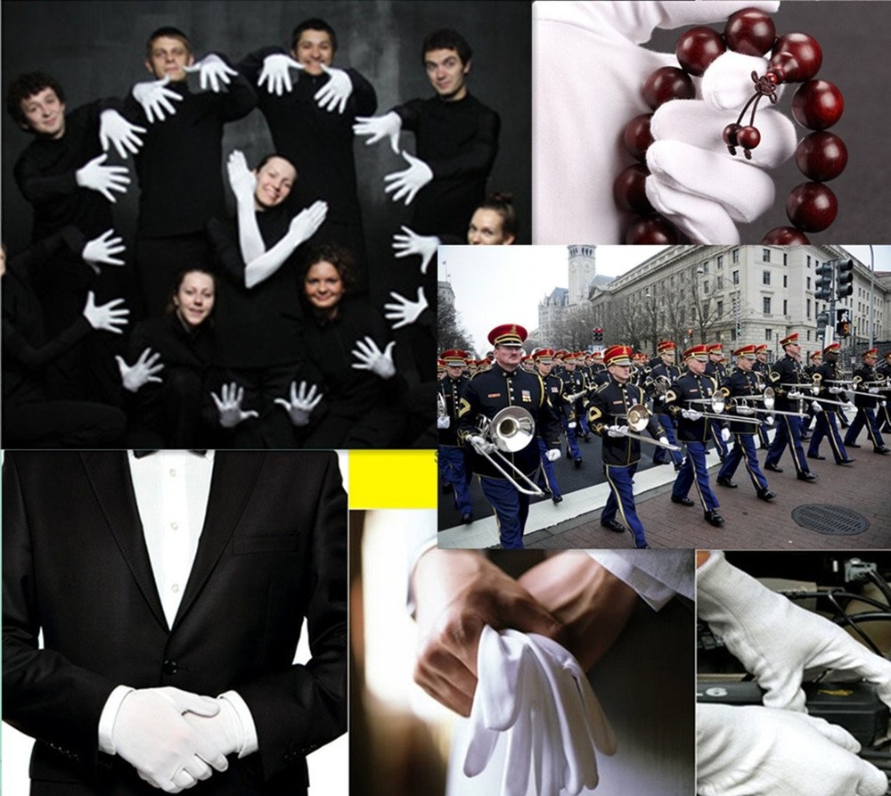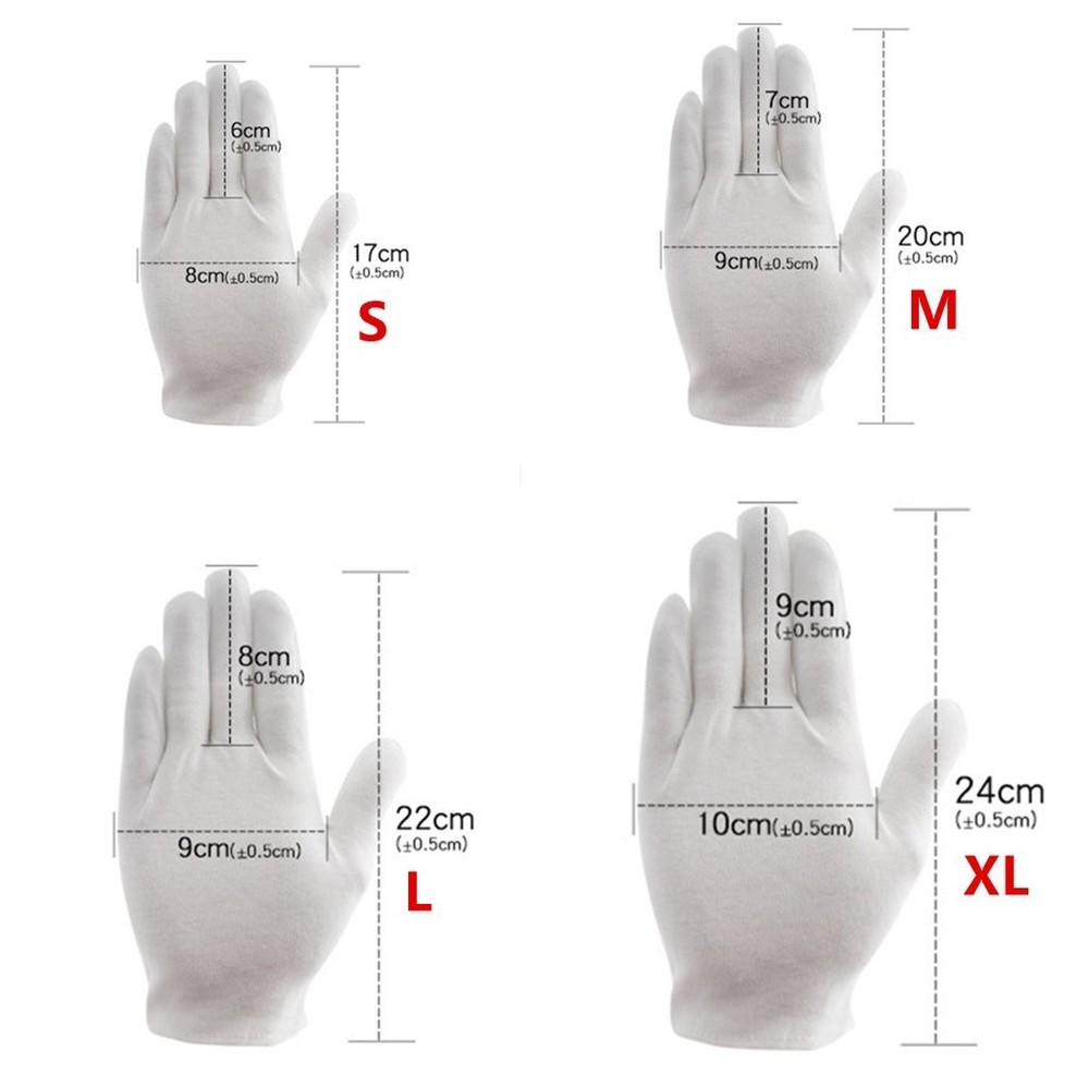 Gloves ♣ Gloves come in bulk pack of 12 pairs (24 pcs) ♣ Size S fit most 8-14 years old teens, Size M fit for most women, Size Large and extra large for most men. ♣ Made of cotton ♣ Three seams on the front of gloves for a more fashionable and elegant look. ♣ Perfect for Parade, Catering, Marching band, Santa Costume, Inspection, Magician, Tuxedo Formals, Costume, Military, Doorman, Fire or Police uniforms. ♣ Package includes 12 pairs of white gloves Gloves come in bulk pack of 12 pairs(24 pcs) Size S fit most 8-14 years teens, size M fit for women, size Large and extra large for men. Made of cotton fabric, these gloves are hand/machine washable and re-usable, lightweight and comfortable to wear The white cloth gloves are soft and convenient to take on/off. Good stretchy make you work with flexibility Safe and Convenient to Use: They will dry the sweat in your hands and the oil while working, Thicker fabric works great to keep your hands clean and protect your hands from possible injury Great for Stage performance, academy, school, band, parade, butler, inspection, church, funeral, maid of honor, masquerade etc