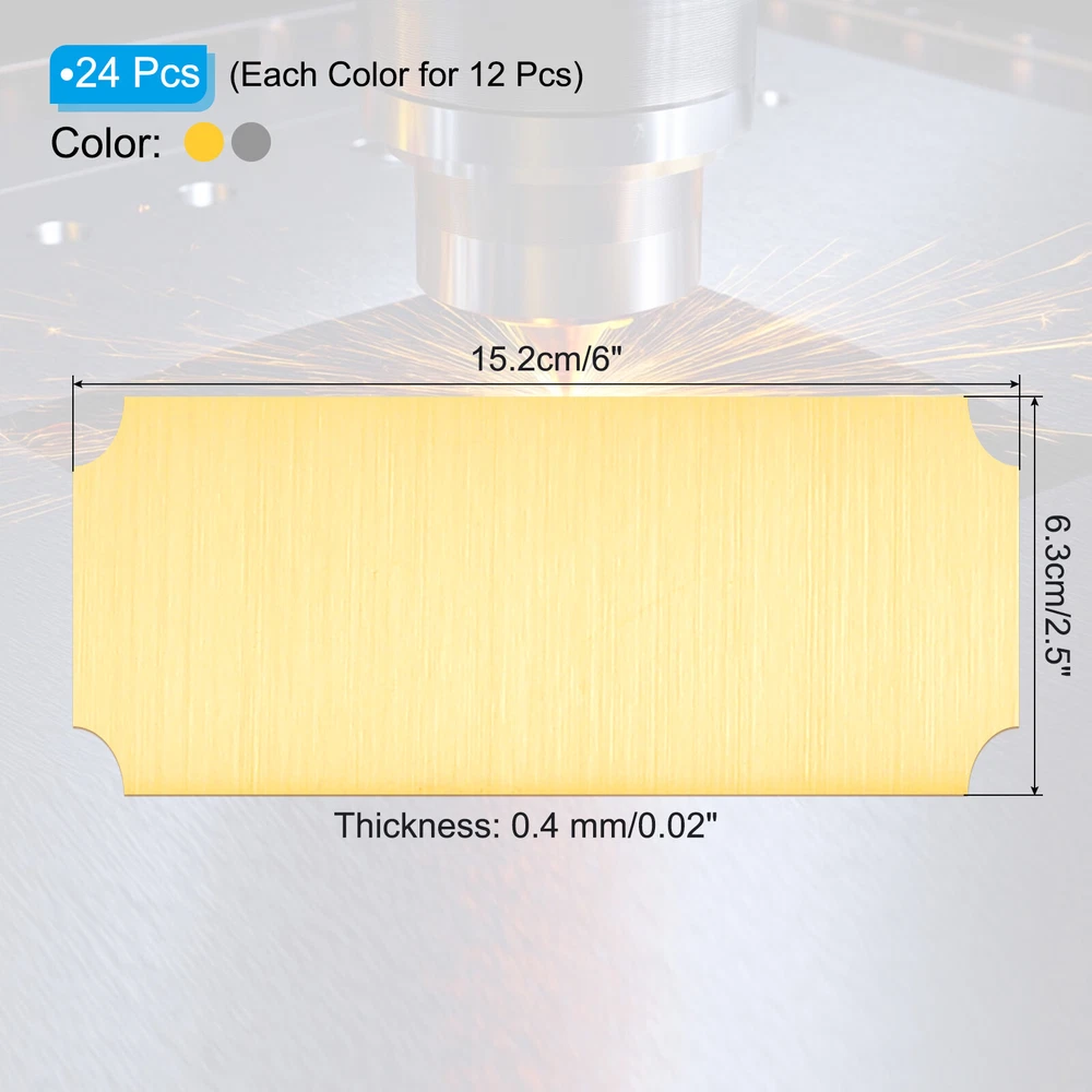 Document Our engraved nameplates are perfect for mounting on plaques, picture frames, sweaters, trophies, bags, display boxes, flag cases, and anything else.SpecificationMaterial: Stainless SteelColor: Silver/GoldSize: 15.2 x 6.3 cm/6 x 2.5 Inch(L*W)Thickness: 0.4 mm/0.02 InchPacking List: 12 Pcs x Engraved NameplateAdvantageOur engraved nameplates are made of brushed stainless steel which is durable, stable, not easy to fade, rust, or break, and can be used for a long time. With a smooth surface, it will not scratch your skin.The right thickness makes the plate stronger and allows for deeper engraving. These elegant nameplates have a beautiful luster and a simple design. Suitable for various crafts to add brilliance.The protective film design can effectively prevent scratches. The adhesive backing design allows you to stick this nameplate anywhere without any tools and it can be firmly on the objects.InstructionPlace a metal workbench block underneath the blank stamping tags for better stamping.NOTE:1. There may be light scratches and blemishes due to shipping, but they can be polished.2. Only for laser engraving, not suitable for mechanical engraving.3. Please remove the protective film before use. 12 Pcs 6" x 2.5" Engraved Name Plate Picture Frame Label Art Tag, Silver/Gold Our engraved nameplates are perfect for mounting on plaques, picture frames, sweaters, trophies, bags, display boxes, flag cases, and anything else. Specification Material: Stainless Steel Color: Silver/Gold Size: 15.2 x 6.3 cm/6 x 2.5 Inch(L*W) Thickness: 0.4 mm/0.02 Inch Packing List: 12 Pcs x Engraved Nameplate Advantage Our engraved nameplates are made of brushed stainless steel which is durable, stable, not easy to fade, rust, or break, and can be used for a long time. With a smooth surface, it will not scratch your skin. The right thickness makes the plate stronger and allows for deeper engraving. These elegant nameplates have a beautiful luster and a simple design. Suitable for various crafts to add brilliance. The protective film design can effectively prevent scratches. The adhesive backing design allows you to stick this nameplate anywhere without any tools and it can be firmly on the objects. Instruction Place a metal workbench block underneath the blank stamping tags for better stamping. NOTE: 1. There may be light scratches and blemishes due to shipping, but they can be polished. 2. Only for laser engraving, not suitable for mechanical engraving. 3. Please remove the protective film before use. Hot Item Payment 1.We accept eBay payment . 2.Payment must be received within 7 business days of auction closing. Shipping 1.We ship to your eBay or Paypal address. Please make sure your eBay and Paypal address is correct before you pay. 2.Items will be shipped within 1-3 business day when we received payment. 3.Delivery time depends on destination and other factors. Description Policy 12 Pcs 6" x 2.5" Engraved Name Plate Picture Frame Label Art Tag, Silver/Gold Our engraved nameplates are perfect for mounting on plaques, picture frames, sweaters, trophies, bags, display boxes, flag cases, and anything else. Specification Material: Stainless Steel Color: Silver/Gold Size: 15.2 x 6.3 cm/6 x 2.5 Inch(L*W) Thickness: 0.4 mm/0.02 Inch Packing List: 12 Pcs x Engraved Nameplate Advantage Our engraved nameplates are made of brushed stainless steel which is durable, stable, not easy to fade, rust, or break, and can be used for a long time. With a smooth surface, it will not scratch your skin. The right thickness makes the plate stronger and allows for deeper engraving. These elegant nameplates have a beautiful luster and a simple design. Suitable for various crafts to add brilliance. The protective film design can effectively prevent scratches. The adhesive backing design allows you to stick this nameplate anywhere without any tools and it can be firmly on the objects. Instruction Place a metal workbench block underneath the blank stamping tags for better stamping. NOTE: 1. There may be light scratches and blemishes due to shipping, but they can be polished. 2. Only for laser engraving, not suitable for mechanical engraving. 3. Please remove the protective film before use. Hot Item Payment 1.We accept eBay payment . 2.Payment must be received within 7 business days of auction closing. Shipping 1.We ship to your eBay or Paypal address. Please make sure your eBay and Paypal address is correct before you pay. 2.Items will be shipped within 1-3 business day when we received payment. 3.Delivery time depends on destination and other factors.