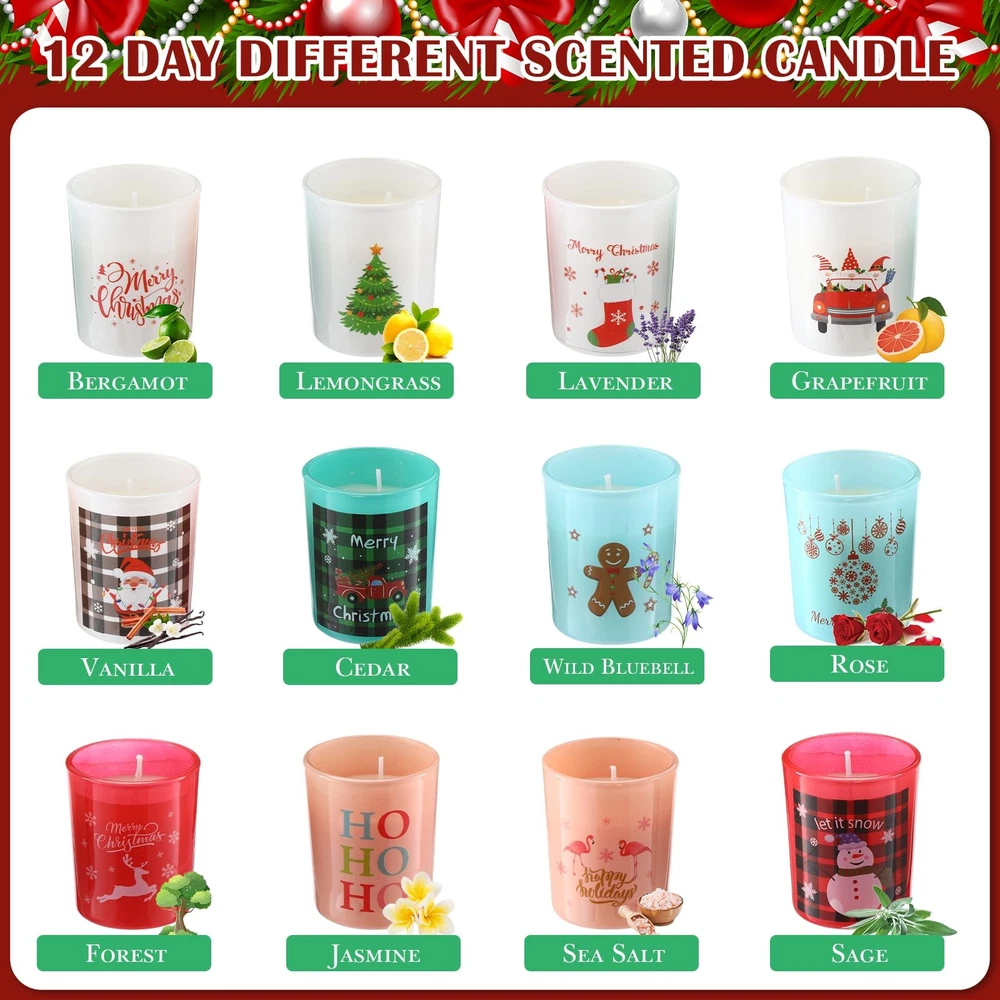 12 Pcs Candle Advent Calendar 2025 12 Days of Christmas Scented Candles Gift ...