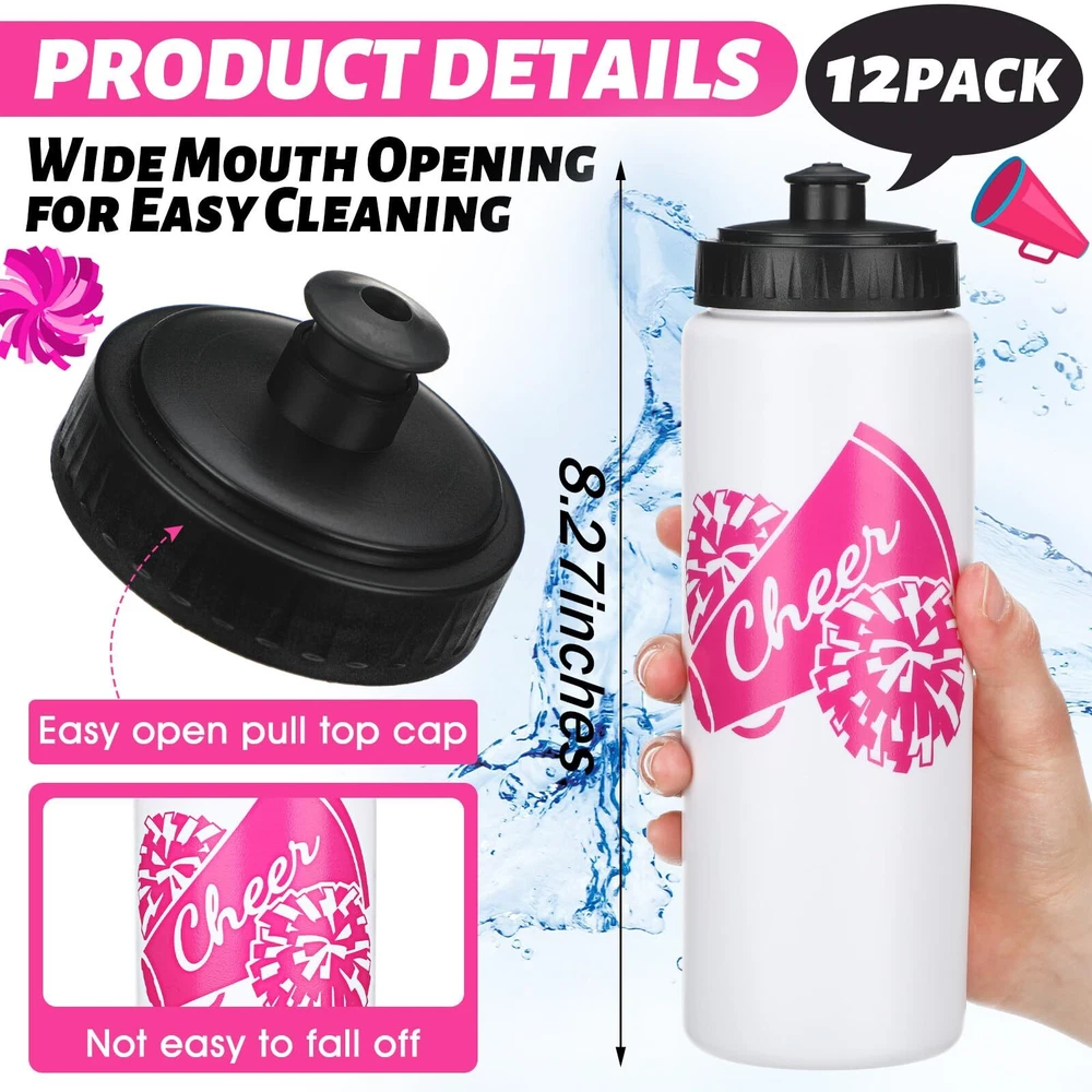 Features: The sport water bottle can be applied as a practical gift for friend, family member, classmate, colleague and more, reusable and delicate. These cheer water bottles bulk are suitable for cheerleading, football, baseball, basketball, picnic, camping and more, proper capacity is suitable for use. Specifications: Material: HDPE plastic material Color: as shown in pictures Size: about 8.27 x 2.76 x 2.76 inches/ 21 x 7 x 7 cm, 20 oz of capacity Package includes: 12 x Squeeze water bottle Notes: Manual measurement, please allow slight errors on size. The color may exist a slight difference due to different screen displays. Ideal Size and Quantity: measuring approximately 8.27 x 2.76 x 2.76 inches and having a generous capacity of 20 oz, these water squeeze bottles provide ample hydration without the need for frequent refills; Ideal for sporting, trekking, camping, or daily use; Plus, the package includes 12 bottles, truly meeting the hydration needs of teams and large groups Cheerful Sports Themed Design: never compromise on style while staying hydrated; Each squeeze water bottle features a vibrant sports cheerleading theme, like pom pom and loudspeaker, appealing to the sporty spirit and promoting active hydration; Whether it's for exercise or a big game, it perfectly marries function and style Reliable HDPE Construction: made from polyethylene (HDPE) plastic material, these cheer water bottles are reliable, lightweight, and safe for use; It doesn't fade or retain odors, promising not just longevity but also a neat and clean usage every time; Say goodbye to plastic odors and hello to nice hydration Versatility: with their sporty design and solid build, these squeeze bottles 20 oz have wide applications; They can be utilized in a variety of sports settings such as cheerleading, football, baseball, basketball, and much more; In addition, their portable size makes them ideal for outdoor activities like hiking, camping, and picnics Comprehensive Features: these sports squeeze water bottles are not only delicate but also practical; They have been designed with an ample capacity to keep hydration levels high during activity; The cheerleading designs are fun and vibrant, appealing to all sports enthusiasts; The quality HDPE material ensures durability, longevity, and safety for everyday use