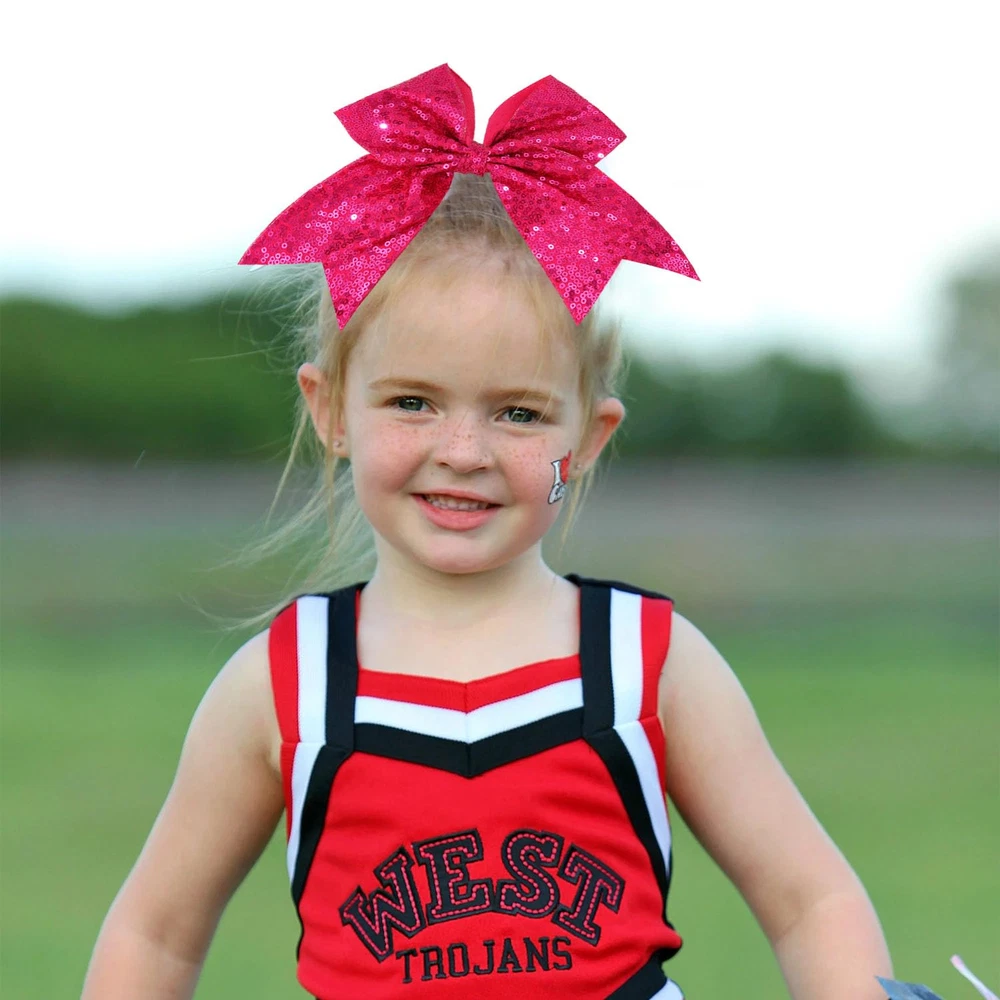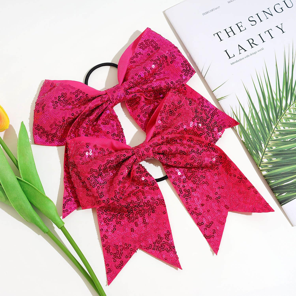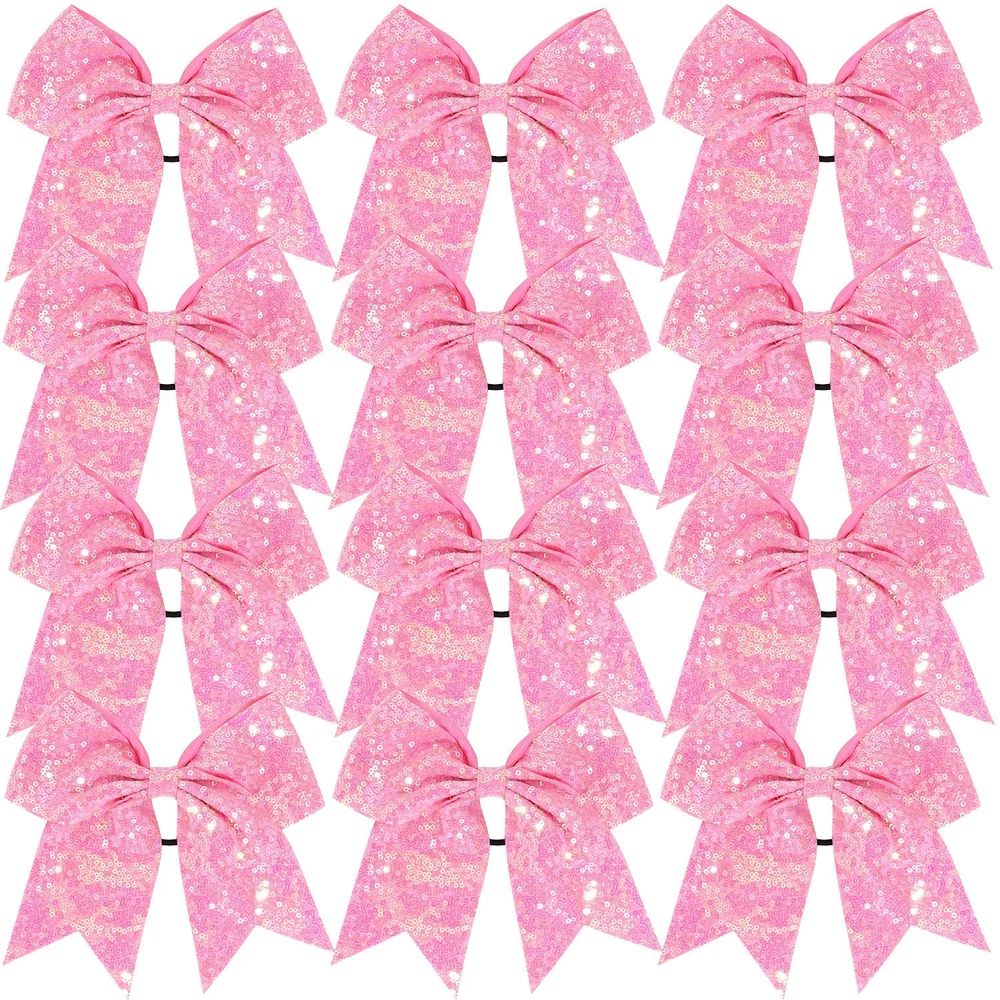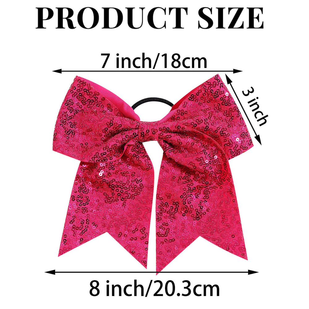 Package include: 12 pieces gold hair bows ties, each bow measures 18 cm/ 7 inch in length; Cute and fashionable hair accessory for girls and ladies to wear. Stretchy and stable: the cheer hair bows are made of a 3-inch wide sequin ribbon with a sturdy elastic rubber hair band, covered with fabric to prevent damage, can hold your hair firmly in place. Easy and comfortable to wear: the back of the cheerleading bow is designed with a durable elastic band that fits easily; And you don't have to worry about losing accessories, the sporty bow has good adhesion and won't get stuck or tangled on your hair, giing you a comfortable wear feeling. Match many outfits: the jumbo cheer hair bows are great for team cheer competitions, tournaments, photography, party, festival or any other special events; Also great for everyday use, wear them to school, pair them with dresses, jeans and T-shirts, backpacks and lockers decoration, Christmas tree ornament, etc. Great for school spirit: the school spirit shines bright with these ponytail bows, they can be easily attached to a ponytail with a wrapped elastic hair tie, allowing you to jump and cheer to your heart's content without fear of losing your bow; A great option for cheer camp, practice, or every day use. These shiny hair scrunchies is fashionable, durable,elastic comfortable, can match for show, gym dance,party,scrunchies, make you charming, perfect gift for youself or your friends and families. Specifications: Material: Shiny fabric and durable elastic band 12 Pcs fashion style hair ties
