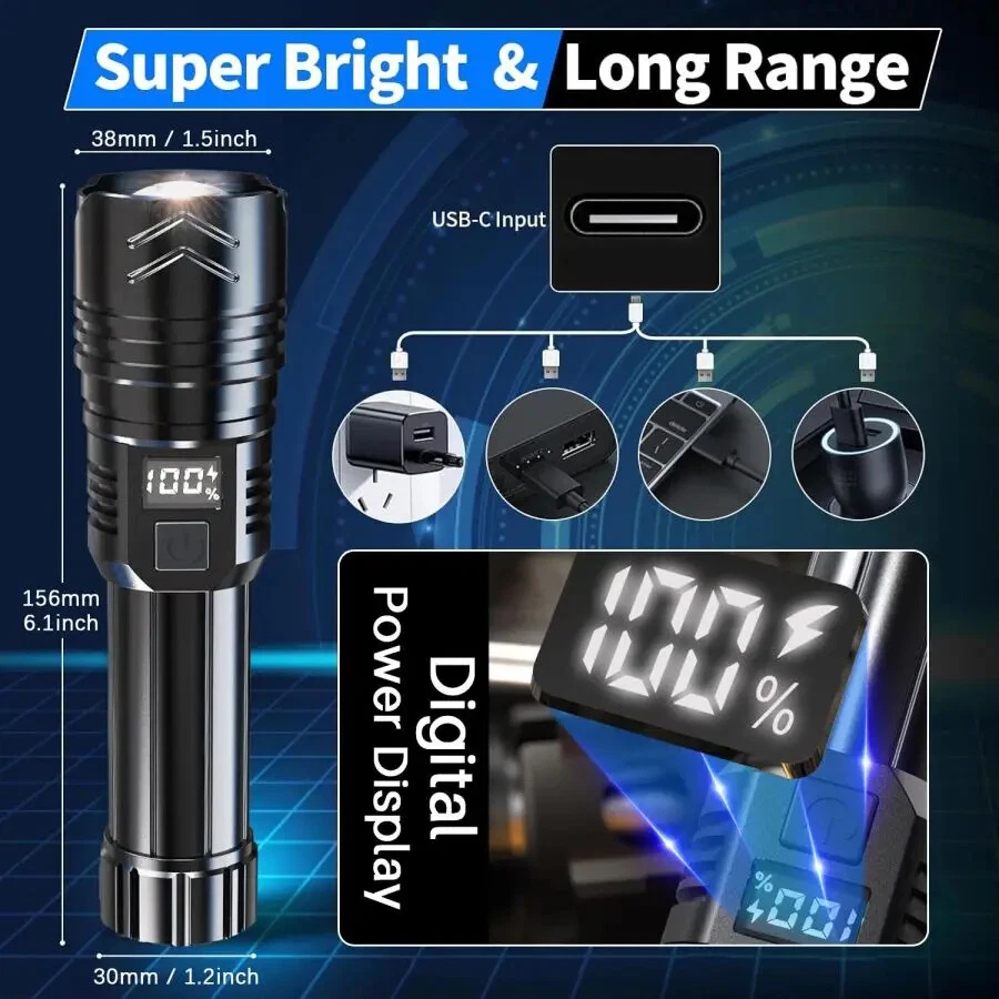 Specification: Origin: Mainland China Material: ABS Color: Picture Color Product Size: 158mm*38mm*30mm/6.2in*1.5in*1.2in Gear: Strong Light - Low Light - Flash Rated Power: 15W(Max) Range: 220m Voltage: DC3.7V Anti-Drop Height: 1.5m Applicable Battery: (Built-In) Working Time: About 5h Charging Time: About 1h Note: Due to the different monitor and light effect, the actual color of the item might be slightly different from the color showed on the pictures. Thank you! Please allow 1-2cm measuring deviation due to manual measurement. Package include: 1*High Power Flashlight or 2*High Power Flashlights(As picture shown)