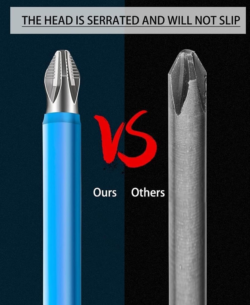 12 Pieces Magnetic Phillips & Pozidriv Screwdriver Bit Set, 1/4 Inch Hex Shank Anti Slip Drill Bits PH1, PH2, PH3, PZ1, PZ2, PZ3-50 mm Length 12 Pieces Magnetic Phillips & Pozidriv Screwdriver Bit Set, 1/4 Inch Hex Shank Anti Slip Drill Bits PH1, PH2, PH3, PZ1, PZ2, PZ3-50 mm Length FREE AND FAST SHIPPING! About this item Package Content Package includes 6pcs magnetic phillips bits and 6pcs pozidrive bits, PH1 PH2 PH3 PZ1 PZ2 PZ3, 2pcs for each size. Total length: 50 mm / 2". Premium Material The phillips head drill bits are made of heat treated S2 steel, high hardness, impact resistance, shock resistance, wear resistance. Magnetic Design With magnetic tip, the cross head bit can lock firmly and accurately the screws, no damage to the screw and screwdriver head. High Compatibility With 1/4 inch hex shank, the short bits fit for electric screwdrivers, hand screwdrivers, air drills, electric drills, cordless drills and so on. Product We offer a 30-Day Return Policy on items which you are not completely satisfied with. You have the option for a full-refund or an exchange of the item. No returns are available on items shipped outside of the US . Shipping We offer Free Shipping to the US and ship within 2 business days of payment, usually sooner. We use UPS express shipping. That's why your products are usually delivered within 3 days . Contact We try our very best to make sure every customer is completely satisfied. If there's a problem , message us! We're happy to help. 24/7 live chat available.