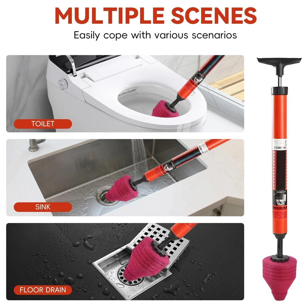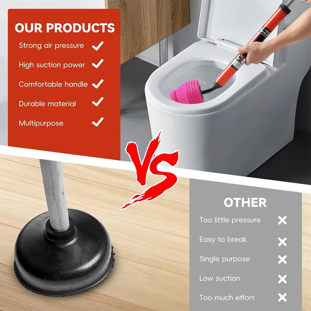1~2 Pk Toilet Unblocker 2025 New Toilet Clog Remove High Pressure Toilet Unblock Features: Powerful Air Pressure for Quick Unclogging: Equipped with a high-pressure air system, this toilet plunger uses up to 120 to clear blockages in seconds, restoring normal quickly and efficiently. Ergonomic and Design: Featuring a comfortable, non-slip plastic handle and stainless housing, this plunger is designed for long-lasting use without the need for costly plumber services. Versatile and Efficient: Perfect for toilets, sinks, floor drains, and more, this plunger clears clogs caused by hair, , and debris, offering a reliable solution for various plumbing problems around your home. Easy to Use: With a simple installation process and intuitive operation, this plunger allows you to quickly solve plumbing issues without help, saving both time and . Mess- and : splashing by covering the area with a transparent film, ensuring a clean and unclogging experience, with no mess left behind. Product Description: Toilet Unblocker 2025 New Toilet Plunger Upgraded Toilet Plungers Plunger For Unblocking Bathtub Shower Floor Drain Pipe Clog Material: Plastic Color: as the picture shows, (Due to the difference between different monitors, the picture may have slight color difference. please make sure you do not mind before ordering, Thank you!) Package weight: 500g Package size: 35x5x5cm,(Please allow 1-3mm error due to manual measurement. please make sure you do not mind before ordering.)