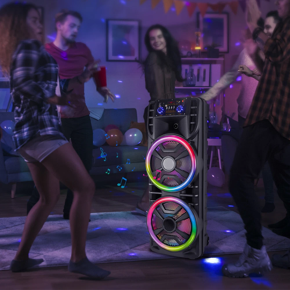 12'' Portable Dual Bluetooth FM Speaker Subwoofer Heavy Bass Sound Karaoke W/Mic Features: Bluetooth Wireless speakers Loud - Great Sound Quality: Party Bluetooth Speaker is designed for the ultimate in-music sound, The wireless bluetooth speaker is equipped dual 12'' heavy bass . It can provide very powerful stereo and amazing bass sound. It has the ultimate sound and the colorful LED light show will bring you an unprecedented audio-visual feast, which will make the party atmosphere extraordinary. Bluetooth speakers portable wireless - TWS Function & Colorful Light Show : The pairing of two loud big bluetooth speakers are crazy, the 2800W stereo surround sound immediately invades your hearing. The colorful lights occupy your field of vision, and your heart beats wildly with the music. It's awesome Light Show! Multifunctional portable bluetooth speaker - Large capacity battery & Bluetooth 5.0: The powerful long-life 3600MAH battery technology Supports long play time and colorful light show.Bluetooth 5.0 technology can freely and easily connect your Bluetooth speaker to your smart phone, including other Bluetooth-enabled devices compatible. The 3.5mm audio aux cable is wired to smartphone, MP3, MP4, Computer, PC, TV and other non-Bluetooth devices with 3.5mm audio jack. Karaoke machine for kids adults - Karaoke Machine & PA System: Speaker is equipped with karaoke system and PA system. It is recommended to use it with a microphone, so that the passionate singing can provide the best musical atmosphere and effect for your party. It can make your kids, family members and friends enjoy more happiness in life; It can also make the work of teachers, tour guides, dancers, etc. easier and more convenient. Specification: Type:Portable Speaker System Material: ABS Speaker: 12 inches * 2 Color: Black Music power: 2800W Bluetooth model: ABX-214R Input voltage: DC5V 1A Function modes: Bluetooth, AUX, FM, USB, TF card Panel ports: display interface, switch knob, charging indicator light, MICRO charging interface, 3.5mm audio interface, 6.5mm microphone interface, USB flash drive, TF card Panel buttons: Up and down track keys Battery: Built in 3600MAH 7.4V lithium battery Unit Dimensions (in): 36.5 x 14 x 12.5 Unit Weight (lbs): 20.7 Package Includes: 1 x Wireless Party Speaker 1 x Microphone 1 x AC Adaptor 1 x Remote Control 1 x User Manual Shipping Payment Return and Refund Policy Feedback Help - Customer Support - Contac Shipping FREE SAME BUSINESS DAY MONDAY- FRIDAY SHIPPING FROM USA. No shipping on Weekends or US Public Holidays. No responsibility for any custom duty We will ship your order to your PayPal Verified address provided. Please verify your address and make sure that it is your current address before making your payment. Any address change requests after your payment CANNOT be guaranteed. Shipping information will be updated when available. All of our products can be shipped internationally. To confirm the shipping rates to your country please refer to eBay's Shipping Tab above. Any brokerage, customs, and duty fees associated with international shipments are the customer's responsibility and are not included in our shipping fee. A phone number is required for the customs documents. Failure to provide one will result in delays. We do not include an invoice or any advertising materials with our shipments. Payment Immediate payment is required. Shipping will be arranged within 1 business day once payment is cleared. To uphold a shipping speed, your order will be processed almost immediately. If you change your mind after your payment is confirmed, we will do our best to cancel the order, however, we CANNOT guarantee the cancellation. Return and Refund Policy 1. We stand behind our items and offer 30 days warranty . All items are in new and working condition unless specified otherwise elsewhere in the description. 2. All Returns - defective or otherwise - MUST BE PREAUTHORIZED to guarantee refund or exchange. Please contact us to get an authorization and return address. 3. Buyer agrees to pay for the cost of re-shipment for undeliverable or wrong addresses. 4. Buyer is responsible for Return Postage as well as a 20% restocking fee if return/replacement is not a result of our mistake such as wrong item. 5. Replacement or Refund will be made upon receipt of the returned item. Please include tracking number so we can process ASAP. If you do not wish to wait for a replacement, please repurchase the item. 6. ALL REFUNDS will be processed via PayPal. Please double check via PayPal history and transaction for confirmation. PayPal will send it back to whatever you used to pay within 3-5 days. Feedback We strive to provide the best products and services. Your positive feedback 5 stars DSR help us do better. If anything about your transaction did not meet expectations, please CONTACT US and give us the opportunity to make things right. We are always here to help. Help - Customer Support - Contac Please do not hesitate to CONTACT US . You can message 24/7 on eBay for all questions and inquiries. We will get back to you within 1-2 business days at the latest.