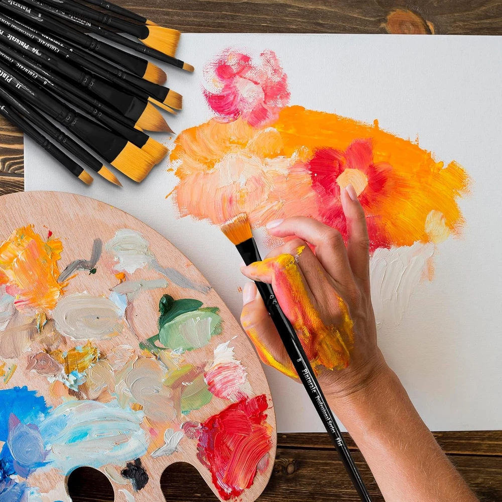 Set of 12 Brushes for Acrylic & Oil Painting | & Masters | Black Product Details Color: Black Material: Nylon Brand: Pinturale Arts Paint Type: Acrylic, Oil Handle Type: Fluted Handle, Rattail Handle Bristle Type: Flagged Bristle Manufacturer: Pinturale Arts Package Dimensions: 10.71 x 2.72 x 1.34 inches Item Weight: 7 ounces Country of Origin: China Item model number: AA-0422 Designed for Acrylics and Oil - This paint brush set contains everything a professional acrylic and oil painter needs. Designed with high quality nylon, they do not lose hair and will always be ready for your works of art. Creative Freedom - It includes 12 acrylic brushes of various sizes and shapes. That way, you will have the perfect brush for every occasion. It's a delight for the most demanding painters, as well as for beginner ones. A Set You'll Fall In Love With At First Sight - This brush set comes in an elegant gift box. It includes a velvet bag to keep the brushes protected and help you take them wherever you want. Handmade By Craftsmen - We know how important brushes are to an artist. That is why we make them by hand with the highest-quality materials: Their hairs don't fall off, which makes the brushes durable. The Perfect Gift - For any painting lover, whether it's a beginner or a demanding artist. It's a great gift idea for birthdays, Christmas, anniversaries, or any kind of celebrations. Gift them this and they will never forget you!