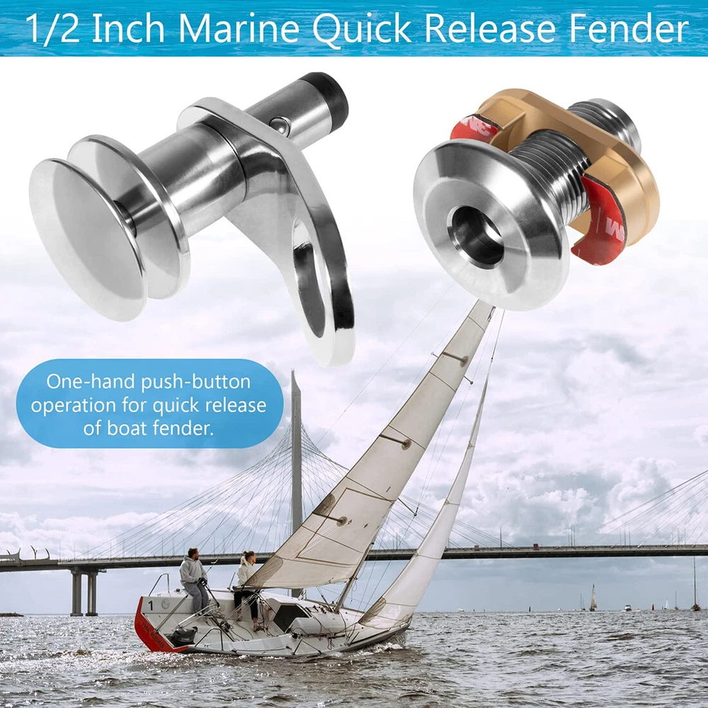 1/2'' Marine Stainless Steel Quick Release Boat Fender Holder Kit Mount Brackets