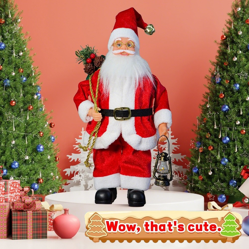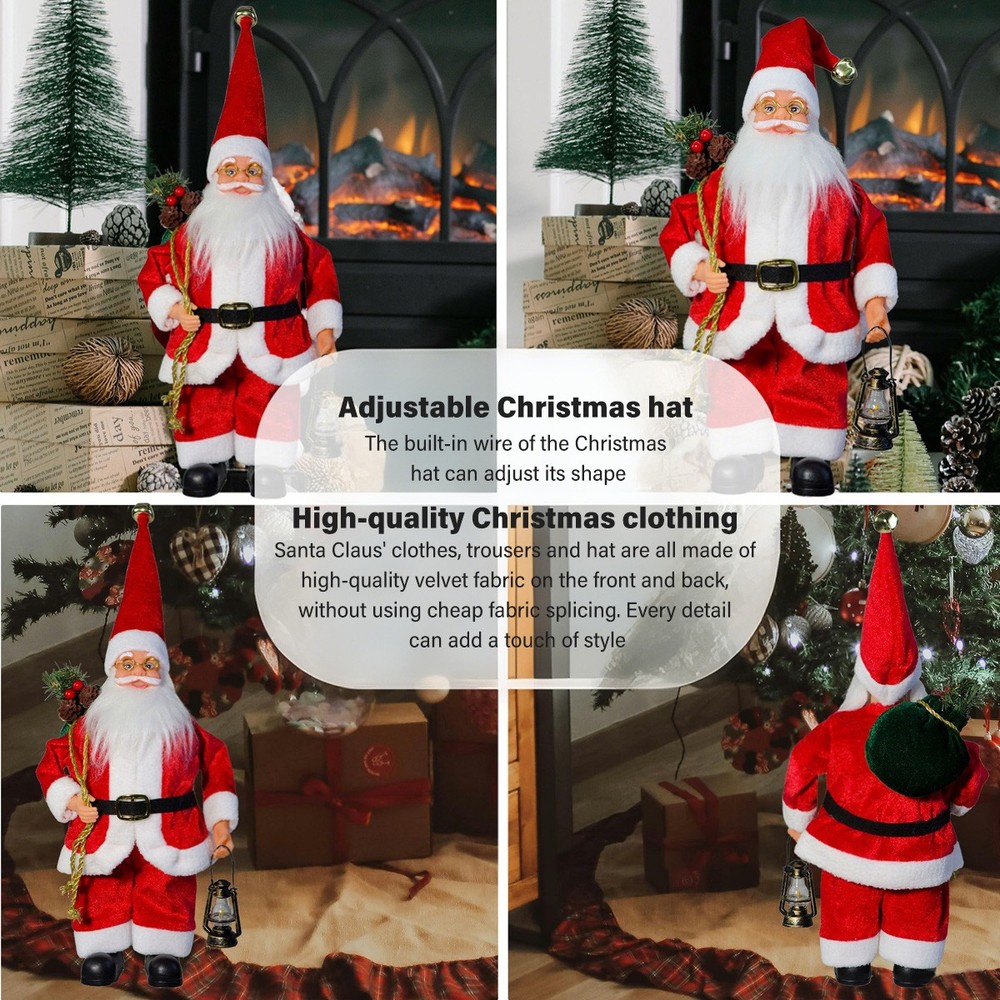 Feature: PERFECT SIZE – This classic 12-inch height red Santa figurines bring the magic of Christmas to your home. BRILLIANT DESIGN – Handcrafted from high-quality, hand-painted clothlike, a proprietary stiffened fabric material with mixed media accents. SANTA STANDING FIGURINE – Designed to stand so that you can put it on the table or under your Christmas tree, stands solidly on any flat surface, even for his large size. PERFECT DECORATION – It is an ideal for Christmas home ornament, mantelpieces decor, windowsill decoration. He will add a touch of Christmas luxury to any home. CHRISTMAS GIFTS – Santa Claus is also a perfect gift to your love or your friends on the night of Christmas Eve. Santa Claus Model – He is wearing his long red velvet and slim long coat.