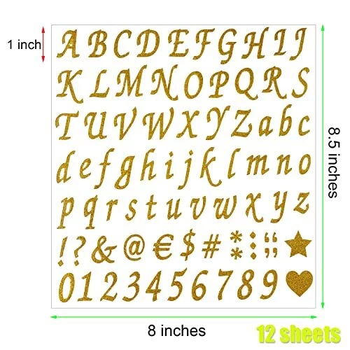Return Policy Fast Delivery Trusted seller 12 Sheets Glitter Letter Stickers,Self Adhesive Alphabet Number Stickers,Letter and Number Stickers for Mailbox,DIY Crafts Art Making,Scrapbook, Classroom Decor(Gold,Silver,Black) Product Description What You Get: you will receive 12 sheets of self-adhesive letters numbers stickers in 3 color(gold,silver,black), 4 sheets of each color, including 312 pieces capital letters, 312 pieces lowercase letter, 120 numbers and 216 signs. This is a great value for what you get! abundant quantity to meet your daily use requirements Dimensions: these glitter alphabet stickers each sheet measures approx. 22 x 20 cm/ 8.66 x 7.87 inch, each letter/number is about 1.5-2.5 cm/ 0.59-0.98 inch in height, each sign is about 0.5-2 cm/ 0.19-0.78 inch in height, the suitable size allows you to use for multiple purposes Easy to Use: these self adhesive number letter stickers feature self-adhesive design, you do not need any glue to stick, which can stick to many different surfaces, just peel the letters you need and stick them to your desired surfaces, the glitter is applied well and will not fall off or fade Durable Quality: the letter and number stickers are made of quality paper material with shiny and bright surface, not easy to break or fade, using these stickers will make your items even more charming and attractive,suitable for various indoor and outdoor use Multi-Use: This pack of letter sticker is perfect for any smooth surface like scrapbooks, calendars, card making, gift wrapping, embellishing thank you cards, photo frames, school sign, craft, steel mailbox, street numbers, home, office or wedding decor and everything else your creative mind can think of Shipping Returns Payment Shipping Shipping is FREE to all addresses other than APO/PO boxes in the lower 48 states. All our stock ships from US-based warehouses. Shipped via USPS or UPS (depending on location and package weight) Unless stated otherwise, all orders will ship within 24-72 hours of your payment being processed. Check our feedback to see the great reviews of FAST shipping we offer. Returns Seller does not accept returns Payment We currently accept payment via eBay managed payments only. Once payment is cleared, we will dispatch your shipment within 1-3 business days. Please refer to the "Shipping" tab for more information regarding shipping speed to your destination.