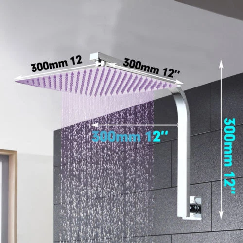 Type:Shower Head Installation:Wall Mounted Material:Stainless Steel Finish:Chrome Shower Head Size:12" Shower Head Shape:Square Rain Shower Head:Yes Standard size connection 1/2" brand new in a box ready to ship Good quality and best price Easy to install and clean 24 months manufactured warranty Package: 1XShower Head 1XShower Arm All installation accessories
