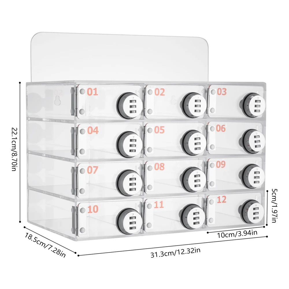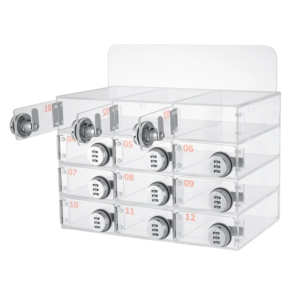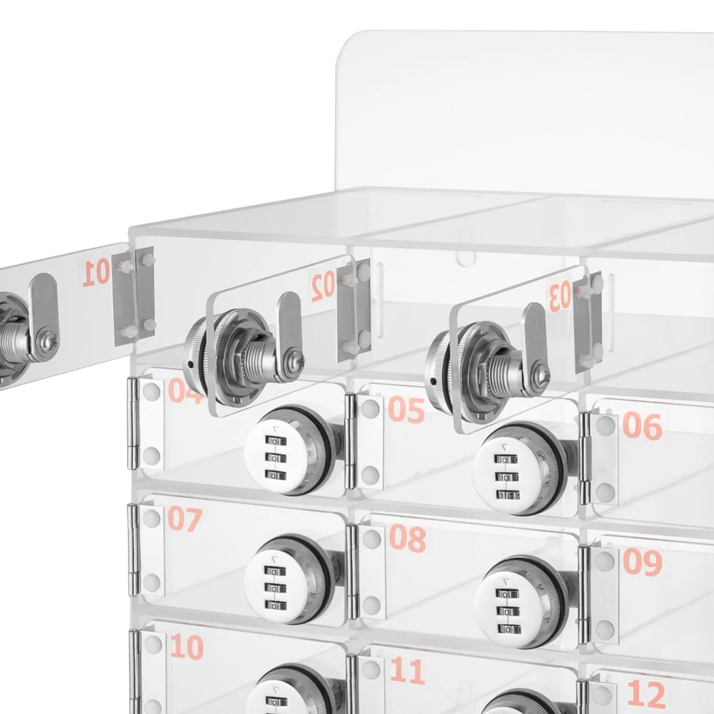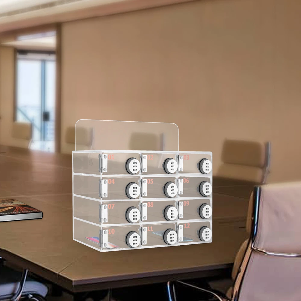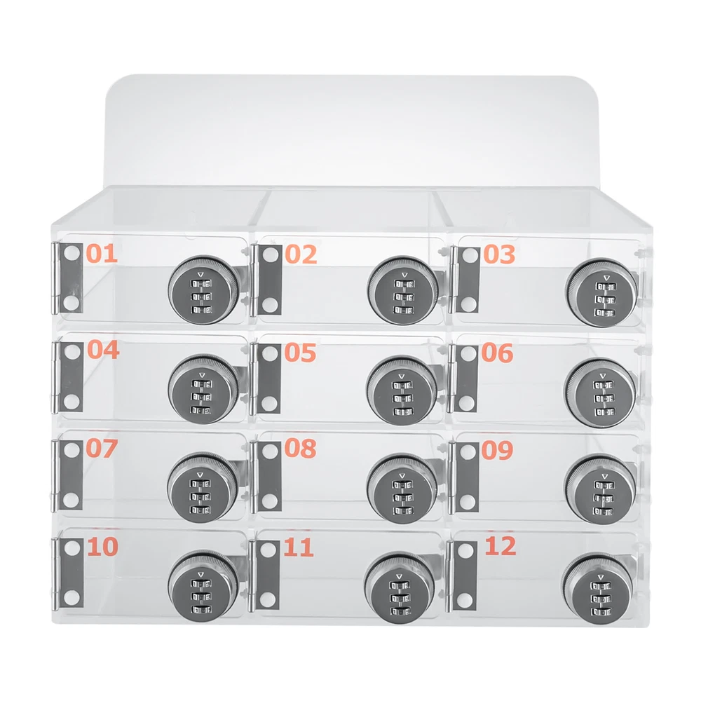 12 Slots Cell Phone Locker Box Transparent Acrylic Storage Box W/Locks TOP