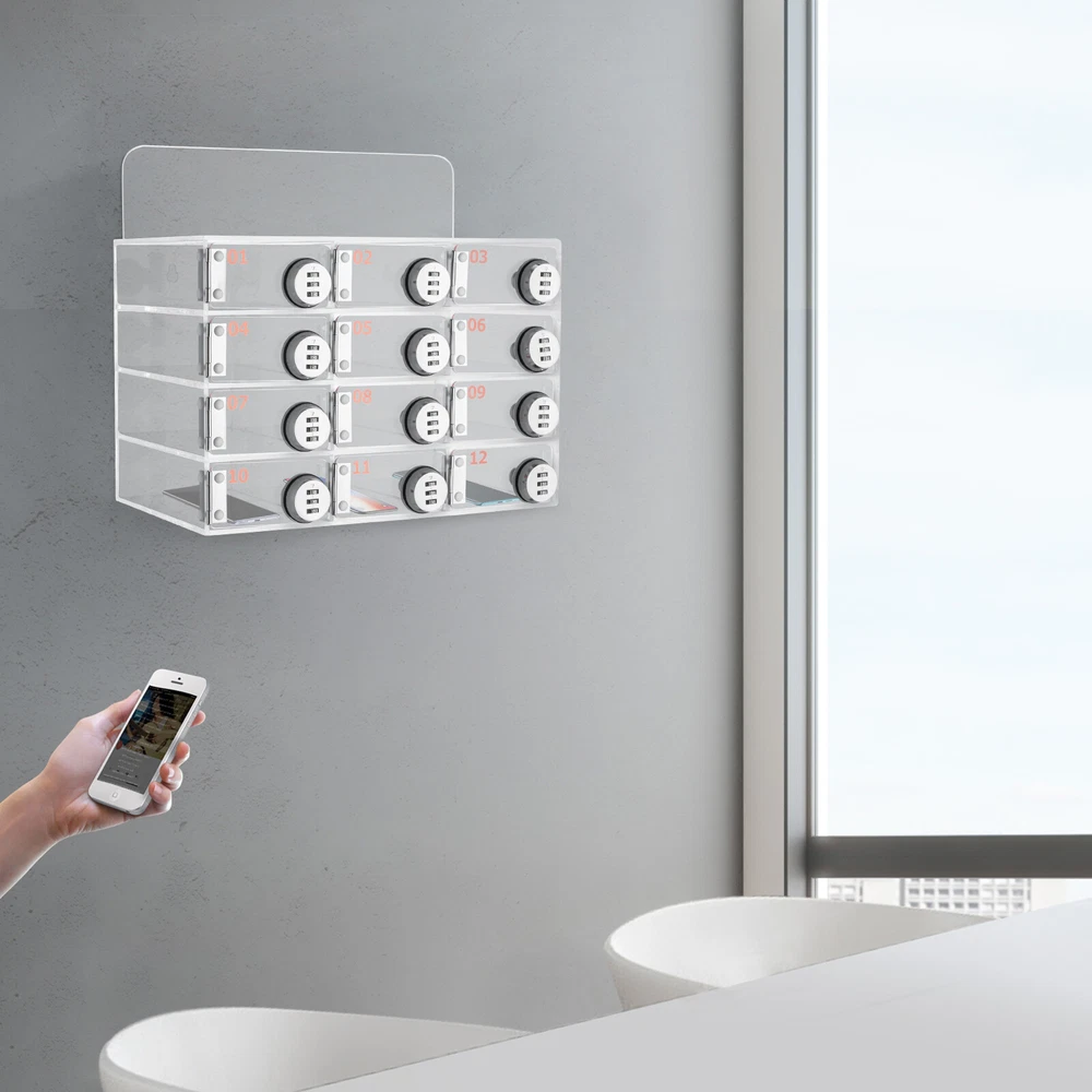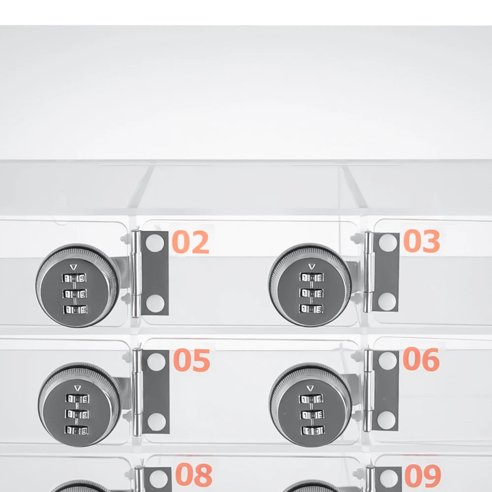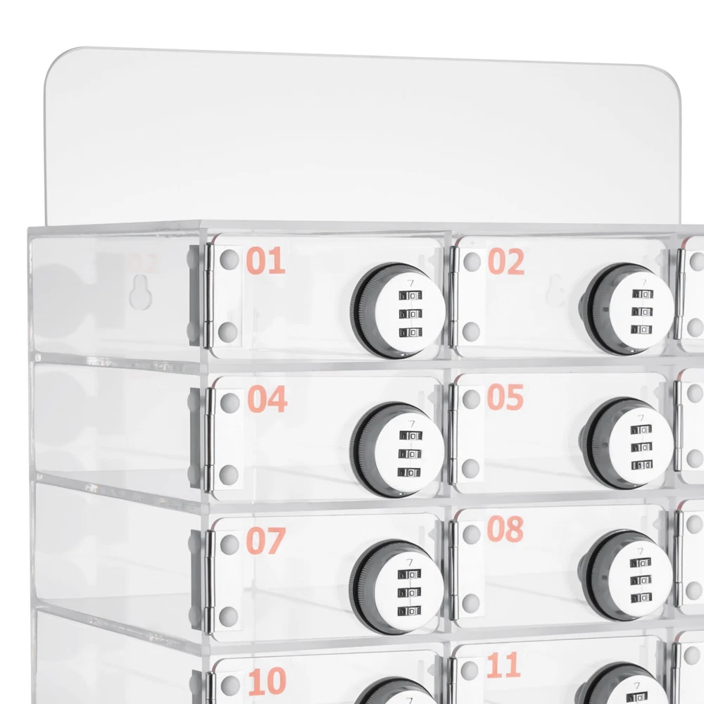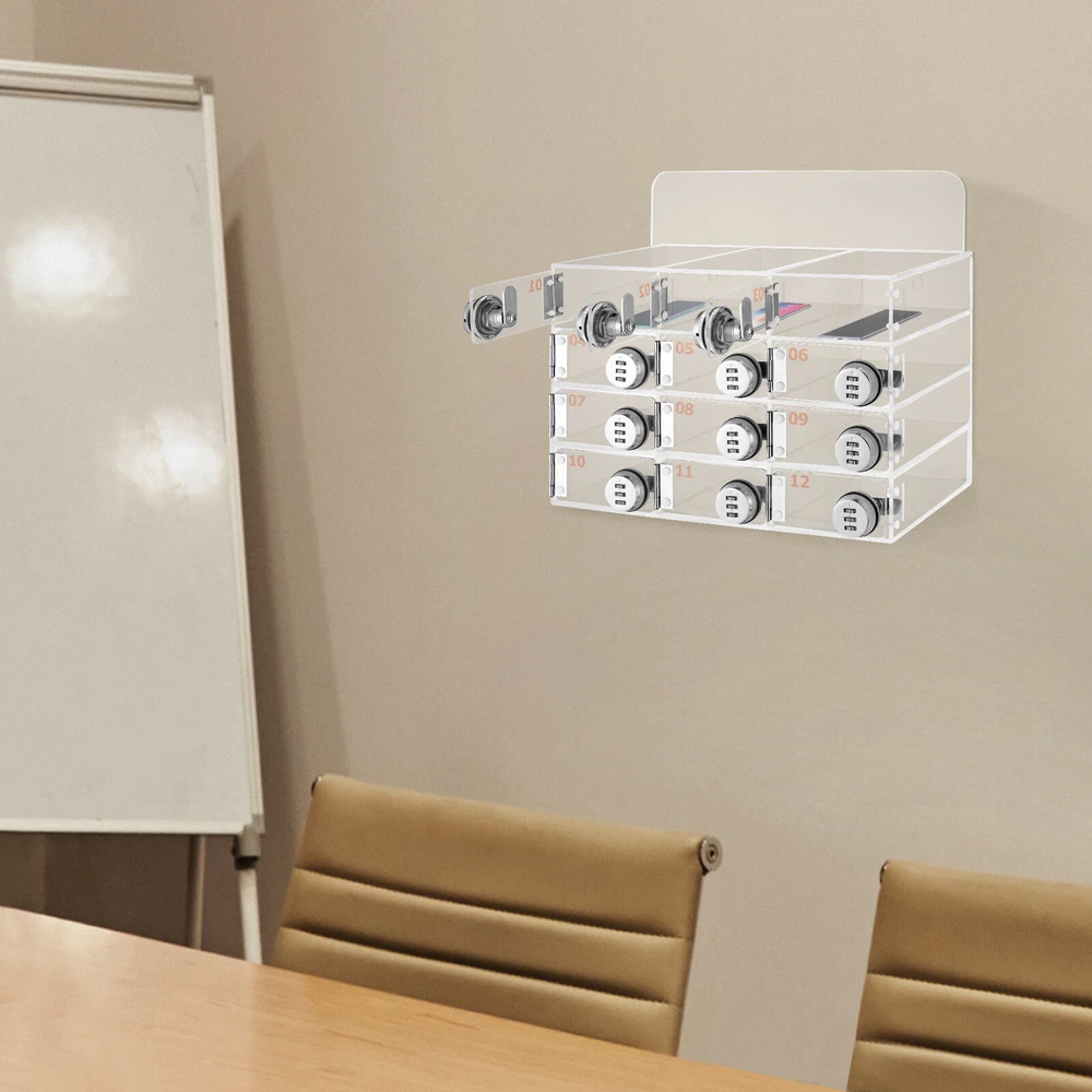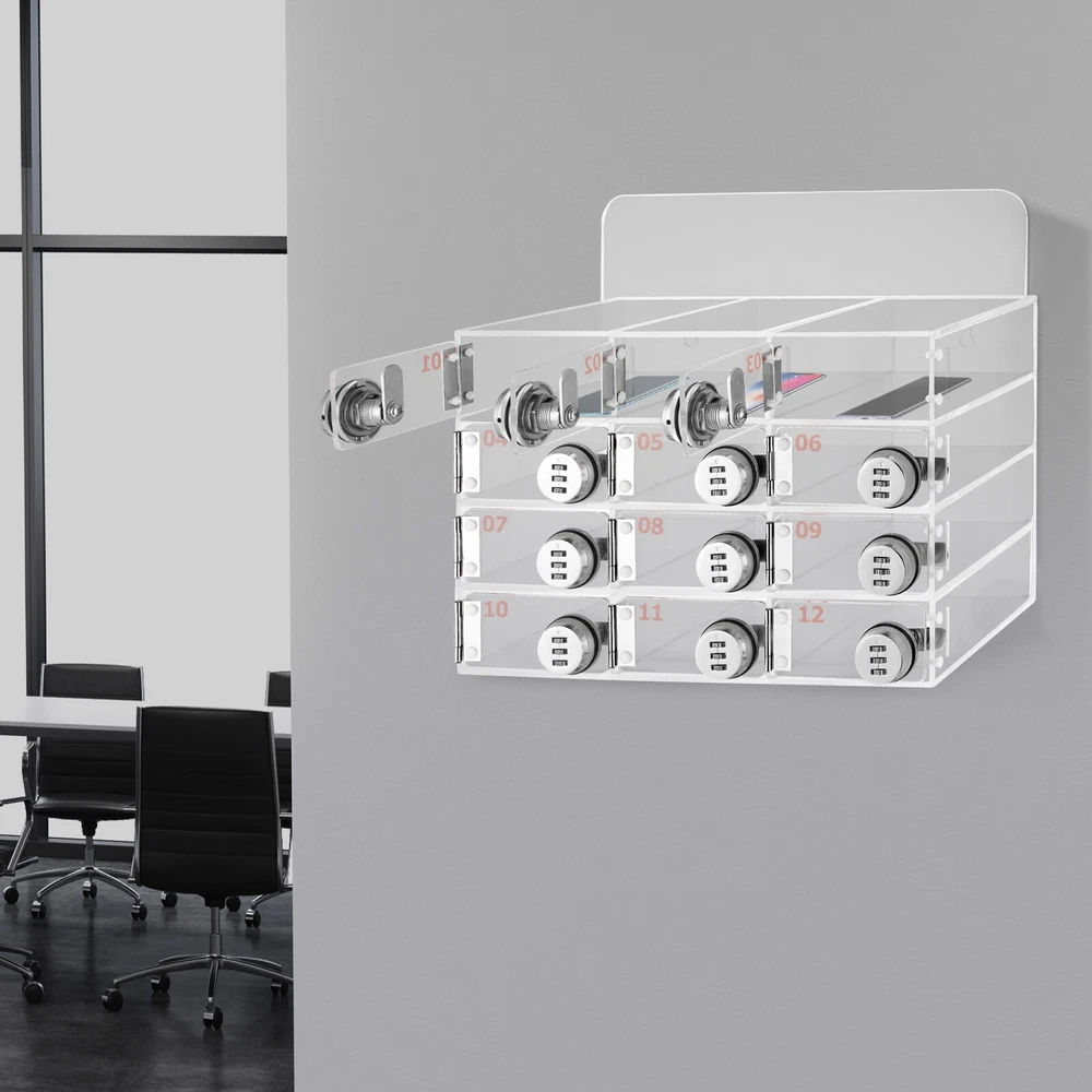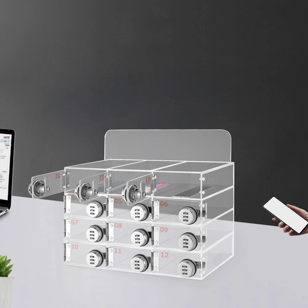 12 Slots Cell Phone Locker Box Transparent Acrylic Storage Box W/Locks TOP