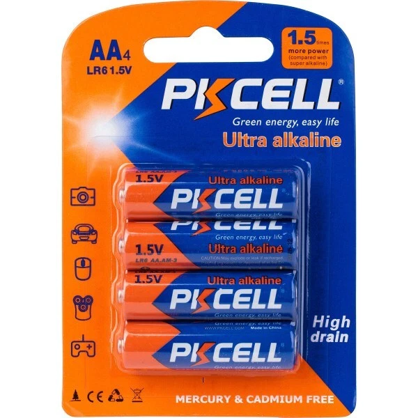 Chemical-Composite: Alkaline Modified Item: No Brand: PKCELL Chemical Composition: Alkaline Custom Bundle: No Application: Digital cameras, torches, clocks, wireless keyboard & mouse, Toys Amp Hours: 1.9 Ah Battery Size: AA Voltage: 1.5 V gtin13: Does not apply Non-Domestic Product: No Model: LR6 battery AM-3 AA Battery 1.5V Alkaline battery Country/Region of Manufacture: China Type: AA UPC: Does not apply MPN: Does not apply
