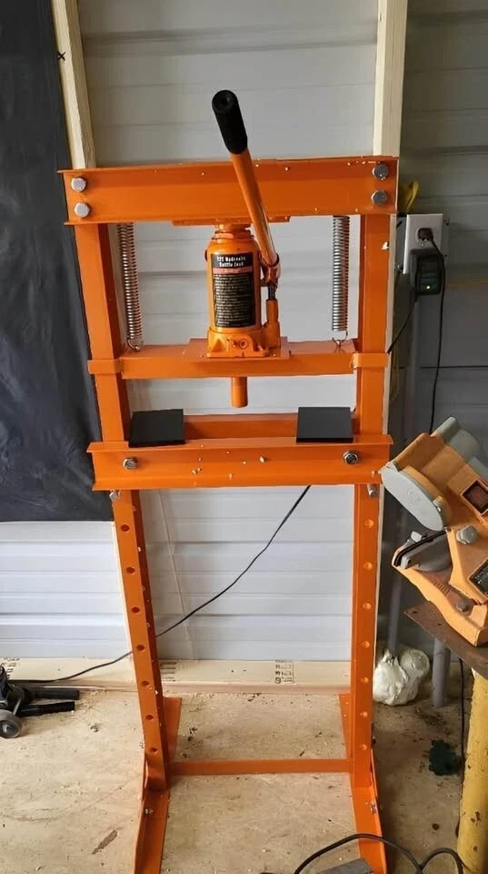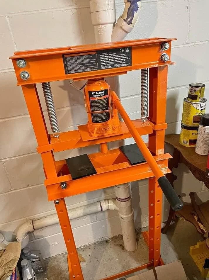 Brand New & Shipped for free via FedEx/ UPS. Hydraulic jack features a built-in relief valve mechanism, ensuring your security during heavy lifting tasks. The valve automatically activates when pressure exceeds 12T, preventing any potential damage due to overpressure and ensuring a secure work environment. The H-shaped frame provides a stable base that remains steady during use, thanks to its robust 0.2-inch carbon steel body. The powder-coated finish not only enhances durability but also resists corrosion. Reinforced base with a unique triangular structure, offering improved stability for seamless operation. Height range from 1.6" to 27.8", finding the perfect working height is simple and efficient. The convenient pin system makes height adjustments a breeze. Additionally, our hydraulic bushing press includes two movable stamping plates, perfect for securing small parts during use. Specs: Rated Load 26000 lbs Stroke 4.9" Material Carbon Steel Adjustable Height Range 1.6-27.8 in Product Dimensions 22 × 20.1 × 52.5 in Net Weight 84.9lbs