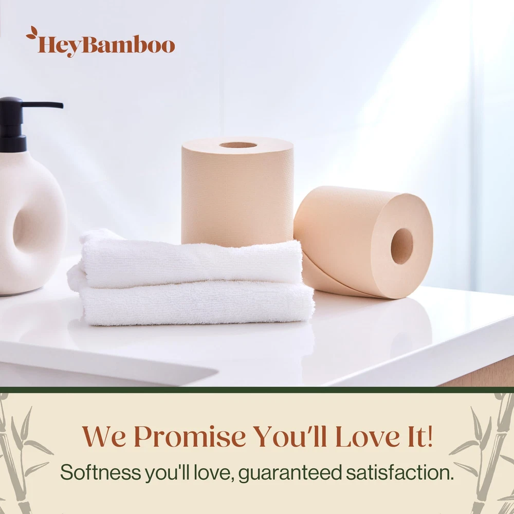SOFT & STRONG LUXURY: Enjoy the ultimate comfort with HeyBamboo's 360 triple-ply sheets per roll bamboo unbleached toilet paper. Each sheet of bamboo toilet paper unbleached offers a silky-soft feel that’s gentle on your skin while maintaining exceptional strength. Providing nearly twice the amount of sheets compared to most standard rolls (160-200 sheets), you get longer-lasting convenience and quality in every roll. ECO-FRIENDLY & BLEACH-FREE: Crafted from 100% bamboo, our septic safe toilet paper is completely free from harmful chemicals like bleach, inks, dyes, and fragrances. Since bamboo is naturally hypoallergenic, our chemical free organic toilet paper is perfect for sensitive skin while being 100% safe for the planet. ZERO WASTE PACKAGING: From the bamboo core to the outer wrap, our packaging of non toxic toilet paper is fully recyclable and plastic-free. We use plant-based inks and cardboard boxes sealed with paper tape, ensuring every part of our chemical free toilet paper supports a waste-free lifestyle. SEPTIC-SAFE & SUSTAINABLE: HeyBamboo unbleached bamboo toilet paper is designed to break down easily, making this biodegradable toilet paper soft, septic-safe and clog-free. Made without any tree byproducts, our 100% bamboo tissue has a low environmental footprint and helps you make a more sustainable choice for your home. PLANT A TREE WITH EVERY PURCHASE: With each order of HeyBamboo 3 ply toilet paper, you're directly contributing to reforestation efforts. We plant a tree for every purchase of recycled toilet paper organic, ensuring your eco-friendly choice helps restore forests and makes a lasting positive impact on the environment.