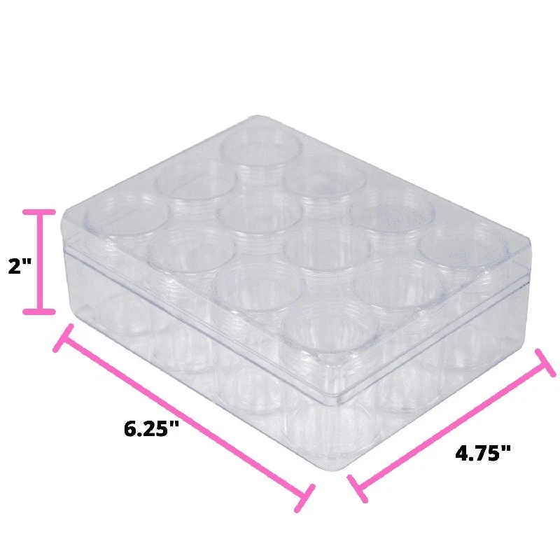 You may also like Marble Lazy Susan Serving Tray Food Display Kitchen Countertop Organizer New 69.15 USD Free shipping Workshop Corded Rotary Tool Kit W/ 10 Accessories Grinding Polishing 2-Speed New 55.43 USD Free shipping 2-Door Shoe Storage Cabinet W/ 2 Shelves Standing Rack Bedroom Garage Organizer 82.73 USD Free shipping Luxury Silver Metal Hanging Planter Set of 2 Deep Round Indoor Outdoor Decor New 40.98 USD 43.14 USD Free shipping 5% off Wooden Record Crate Storage Box Holds 50 Vinyl Records Easy Assembly Handles New 62.85 USD Free shipping Grain Free Indoor Dry Cat Food Chicken Recipe Natural Nutrition 11lb Bag New 58.02 USD Free shipping Durable 10 Gallon Stacker Tote Storage Bins Set of 6 Ideal Closets Garages New 54.87 USD Free shipping Wet Cat Food Minced Tuna Entree Grain Free Adult Pet Supplies 5.5 Oz Can 24 Park 83.88 USD Free shipping Handing Tree Double Hammock Quilted W/ Bolster Pillow Polyester Comfortable New 58.59 USD Free shipping Extra Wide Baby Safety Gate Adjustable 29-47" Openings White 6-24 Months New 45.12 USD 47.49 USD Free shipping 5% off Transitional Solid Shag Rug Indoor Non-Slip Backing Machine Washable 3x4ft New 25.93 USD 27.29 USD Free shipping 5% off Heavy Duty Tie Down Straps Ratchet Flat Hooks Secure Car Transport Polyester New 76.56 USD Free shipping The 12 Unit Storage Box is a clear plastic bead case with 12 removable lidded jars. Each jar is 2 inches tall by 1. 5 inches wide. The jar can be pulled out from the rectangle box and you can bring it anywhere you like. The small jar is paired with a screw-top lid making sure content remains safe and stored. Our bead organizer is anti-dust, waterproof, moisture-proof, and not easy to break. Clear enough that you can see everything inside and you can identify what you are looking for quickly and easily. Perfect for glitters, nail crystals, jewelry, necklaces, rings, diamond painting essentials, nail art embellishments, make up, and much more. INDUSTRY-LEADING BEADING STORAGE SOLUTION – The Large Plastic Bead Storage Case with 12 Removable & Stackable Jars is an amazing beading storage option. CUSTOMER SATISFACTION: We care and desire for all of our customers to be satisfied. ENDLESS ORGANIZING POSSIBILITIES – These 12stackable jars cover a wide variety of uses. Store and organize your crafting bead by shape, size, and color. DIMENSIONS: 2" x 6. 25" x 4. 75" PREMIUM DESIGN & CONSTRUCTION - Constructed from high-quality plastic, these jars are super durable for a safe and easy beading experience for adults. You may also like Lucinda Green 12PC Dinnerware Set Stoneware Scalloped Design Dishwasher Safe New 59.35 USD 62.47 USD Free shipping 5% off Rubber Curb Driveway Ramp Non-Slip For 3.7" Rise 39.4" Wide 33069lbs Load Black 55.56 USD Free shipping 10 Foot Patio Umbrella Auto Tilt Vented 6 People Shade Deck Outdoors Family New 67.86 USD Free shipping 12-Piece Teal Medallion Stoneware Dinnerware Set Dishwasher Microwave Safe Use 20.49 USD 21.57 USD Free shipping 5% off 50 Pack Plastic Hangers Collegiate Colors Durable Clothes Organizer Teens Adults 11.59 USD Free shipping Recycled Super Bulky Yarn Eco Friendly Warm Crochet Knit Craft Supplies Olive US 9.75 USD 10.26 USD Free shipping 5% off 6pc Cotton Bath Towel Set Quick Dry Anti-Microbial Soft Absorbent Lint Free New 23.53 USD 24.77 USD Free shipping 5% off 7.5Qt Multi-Cooker Automatic Stirring Shredding 9 Cooking Presets Non-Stick New 79.04 USD Free shipping Glass Mixing Bowl 4Qt Microwave Dishwasher Safe Extra Durable Kitchen Use 10.66 USD 11.22 USD Free shipping 5% off Adjustable 5 Tier Bookcase Modern Storage Display Shelf Space Saving Unit New 79.54 USD 83.73 USD Free shipping 5% off 2-In-1 Wall Mounted Baby Safety Gate Stairs Adjustable Walk Through Metal New 81.5 USD Free shipping 3 Tier Over Toilet Storage Rack Bathroom Shelf Space Saving Organization New 68.86 USD 72.48 USD Free shipping 5% off