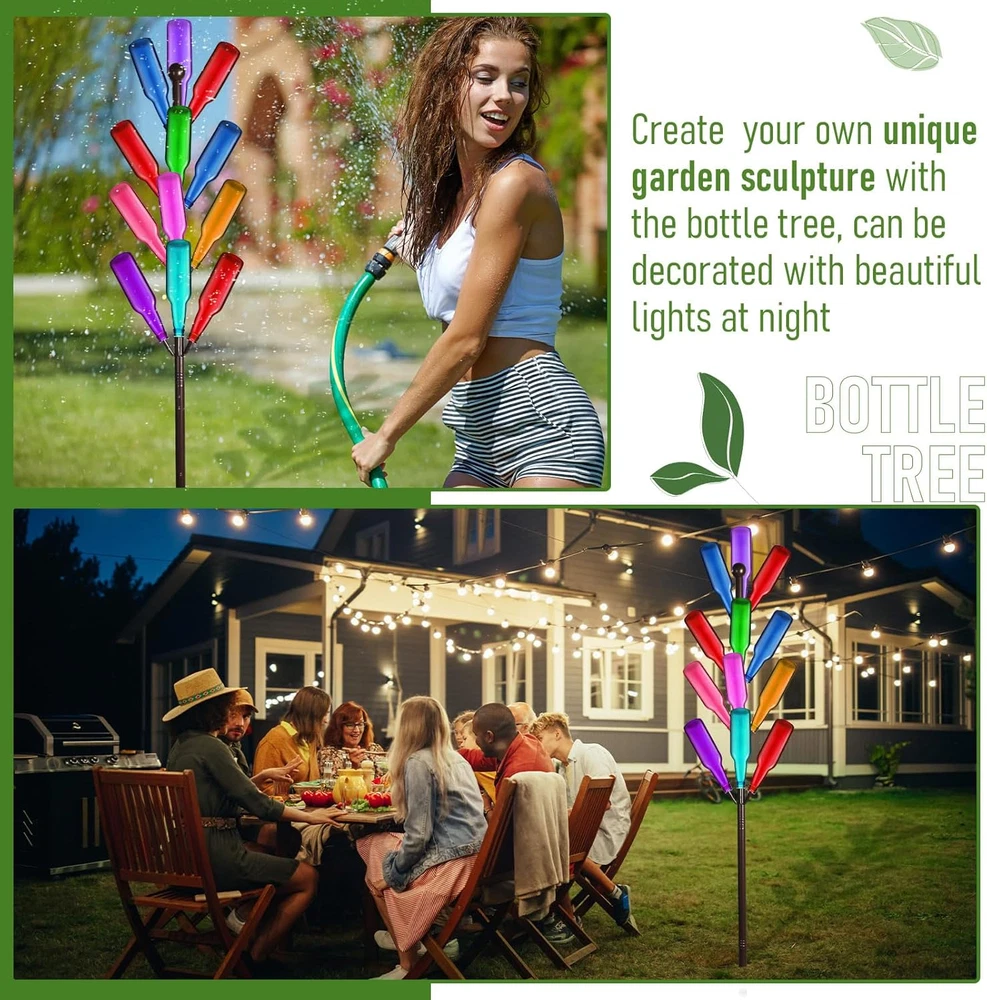 Sturdy Design: the wine bottle yard tree adopts thread assembly parts structure and proven design, easy to assemble and install, safe and secure; Equipped with a triangular stable structure ground plug, which is more convenient to insert into the ground and secure Well Crafted and Durable: the height of the wine bottle tree for the garden is about 5.25 feet/ 160 cm; It has 17 parts, bottom triangular ground plug structure, equipped with 12 branches assembled with threaded teeth, divided into 3 different size lengths to create a real tree trunk feel, respectively 9.84 inch (6 pcs), 7.87 inch (3 pcs), and 7.09 inch (3 pcs), it can hold 12 bottles in total; Please note, wine bottles are not included with product Versatile and Elegant Decoration: the wine tree for empty wine bottles is designed like in copper paint to color realistic tree trunks appearance, you can fill it with different kinds of glass bottles, and decorate with light string or other accessories, to make it look attractive and exquisite Undefined: the bottle tree stand adopts quality welded solid metal, hard and stable, not easy to deform or break, durable and long lasting Eye catching and Low maintenance Accent: you can plug your favorite glass bottles to decorate your wine bottle tree and delight your garden or backyard, ideal decoration for weddings, birthday parties, bridal showers, baby showers, housewarming events, and more Product Description