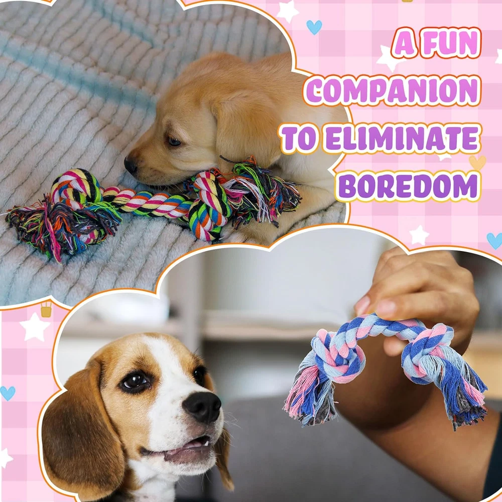 12 cotton rope toys for small to medium puppies, for chewing and teething.