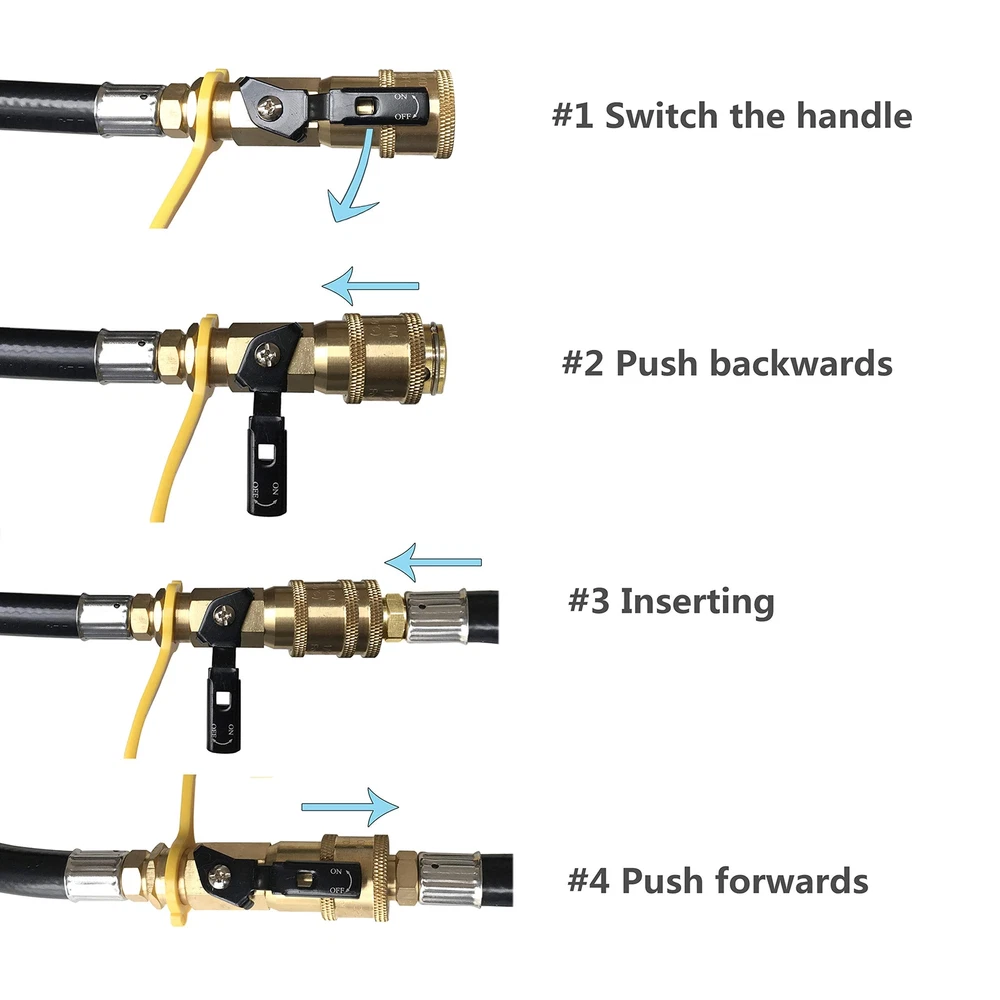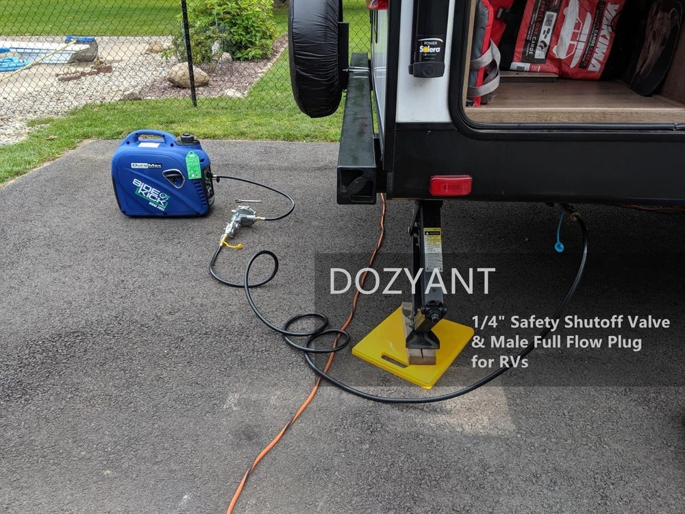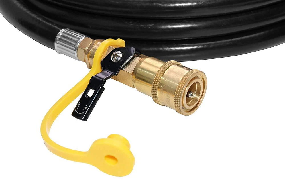 12 feet Propane Quick-Connect Hose and Valve provide a quick connect propane connection to conect most low-pressure grills to RVs on-board propane supply. Very safe and convenient. A must have if you are a RVer. Solid Brass Pre-installed Fittings on 12 feet Propane Hose Extension. Hose Assembly including a 1/4" Male Quick Disconnect Plug x 1/4" Female Quick Disconnect Connects to Low-pressure Propane Supply on RV. Perfect for your RV Grill, Camper Grill and other BBQ Grills with a Quick Connect Propane Connection Use with Most Low-pressure Appliances. This hose can be used with most low pressure grills to RVs on-board propane supply with a quick connect propane connection and heavy duty brass connectors Stop Lugging around that extra propane tank. Now you can connect your stove/BBQ Grills directly to your RV's propane. Female Quick Connect x Male Quick Connect. One end of the hose has a female quick disconnect fitting and the other end has a male quick disconnect fitting Must-have if you're an RVer. Use with Olympian 5100,5500 grills most other low-pressure grills