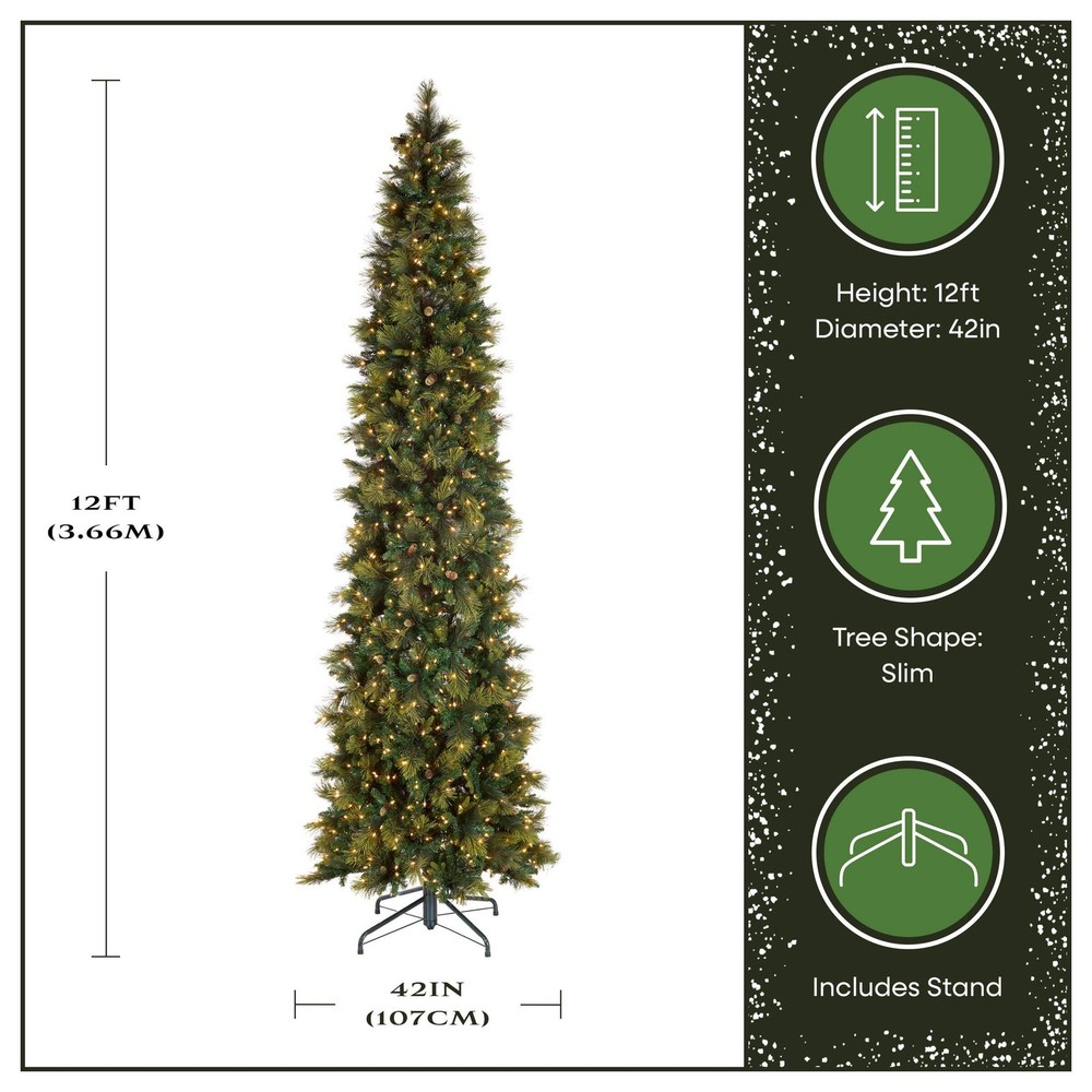 12 ft. Pre-Lit Carolina Pine Slim Tree with Clear Lights, Plug-In Make the most of high ceilings and smaller floor spaces with the National Tree Company 12ft Prelit Feel Real® Carolina Pine Artificial Christmas Tree, a premium holiday centerpiece crafted to look and feel just like the real thing. Standing an impressive 12 feet tall and featuring a 42 inch diameter, this slim Christmas tree fits gracefully in corners, foyers, and rooms with limited width while still creating a grand holiday display. It also features a breathtaking blend of lush PE branch tips and PVC foliage for added texture, volume, and realism. Placed throughout the branches are charming pinecones that enhance its fresh-cut appeal. Pre-strung with 1,000 clear UL-listed incandescent lights that remain lit even if one bulb goes out, this elegant tree creates a warm and inviting glow all season long. Hinged branch construction allows for fast and simple setup. Branches drop down for shaping and fold back up for compact storage when the holidays are over. Fire-resistant, hypoallergenic materials and a sturdy metal stand ensure lasting safety and durability. For more than 60 years, National Tree Company has been the trusted leader in artificial greenery and seasonal décor, helping families create joyful holiday memories year after year. SLIM PRELIT CHRISTMAS TREE: 12 foot artificial tree with a 42” base crafted with 1,900 Feel Real® PE and PVC branch tips along with natural-looking pinecones for added texture and realism PRELIT WITH 1,000 CLEAR LIGHTS: Christmas tree with lights features 1,000 clear UL-listed incandescent lights that stay illuminated even if one bulb goes out, delivering a brilliant holiday glow EASY ASSEMBLY & STORAGE: Hinged branch construction allows for fast setup and takedown- branches drop down for shaping and fold back up for simple storage (allow 30 minutes to shape branches) DURABLE AND REALISTIC CHRISTMAS DECOR: Holiday decor built with fire-resistant, hypoallergenic PE and PVC needles supported by a sturdy metal stand for long-lasting safety, stability, and enjoyment CHRISTMAS DECORATION DIMENSIONS: This slim pre-lit Christmas tree is ideal for rooms with high ceilings and limited floor spaces such as corners, foyers and entryways (Dimensions: 42”L x 42”W x 144”H). 12 ft. Pre-Lit Carolina Pine Slim Tree with Clear Lights, Plug-In Make the most of high ceilings and smaller floor spaces with the National Tree Company 12ft Prelit Feel Real® Carolina Pine Artificial Christmas Tree, a premium holiday centerpiece crafted to look and feel just like the real thing. Standing an impressive 12 feet tall and featuring a 42 inch diameter, this slim Christmas tree fits gracefully in corners, foyers, and rooms with limited width while still creating a grand holiday display. It also features a breathtaking blend of lush PE branch tips and PVC foliage for added texture, volume, and realism. Placed throughout the branches are charming pinecones that enhance its fresh-cut appeal. Pre-strung with 1,000 clear UL-listed incandescent lights that remain lit even if one bulb goes out, this elegant tree creates a warm and inviting glow all season long. Hinged branch construction allows for fast and simple setup. Branches drop down for shaping and fold back up for compact storage when the holidays are over. Fire-resistant, hypoallergenic materials and a sturdy metal stand ensure lasting safety and durability. For more than 60 years, National Tree Company has been the trusted leader in artificial greenery and seasonal décor, helping families create joyful holiday memories year after year. SLIM PRELIT CHRISTMAS TREE: 12 foot artificial tree with a 42” base crafted with 1,900 Feel Real® PE and PVC branch tips along with natural-looking pinecones for added texture and realism PRELIT WITH 1,000 CLEAR LIGHTS: Christmas tree with lights features 1,000 clear UL-listed incandescent lights that stay illuminated even if one bulb goes out, delivering a brilliant holiday glow EASY ASSEMBLY & STORAGE: Hinged branch construction allows for fast setup and takedown- branches drop down for shaping and fold back up for simple storage (allow 30 minutes to shape branches) DURABLE AND REALISTIC CHRISTMAS DECOR: Holiday decor built with fire-resistant, hypoallergenic PE and PVC needles supported by a sturdy metal stand for long-lasting safety, stability, and enjoyment CHRISTMAS DECORATION DIMENSIONS: This slim pre-lit Christmas tree is ideal for rooms with high ceilings and limited floor spaces such as corners, foyers and entryways (Dimensions: 42”L x 42”W x 144”H). × × × × × × × × × Buy now and save! Shipping info Click the Shipping & Payments tab above the listing description for more info FREE Shipping Click the Shipping & Payments tab above the listing description for more info! Additional delivery notes PICK UP OPTION Sorry, our items are NOT available for pick-up. PAYMENT Immediate payment is required upon selecting "Buy It Now" or upon checking out through the cart. We accept payment via U.S. PayPal accounts and all Major Credit Cards, Debit Cards & Google Pay. We are legally required to collect sales tax in those states and localities where we maintain a physical presence (nexus). The applicable amount of sales tax charged to an order will be calculated based on the shipment destination's state and local sales tax laws. Thank you for shopping with us on eBay! Additional Information No additional information at this time Ask seller a question You might also like Pre-Lit Scotch Creek Fir Assortment Set of 1 Entrance Tree, 1 Wreath, 1 Garland 6 ft. Pre-Lit Linden Spruce Tree with Warm White LED Lights 7.5 ft. Linden Spruce Tree 28 in. Motion-Activated Labrador Retriever with Wagging Tail, Plug-In Contact To contact our Customer Service Team, simply click the button here and our Customer Service team will be happy to assist. Ask seller a question © National Tree Company Shipping & Payments Shipping is FREE for
