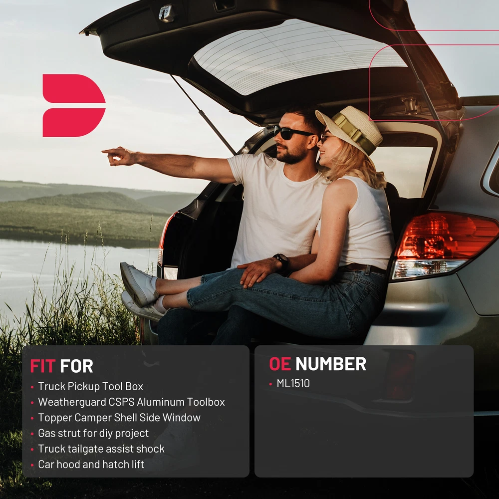 Auto Part Position: Left,Right,Rear Extended Length: 12 Inches Compressed Length: 8.1 Inches Item Weight: ‎10.05 ounces Package Dimensions: 14.96 x 2.36 x 1.18 inches Country of Origin: ‎China Manufacturer Part Number: ‎ML1510, SL1510,SL15101, SL15105,SX120P10 FIT FOR: Truck Pickup Tool Box Weatherguard CSPS Aluminum Toolbox Topper Camper Shell Side Window Gas strut for diy project Truck tailgate assist shock Car hood and hatch lift Auto Part Position: Left,Right,Rear Extended Length: 12 Inches Compressed Length: 8.1 Inches Item Weight: ‎10.05 ounces Package Dimensions: 14.96 x 2.36 x 1.18 inches Country of Origin: ‎China Manufacturer Part Number: ‎ ML1510, SL1510,SL15101, SL15105,SX120P10 FIT FOR: Truck Pickup Tool Box Weatherguard CSPS Aluminum Toolbox Topper Camper Shell Side Window Gas strut for diy project Truck tailgate assist shock Car hood and hatch lift ML1510 Gas Struts Specifications 13.9 inch 24lb/107N Gas Struts Shocks Spring Lift Support. Extended Length 13.9 inch. Compressed Length 8.9 inch. 13.9 Inch Shock Interchange Number Find the below Interchange number on your OEM gas shock cylinders for a exact match: ML1510, SL1510,SL15101, SL15105,SX120P10 . ML1510 Struts Package ContentPackage contains 13.9 inch gas struts*2. Installation with a flat screwdriver, no special tools required.