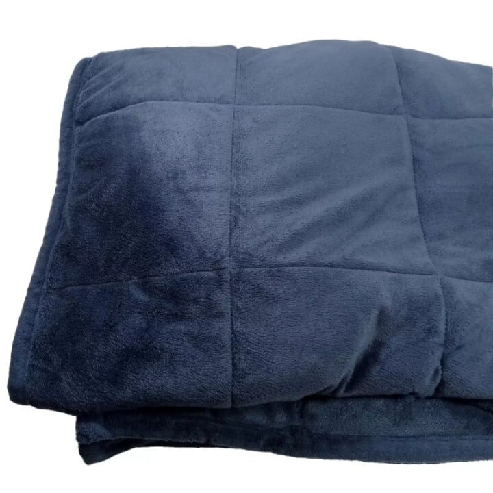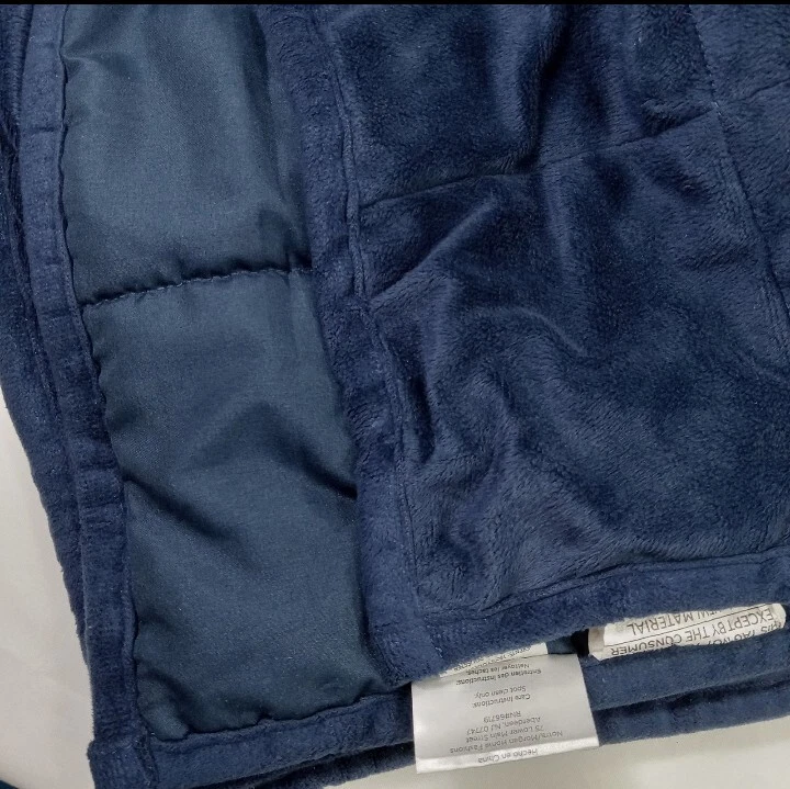 Morgan Home Fashions 12 Pound Weighted Blanket 48" x 68" Quilted Navy + Cover • Pre-Owned Excellent Condition (Used Once) • Original Retail: $80 & $50 • Weight: 12lb (Approx. 14- 15lbs . w/ Cover) Approximate Measurements: 48" x 68" Occasion: Everyday Includes: • Quilted Microfiber Weighted Blanket (Navy) • Tranquility Washable Zip Cover (Silver Geometric Diamond Design) Benefits: • Hypoallergenic Microfiber Shell w/ Glass Beads • Calms & Relaxes like a Soothing Embrace • Helps Ensure a Better Nights Sleep • Ultra Soft & Cozy Fluffy Lining for Added Comfort • Quilted Double Stitching for Even Weight Distribution & Durability • Easy to Clean Washable Cover • Protects Weighted Blanket Snuggle up in style & comfort with this Morgan Home Fashions Weighted Blanket & Tranquility Zip Cover. The Quilted design adds an elegant touch to any room, while the 12 pound weight provides a cozy & calming sensation. Measuring 48" x 68", this body-sized blanket is perfect for chilly nights & decor.