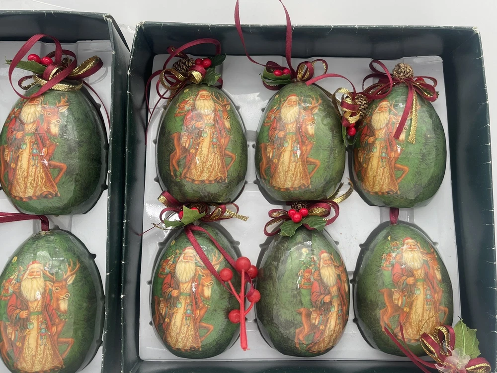 12 pcs | Vintage Egg Shaped Decoupage Santa With Reindeer Christmas Ornaments | Paper Mache Christmas tree Ornaments | Mache Christmas See my other listings π£ππβοΈ Please view and zoom in all images for item condition and what the item consists of. Colours may be slightly different than shown due to screen variations. Keep in mind this is a pre owned item and there is visible wear all over from years of loving using. There are scratches, stains, dents, breakage, missing pieces, crazing, rust and colour discolourations. Everyone has a different perception of item quality, thus we leave it up to the buyer to decide and evaluate on an itemβs condition. No original boxes. No chargers/adapters/batteries included. Questions, more pictures, videos? ask us π Happy shopping! *No staging elements are included in this sale* *sorry, no refunds, returns, cancellations or exchanges. For electrical items, please ensure wiring, plugs, batteries, and lightbulbs are compliant/safe before usage. Light cord is for USA-CANADA. Lightbulb not included. Please ensure cables or wires are away from children and pets. Adult supervision is required. I accept no responsibility or liability for the items that I sell. When purchasing jewelry, please ensure claps/connecting hooks are well closed before inserted a chain, charm, etc, or wearing your piece of jewelry purchased. All items are sold AS IS WHERE IS, with no guarantees or warranties (express or implied). I always ship with a tracking number and this number will be provided to you. You are responsible for tracking your order. For orders over $300 CAD for each item (shipping and taxes not included) a signature on delivery will be requested, therefore please ensure that you are available to receive your parcel(s). Unfortunately, I am not responsible for any lost, stolen, missing, undeliverable or unclaimed parcel(s) and no refund or any other type of compensation will be given should this happen. In addition, no recourse towards me will be possible should your parcel(s) be lost, stolen, missing, undeliverable or unclaimed. Once the package leaves our possession, we are not responsible for any damages incurred while transit or reception of opening package. If your package is delivered damaged, please reach out to us immediately (the day of delivery of package- not any other moment), to see if we can help you and assist you with filing a claim with the carrier. You must retain original box, item, and packaging material. Helping you or assisting you with filing a claim does not in any way constitute recourse towards us for your damaged item or that you will be compensated for your item.