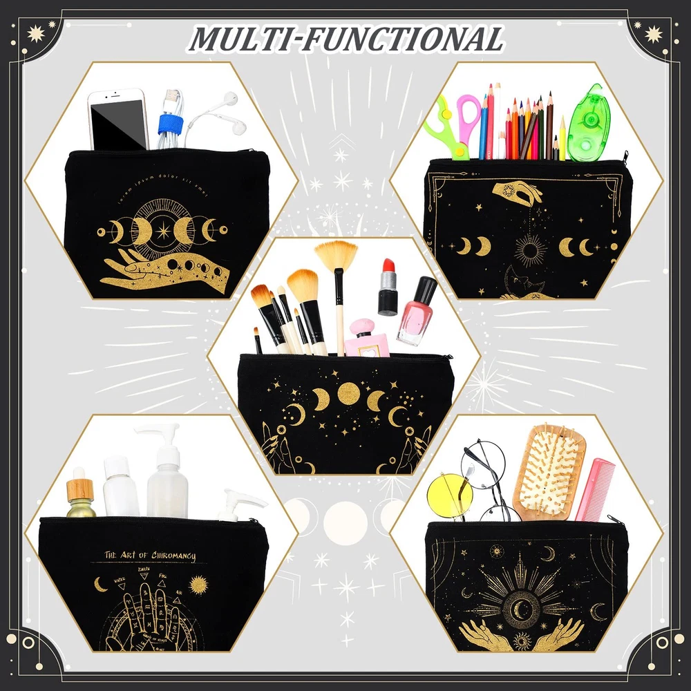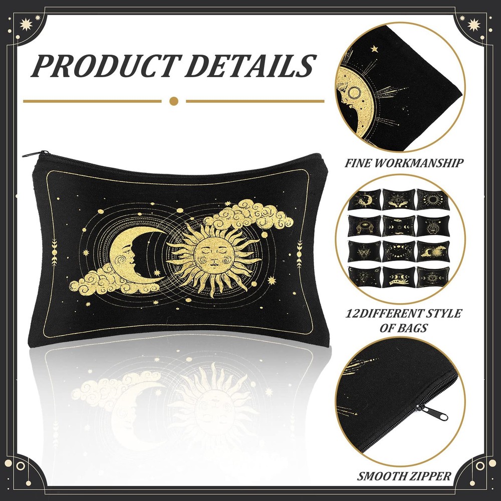 Kajaia 12 Pcs Makeup Bags Cute Portable Travel Purse Toiletry pocket Make Up Organizer Storage Zipper Pouch Makeup Brush Cosmetic Bags for Women Adult Aesthetic Stuff(Witch Tarot) Boho Style with Zipper Design: each boho cosmetic bag is printed with patterns in boho style, colorful and unified design make the bag stand out from others, in addition, the gold zipper make the bag more exquisite and also ensures items are not easy to drop during using process Rich in Choices: you will receive 12 pieces of boho makeup bags, each style is printed with beautiful patterns, sufficient quantities and cute patterns are enough for your daily use and replacement, you can also share with mother, sister and others Enough Capacity to Store: the retro makeup bag for purse is about 23.5 x 17.5 cm/ 9.25 x 6.9 inches, enough capacity to store your lipsticks, earphones, keys, handkerchiefs, and others to keep them in order, you can find items quickly Washable and Reusable: canvas makeup pouch is made of quality canvas, which is soft, light in weight, washable and reusable, easy to clean, sturdy enough to serve you for a long time, you can use with confidence Widely Applied: these quotes printed cosmetic pouches can be applied as makeup bags, travel bags for wedding, travel, business trip, camping and other outdoor activities, they are also nice to store keys, phone, card, jewelry, cosmetic items and so on, practical and delicate, you can also send them as ideal presents to mates, family, girlfriend and others on important days Description Features: Inspirational effect: These canvas makeup bags are printed with boho elements, cute and colorful, which can help you change pessimistic feeling and face the life positively. Practical gift for female: You can send cute cosmetic pouches with zipper as nice present for women on birthday, anniversary, Christmas, the practical gift can be welcomed by many people. Specifications: Main material: canvas Color: as the pictures shown Size: about 23.5 x 17.5 cm/ 9.25 x 6.9 inches Package includes: 12 x Boho makeup bags Notes: Manual measurement, please allow slight errors on size. The color may exist a slight difference due to different screen displays. SHIPPING Domestic Buyers - We have confidence in our products, but if you are not fully satisfied please contact us within 30 days of purchase and you will get full refund. - We ship within 3 business days of payment, usually sooner - We offer FREE shipping on all orders! - We only ship to the lower 48 states, no APO/FPO addresses or PO Boxes allowed International buyers – please note: Import duties, taxes, and charges aren't included in the item price or postage cost. These charges are the buyer's responsibility. - Please check with your country's customs office to determine what these additional costs will be prior to bidding or buying. * Order Cancellation Policy ** You can return a product for up to 30 days from the date you purchased it. 1. The seller reserves the right to cancel the special case only due to eBay cancellation fee. 2. The decision of seller is the final. 3. The seller will respond to the cancellation request within 2 business days. Please wait for the result of cancellation. 4. In case the cancellation is not completed by some reasons, the buyer can follow the options below to get the refund. 4.1 The buyer can reject the item when it arrives. 4.2 The buyer can send the item back to the seller within 30 days If the buyer receives item (USA Shipment ONLY). The seller will provide the FREE return label to the buyer when the buyer opens " Return Item" case on eBay by using the reason as "Change my mind" ONLY. 5. When buyer has placed the order. The order will be processed and completed by automatic warehouse system within 5 minutes. In case that buyer sends the cancellation request after 5 minutes of placing the order, the request will be rejected. **Sending direct message to cancel the order is not allowed for every case.* Return Policy For the return case - If buyer would like to return the items for refund or replacement, please CONTACT SELLER to receive the free return label from seller. The refund or replacement will be processed with the tracking number of return label which is provided by seller only. The other ways of return which are not approved by seller will not be processed for the refund or replacement.