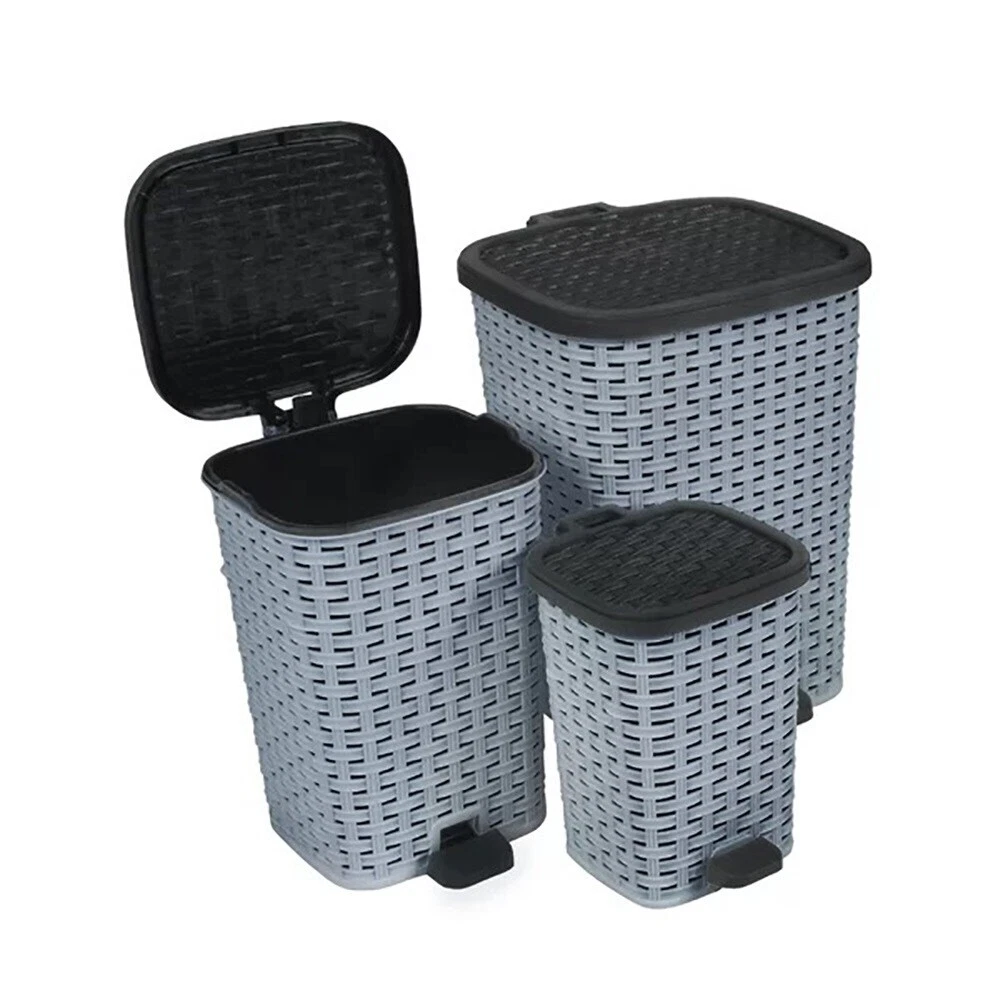 Give your office, bathroom, guestroom, or master bedroom a stylish look with this basket-weave-designed compact trash can. Comes with a strong foot-pedal that opens it easily with a step of your foot.Features: Open type: Step on Room use: Bedroom; bathroom Opening width - side to side: 9.5 Inches Weather-resistant: Yes Tarnish-resistant: YesThis product will ship to you in one (1) box. Free Shipping Over $49.99* Details 12 qt Wicker Step Trash Can Product Description: Give your office, bathroom, guestroom, or master bedroom a stylish look with this basket-weave-designed compact trash can. Comes with a strong foot-pedal that opens it easily with a step of your foot. Features: Open typeStep on Room useBedroom; bathroom Opening width - side to side9.5 Inches Weather-resistantYes Tarnish-resistantYes This product will ship to you in one (1) box.