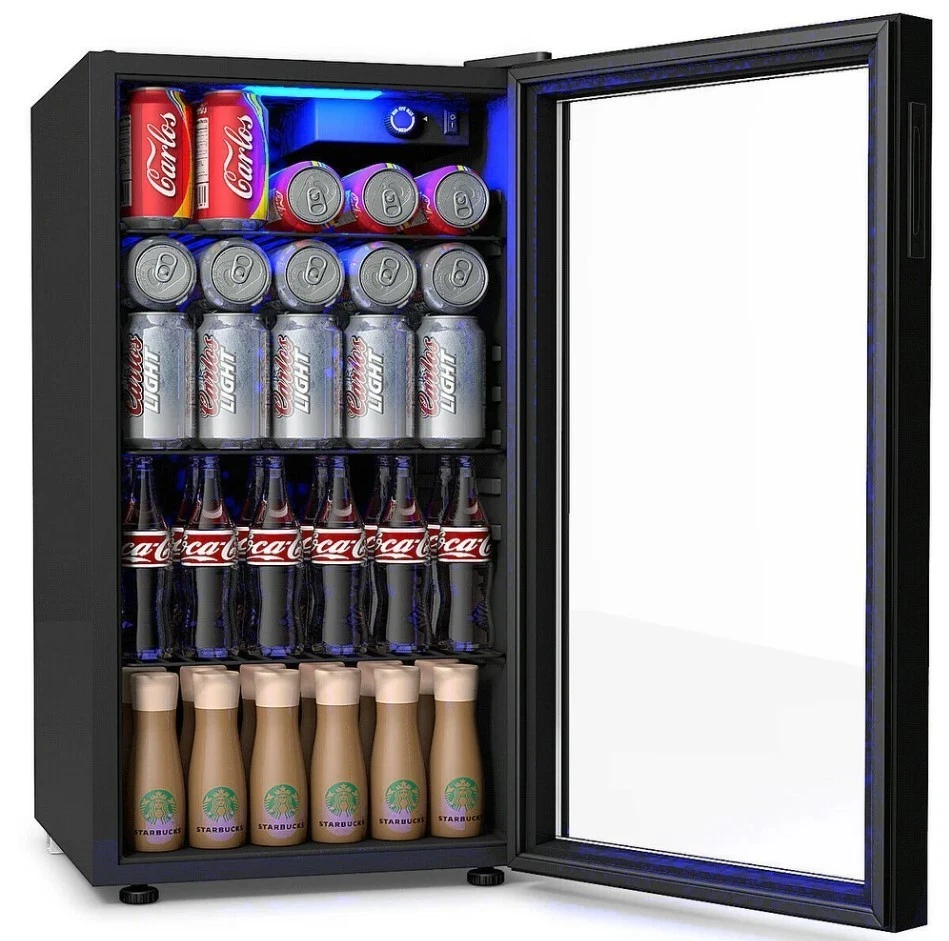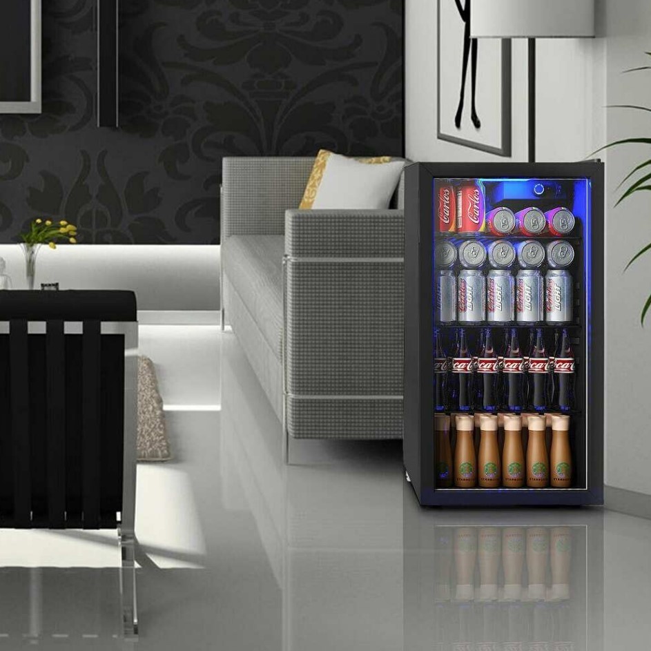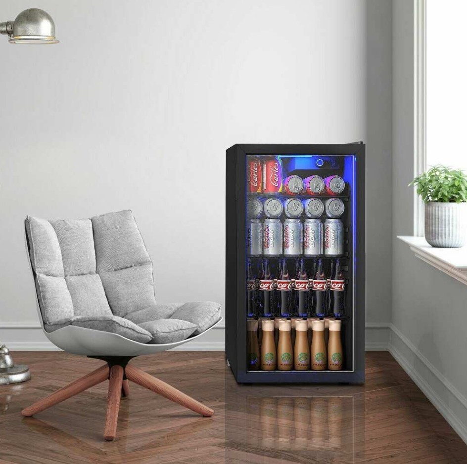 120 Can Beverage Refrigerator Beer Wine Soda Drink Cooler Mini Fridge Glass Door