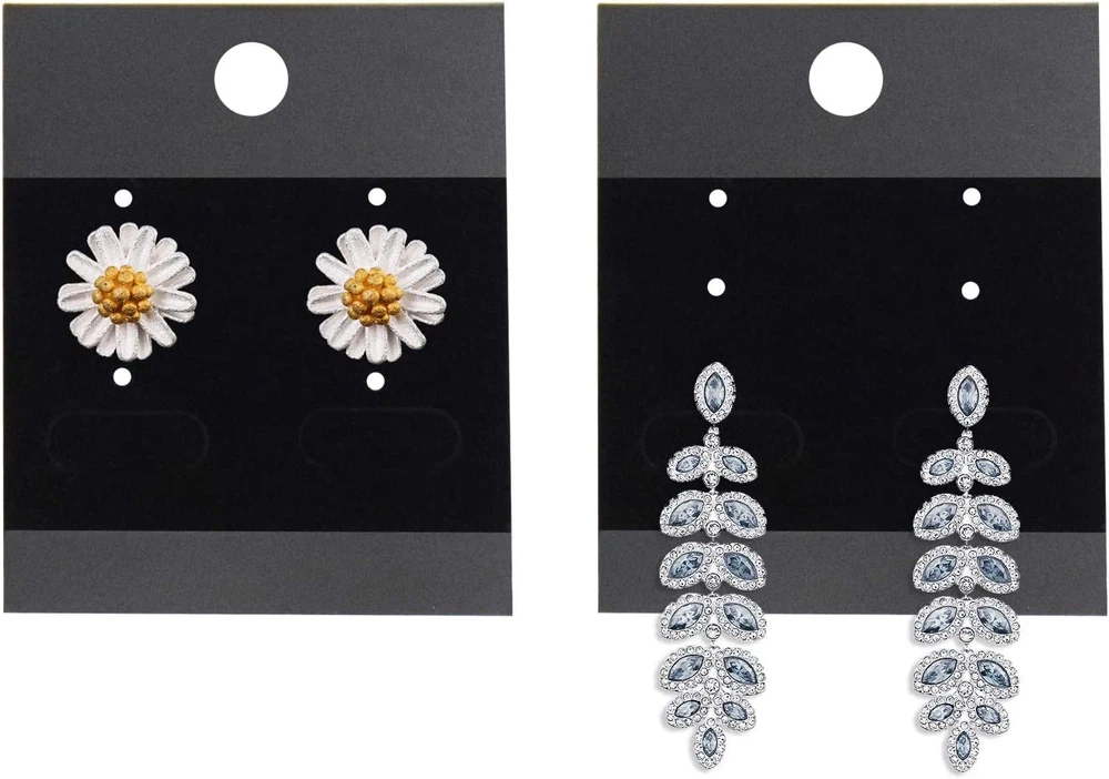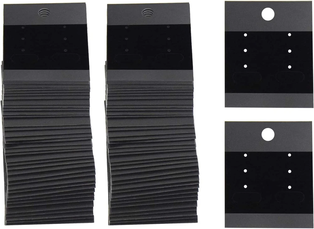 Velvet plastic earring display cards with 6 small holes for displaying earrings, ear studs; suitable for jewelry accessories displays, showcases and counter tops and other craft shows Size :1.65" Wide x 2" Length inches These hook top cards have holes for small post, hoop or dangle earrings its perfect to retail store and personal correction use Earring cards can be used as earring tags / jewelry display card / earring studs price tags / jewelry price tags Package comes with 120 pieces plastic earrings display card Product Description