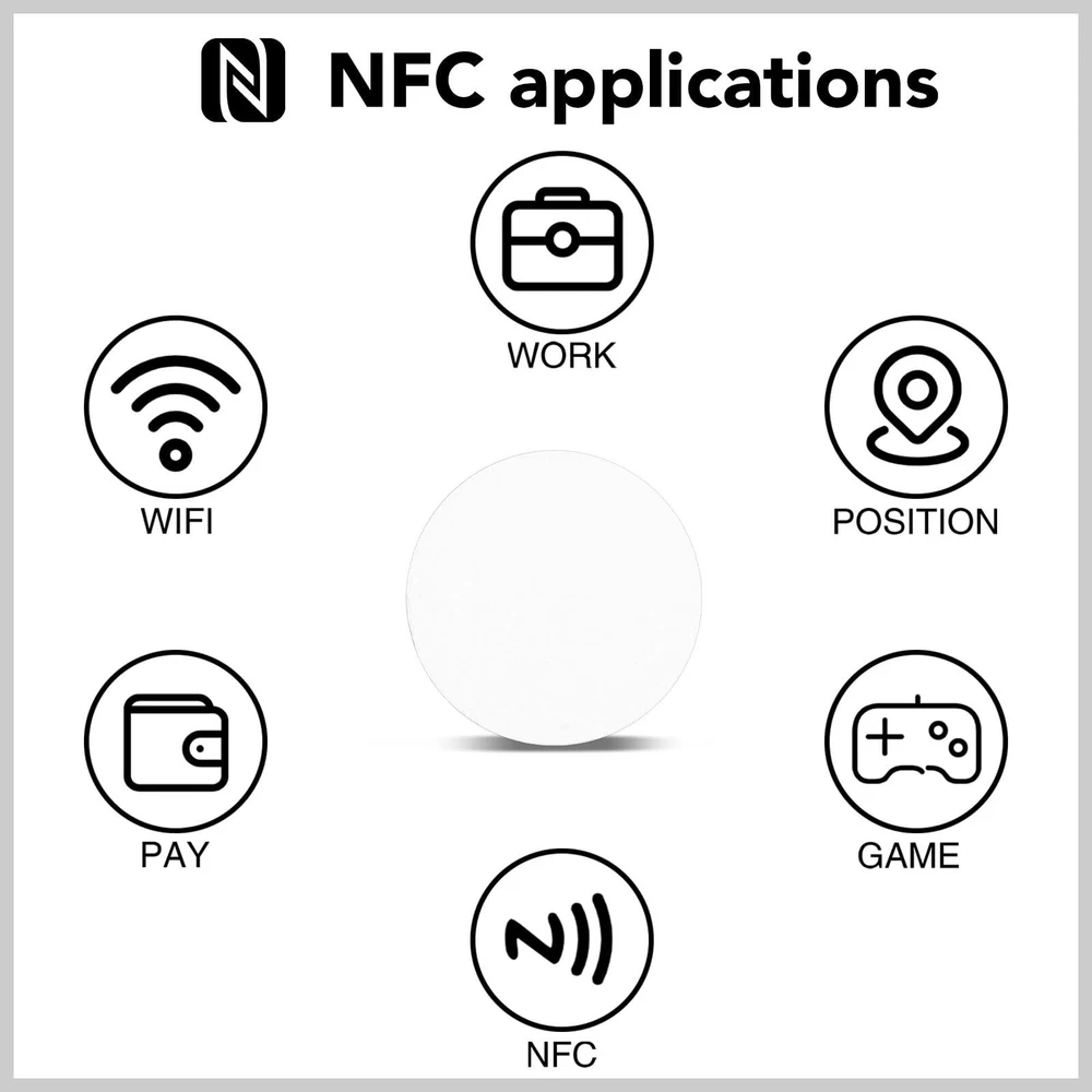 Specifications: Material:PVC Color:as shown in the pictures Size: NFC card is 25 mm Our Features: 1.The size of the round NFC card is 25 mm in diameter, small and light,easy to carry. 2 NFC chip has enough memory, including 504 bytes, to provide you with enough storage space, and has a read/write lock function. 3. 60Pcs Nfc tags with storage box can be given to colleagues, friends or family to experience intelligent life. Package includes: 120 Pcs NFC Tags 【New PVC Material】:The surface of the nfc tag is made of new PVC material, which has good stability. There is adhesive on the back, and the strength of the adhesive is convenient for fixing. The size of the NFC card is 25 mm in diameter, small and light, and it is stored in a storage box, which is convenient for you to carry and use. 【Easy to Operate】:You can hover your phone over the nfc tag for ease of use and the data will be automatically entered into your phone.Please note that it is not suitable for use in strong magnetic environments and metal surfaces, which will destroy its functions. Please note the product description before purchasing. 【Storage of Data】 :NFC tags chip has 504 bytes in stock, providing you with enough storage space, and has a read/write lock function, which can quickly write the information you want. Compatible with TagMo Amiibo and all Android that support NFC function, data can only be edited once (Note: When the device is written to the card, the lock option must be checked, otherwise the game console will not recognize it). 【Wide Application】:NFC tags can be applied to outdoor mobile phone holder tags, electronic tag shelves, smart advertising, product authentication, etc. It can both automate tasks, share information, and enhance convenience. 【Exquisite Gift】: 120 Pcs NFC tags can be given as Christmas gifts to colleagues, friends or family members to experience smart life. This is ideal for gamers and collectors.