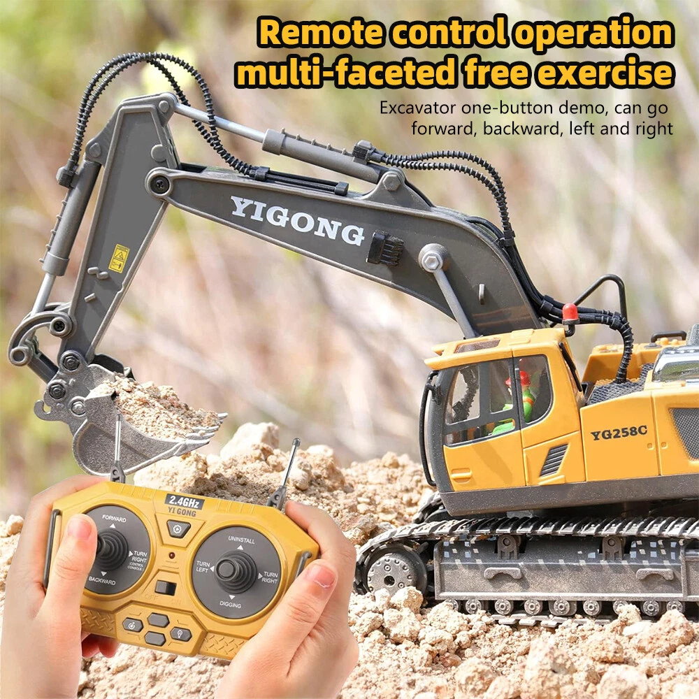 Advantage: 1. Made of high-quality ABS material, with metal shovel ,non-toxic, odorless, safe and durable. 2. Flexible alloy excavator bucket is strong, wear-resistant and impact resistant. It can move sandstone, stone and so on. 3. 2.4GHz frequency provides further RC distance and more accurate operation, with excellent anti-interference performance. 4. High simulation music and LED light functions add more fun when playing. 5. 680 ° rotation enables it to move object in different directions. 6. Powerful and flexible arms and buckets can be moved to load or unload soil, sand or anything else. 7. Two tracks provide strong traction and durability. 8. Easy to operate and great gifts for children. Specification Product material: plastic + metal + electronic components (alloy version) Product color: yellow gray Number of channels respectively: 11 channels Product frequency: 2.4G Body battery voltage: 3.7V Applicable age: 4~8 years old + Body battery charging time: 120 minutes/battery Product life time: about 40 minutes Remote control batteries: 2 AA batteries (not included) Charging plug type: USB charging cable Product remote control distance: about 30 meters Alloy excavator product size: 28 * 10.5 * 28CM Alloy excavator Body battery capacity: 1200mAh, 2 lithium batteries included Function: Alloy excavator remote control mode: left hand forward and backward/table left and right turn, right hand left and right turn/bucket up and down. Alloy excavator product features: 1.Simulation modeling, bright colors, 1:20 size, suitable for indoor and outdoor play, more suitable for multi-site control; 2.2.4G signal without interference, remote control distance; 3.Forward, backward, left turn, right turn, digging arm can be excavated and unloaded, the worktable can be rotated by 680 degrees remote control, one-key demonstration, lighting, sound effects. One set contains: 1 x Car 1 x Remote control 1 x Instruction manual 2 x batteries 1 x Charging cable 1 x Screwdriver