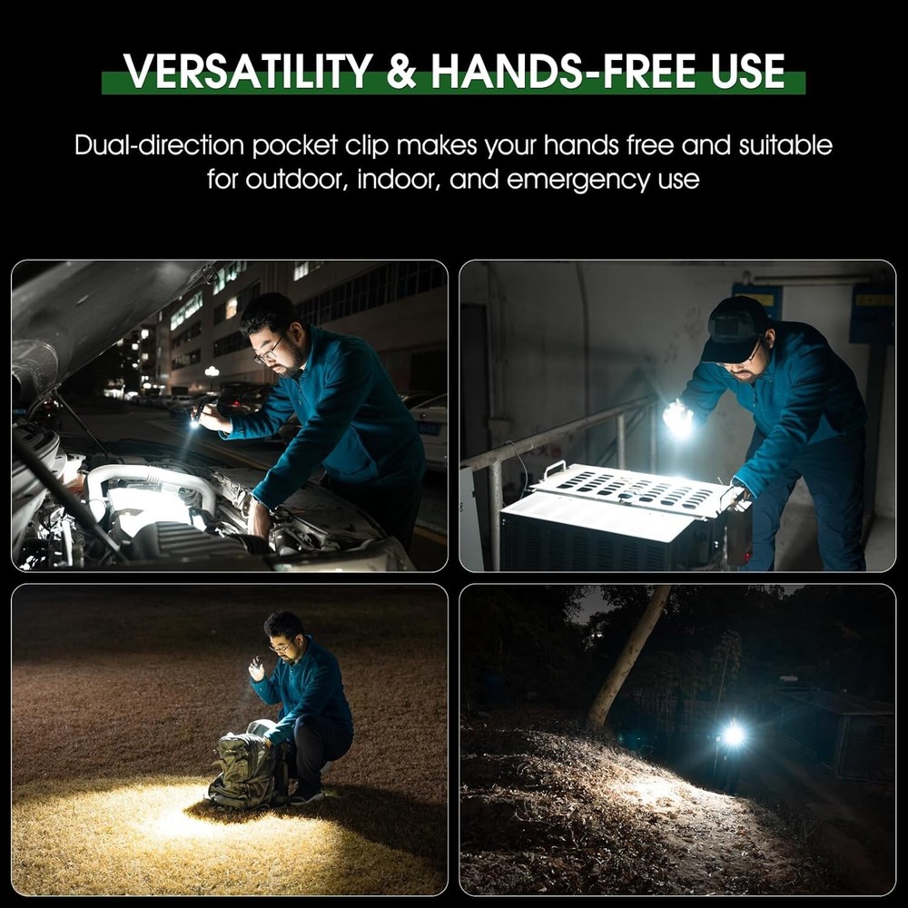 ALTO RENDIMIENTO: Esta linterna superbrillante emplea LED P8, que ofrece un potente haz de 1200 lúmenes que se extiende hasta 115 metros. Con cuatro modos de iluminación (alto, medio, bajo y estroboscópico), los potentes lúmenes altos de las linternas satisfacen las necesidades de iluminación en varios escenarios, desde caminatas y paseos con perros hasta uso diario y emergencia. COMPACTA Y PORTÁTIL: Con tan solo 3,72 pulgadas y un peso de solo 60 gramos, las pequeñas linternas potentes ocupan un espacio mínimo en el bolsillo, lo que maximiza su portabilidad. Equipada con un práctico clip, asegure sin esfuerzo la linterna de bolsillo L2 a su chaqueta, mochila, sombrero o cinturón para un fácil acceso en sus viajes. DURABILIDAD RESISTENTE: Fabricada con una aleación de aluminio resistente de grado aeroespacial, la linterna táctica no solo es duradera, sino que también es un equipo EDC imprescindible para los entusiastas del aire libre. Con resistencia al agua IPX6 y resistencia al impacto de 1,5 metros, se enfrenta sin miedo a las condiciones climáticas desafiantes y las situaciones inesperadas, lo que la convierte en una compañera confiable para acampar, hacer caminatas y el uso diario. RECARGABLE POR USB-C: Equipada con una batería recargable y compatible con baterías AA estándar, la linterna AA recargable garantiza que nunca te quedes a oscuras. El cable de carga USB C incluido permite una carga conveniente en casa, en el automóvil o mientras viajas, lo que hace de esta mini linterna la herramienta ideal para viajes por carretera improvisados y escapadas de fin de semana. ILUMINA DONDE LA NECESITES: No es solo una linterna de mano, es una herramienta versátil para tu vida diaria. Ya sea que estés explorando las maravillas de las actividades al aire libre, navegando por las junglas urbanas o simplemente necesites una iluminación confiable durante los cortes de energía, esta linterna compacta de alta potencia es tu compañera de confianza.