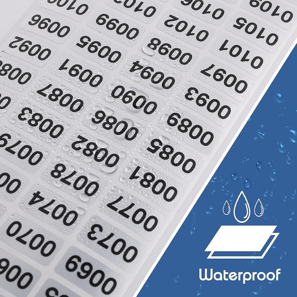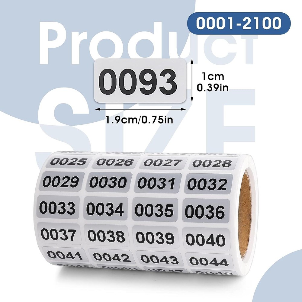 0001-2000 Inventory Number Sticker Labels Self Adhesive Waterproof Consecutive Color: Silver, Black Size: 0.39 x 0.75 inch Material: self-adhesive Shape: Rectangular You will receive 2100 pcs number stickers from 0001 to 2100. Sufficient quantity to meet your large number usage needs. These inventory stickers are made of waterproof material and self-adhesive, with clear printing, sturdy and durable. The size of each numbered sticker is about 1 x 1.9 cm/ 0.39 x 0.75 inches, appropriate size, suitable for different scenes. These inventory tags are easy to apply or peel off, with black numbers and a silver background, making them easy to identify. These serial number stickers can be widely used in inventory management, book organization, shipping packaging, and more. Return Policy: We offer a 30 day return policy from the receiving date. Please contact us for a Free Return Label. Please use our return label so it will go back to our supplier and we can do a refund or replacement afterwards. Feedback: Your satisfaction is very important to us! If you have any problem with your order, please contact us and we will do our very best to make you satisfied. As long as you are happy with your purchase, please leave a positive feedback for us. We will always leave you a positive feedback in return. If you have any problem with your purchase, please do not leave a negative feedback. Please Contact us ... and your issue will be solved quickly and positively We are a small family-owned business trying to make a living, not a huge company that does not care ... We will ALWAYS do our best for you!