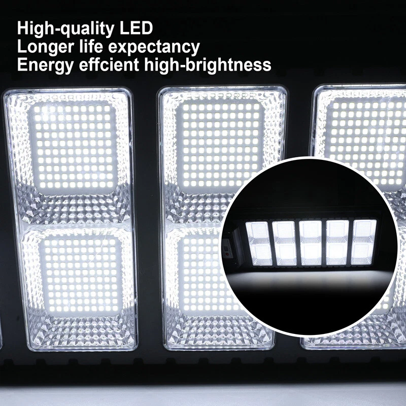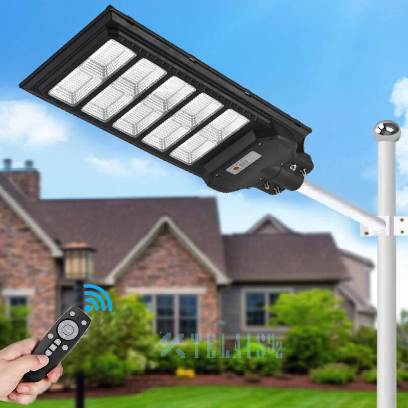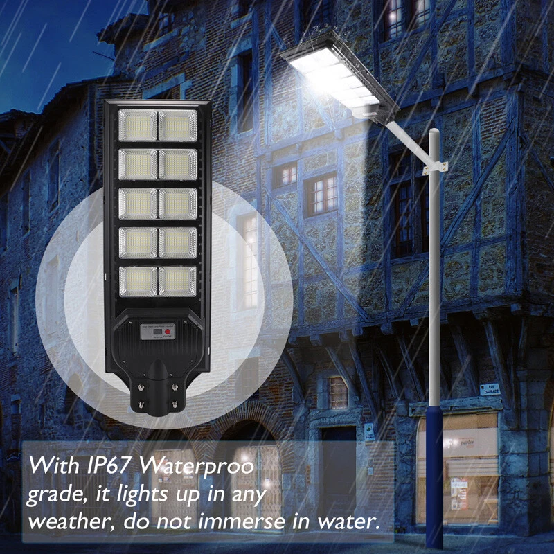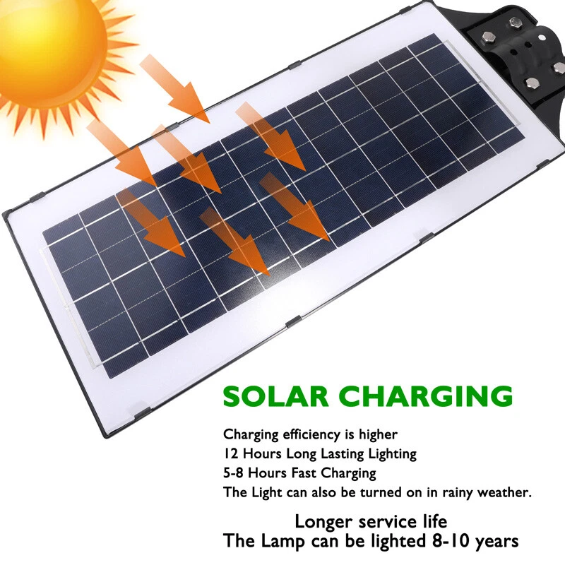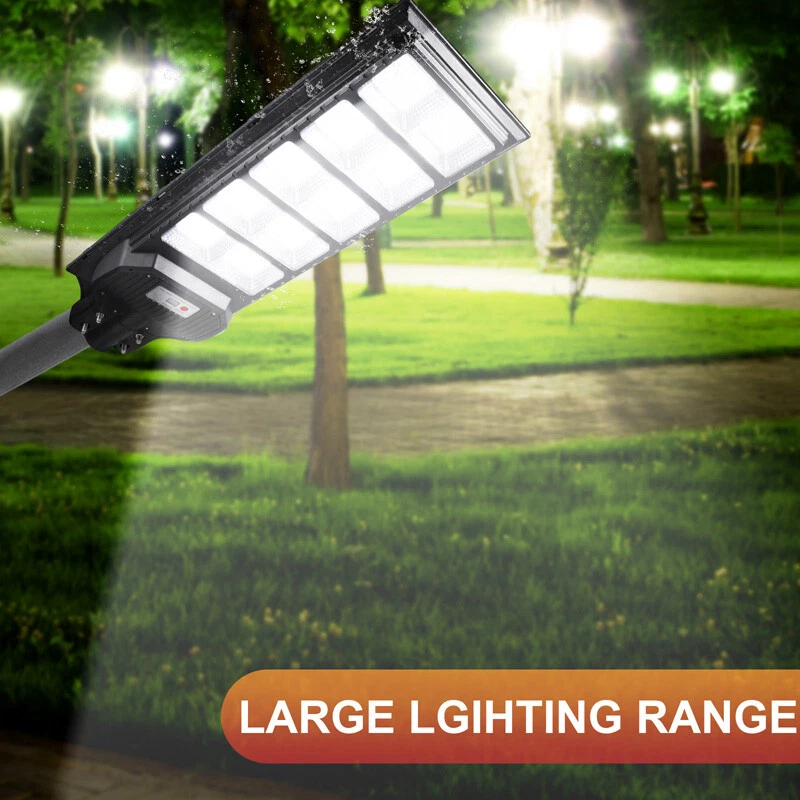 120000lm Commercial Solar Street Lights LED Outdoor Dusk Dawn Solar Super Bright Ship within 24 hours. 100% New & Excellent Quality Strictly QC, Each item was fully checked before shipping FREE & FAST Shipping delivery with Tracking Number Features: - Remote Control & Adjustable Support ,This outdoor led solar light has classic adjustable bracket that enables you to adjust the exposure angle of the solar lamp according to the operating environment. Besides, the remote control is more convenient for you to adjust the working mode of the lamp at any time,you don't have to use a ladder. - LED Brighter & Wider Lighting ,This solar motion sensor light equipped with upgraded high quality LED lamp Beads and newest energy management chip, which increases the angle and area of illumination by 50%. - All-Season Working Light ,LED solar light absorbs and converts sunlight into electricity,efficient solar panel has good heatproof and IP67 Waterproof function and can continue to work during the cold winter months,lighting up your life in any weather and any season. - Super Long Lifetime ,Solar powered light is IP67 waterproof that it completely protects circuit and battery and makes its life span 2 times than others. - Using microwave body sensing technology makes it more energy-efficient, light on when sensing motion, dim light when sension no motion. - Polycrystalline Solar Panel convert solar energy into electricity, more environmentally friendly. - High hardness , sealed and IP67 Waterproof, easy to install and durable. - No pollution, energy saving and environmental protection - Application: Outdoor wall or pole in Plaza, Park, Garden, Courtyard, Street, Walkway, Pathway, Campus, Farm, Perimeter Security etc.. Note: Ultra-Bright Remote Outdoor Led Solar Flood Light Every Solar-powered LED Light is built-in with LEDs that together provide a brighter, more efficient lighting system. Wider Illumination Range & Longer Motion Distance Descriptions: - 3 Mode, light control + Radar motion + remote control Super Simple Installation The light can be mounted on the porch/wall/tree/pole with provided accessories in seconds, and no need cable or wire, save your much time. Wattage: 1000W Fully charged lighting: 20 hours Solar panel: 6V/30W Battery capacity: 3.2V 30AH Product function: radar + light control + remote control Lamp body size: 782*242cm Lamp beads: 1000 Irradiation area: 250 square meters Installation height: 4-6m Material: ABS engineering plastic PC cover Waterproof :IP67 Remote control :Normal light or induction mode Remote control battery type: 2*AAA ( included) Life: 100000 (h) Package Included:(not include mounting pole) 1x Solar Street Light+ 1x Remote Control If you need to purchase a mounting pole, click here to purchase the Street Light + Pole Kit. 120000lm Commercial Solar Street Lights LED Outdoor Dusk Dawn Solar Super Bright | eBay