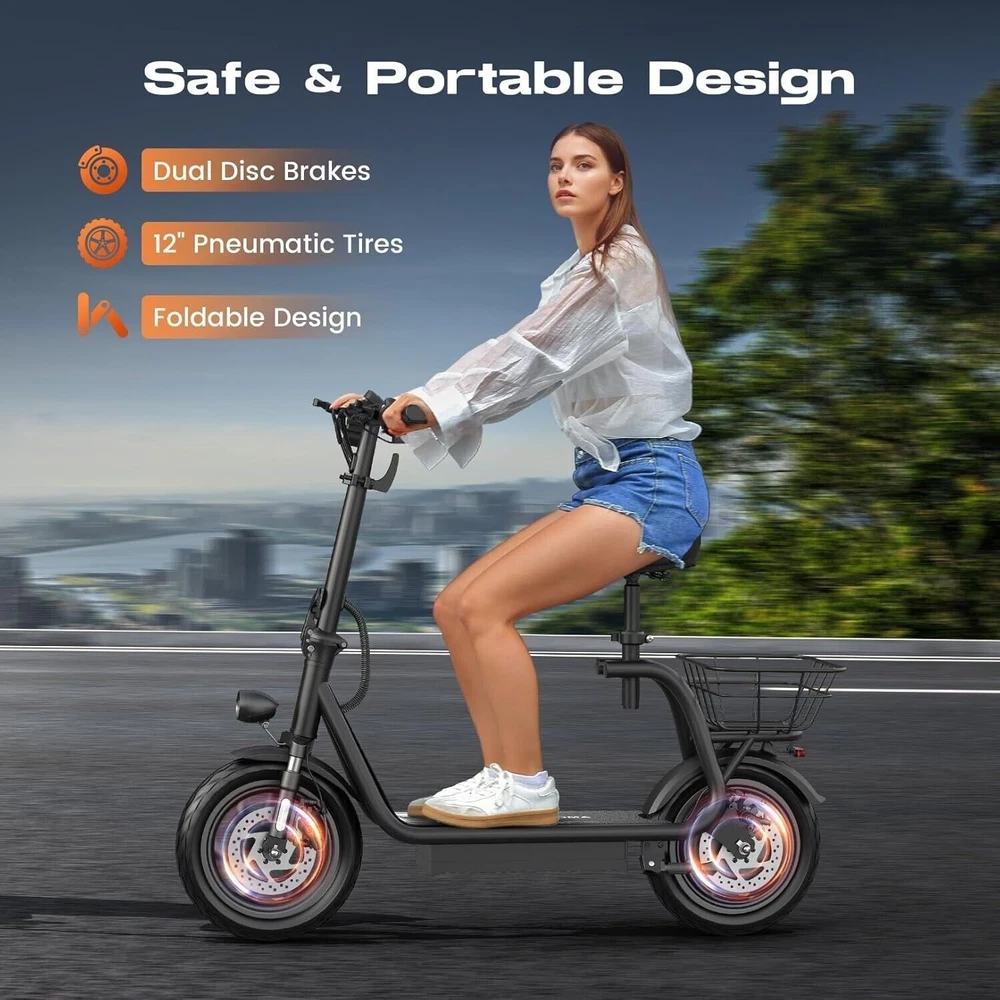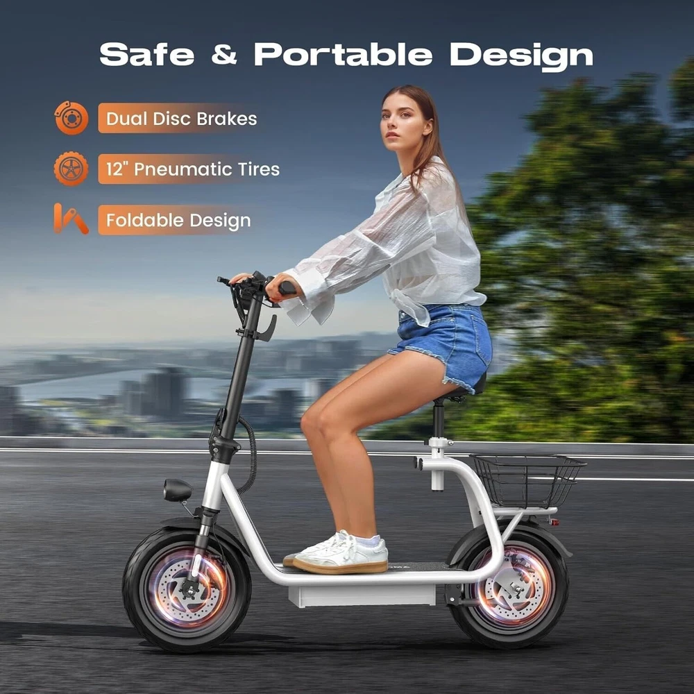 $ 252.91850W Electric Scooter with Seat Basket for Adults and Pets 25 Mile Range 22MPH Speed