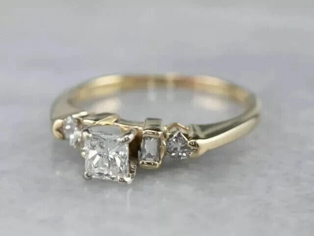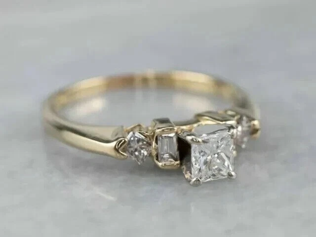 1.20Ct Princess Cut Simulated Diamond Engagement Ring In 14k Yellow Gold Plated