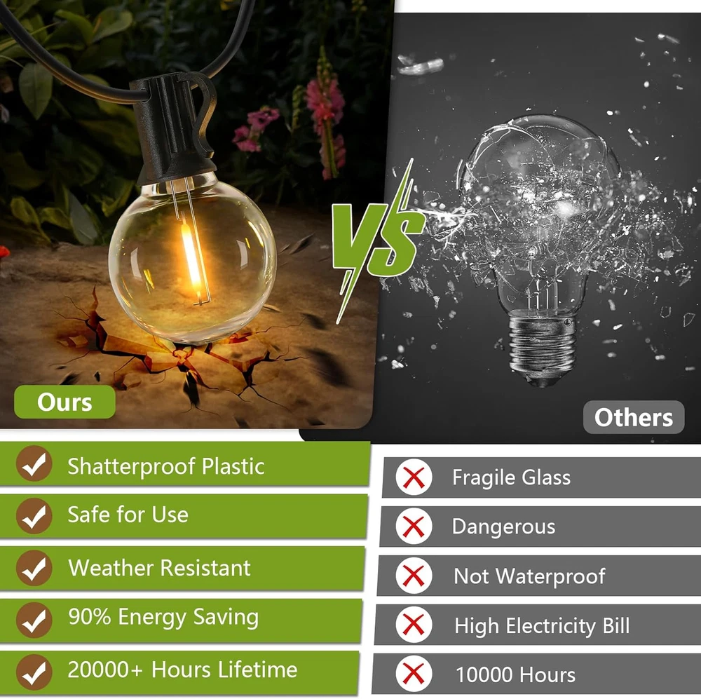 Store New Arrivals Add to Favorite View Feedback Contact 120FT Outdoor String Lights, Waterproof outside Patio String Lights with 62 Shatterproof Dimmable G40 LED Globe Bulbs, Connectable Hanging Lights for Porch Backyard Garden House Party Wedding Bistro Description Item model number AC Light Source Type LED Style 120FT Number of Items 1 Power Source Corded Electric Number of Light Sources 60 Material Type Plastic Theme Christmas Style Number AC Bulb Shape Size G40 Occasion Type Christmas Additional Features Waterproof, Dimmable, Shatterproof Package Dimensions 10.87 x 8.54 x 7.13 inches; 3.64 Pounds Indoor/Outdoor Usage Outdoor Control Method Touch Light Color warm glow Occasion Christmas Special Feature Waterproof, Dimmable, Shatterproof Color Temperature 2700 Kelvin Color Warm White Wattage 1 watts Indoor Outdoor Usage Outdoor Voltage 120 Volts (AC) Included Components '120ft String cables with 60 Sockets', '62 x Plastic Shatterproof G40 Edison LED bulb', '1 x User Manual' Style Name 120FT Size 120FT 【Waterproof and Shatterproof】 Made with durable materials, this string lights for outside has excellent rain, snow, wind, and high-temperature resistance. Additionally, using plastic bulbs instead of glass ensures they are not easily broken, making them a safer choice for your family. Enjoy year-round outdoor use without worrying about accidental drops or damage 【Dimmable Outdoor String Lights】 With dimming capabilities and compatible with most dimmers on the market(dimmer not included), the outdoor patio lights allows you to easily adjust the brightness to create the perfect ambiance. Whether you prefer soft, romantic lighting or vibrant party illumination, this backyard string lights can meet all your lighting needs 【Up to 12 Sets Connectable】 Designed to connect end-to-end, you can easily extend the length of your LED outdoor string lights by connecting multiple sets together (up to1440 feet). Perfect for decorating any small to large space or wrapping around trees and structures 【Energy-Efficient LED Patio String Lights】The outdoor waterproof string lights comes with 60 clear plastic bulbs and 2 spare bulbs. Each bulb consumes only 1 watt of power, providing bright lighting while saving up to 98% on electricity compared to traditional incandescent bulbs. Meanwhile they stay cool during operation for added safety and reliability 【Indoor and Outdoor Ambient Lights】 The 120ft string lights emits warm white light, creating a cozy and inviting atmosphere for any occasion. Perfect for decorating indoor, outdoor, dorm, bar, camping, cafe, balcony, pergola, gazebos, canopy, home, village, apartment, holiday, wedding, birthday, Christmas, party, and more Product Description End-to-End Connectors The end-to-end connectors simplify the setup process. You can easily link up to 12 strands together, covering larger areas without the need for multiple power sources. Ready-to-Hang Design The G40 string lights come equipped with convenient hanging hooks on each bulb, allowing you to effortlessly drape and arrange them in any setting. Heavy-Duty Durability Crafted to withstand the elements, the robust electrical wiring of these lights ensures reliability in any weather. Rain, snow, or sunshine – our G40 string lights maintain their brilliance, creating a captivating atmosphere for your outdoor events throughout the year. Energy-Efficient, Cool to Touch, and Shatterproof Our outdoor string lights boast a total length of 120 feet, featuring 60 lamp sockets and arriving with 62 bulbs (including 2 spares). Crafted from high-quality plastic with LED filaments, these bulbs not only prioritize energy efficiency but also elevate safety during use. Operating at a consistently cool temperature eliminates the risk of overheating, and their durability surpasses that of traditional glass bulbs, minimizing the chances of breakage. Two Fuses for Double Safe One sapre fuse is included in the plug for your convenience. In case the string lights are not operational, kindly inspect the fuse for any signs of burnout. If necessary, replace the fuse to ensure the proper functionality of the string lights. 1 Waterproof 2 Dimmable 3 End-to-end Connectable 4 120FT + 60 Sockets 5 Shatterproof ABOUT US We offer the best prices around on high quality products. Our E-store includes media such as books, movies, music and games while offering electronics, toys, sporting apparel, clothing, tools, general home, garden items and more. SHIPPING We are always working hard to ensure your package arrives as soon as possible. Please understand that some factors like weather, high postal traffic, and the performance of shipping companies are outside of our control. We offer free shipping to the lower 48 states and ship within 2 business days of payment, usually sooner. We do not accept P.O. Boxes. Please provide a physical address. For shipping outside of the continental USA, we only use eBay's Global Shipping Program.The item is shipped to KY and then sent to the rest of the world. International customers are responsible for all duties and taxes. Continue to check out in order to calculate costs for shipping the item to your country. Messages regarding eBay's Global Shipping Program MUST be directed at eBay EXCLUSIVELY. RETURNS We offer a 30-Day Return Policy on items which you are not completely satisfied with. You have the option for a full-refund or an exchange of the item. No returns are available on items shipped outside of the USA. PAYMENT We accept PayPal. CONTACT US This page content is yet to come Please ad us to your favorite seller and visit again later Thank You CUSTOMER SATISFACTION We try our very best to make sure every customer is completely satisfied. If there's a problem, message us! We're happy to help. WE ACCEPT Copyright © 2021 AutoDS. | All Rights Reserved