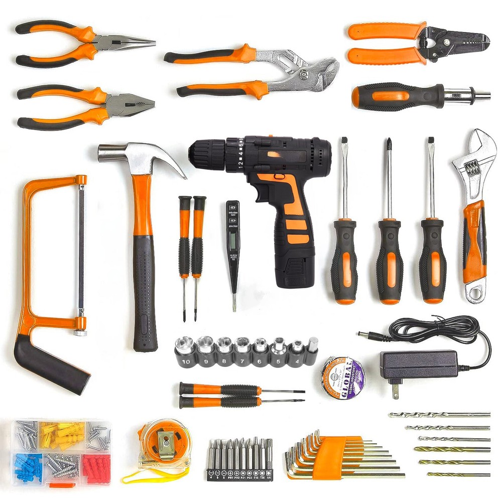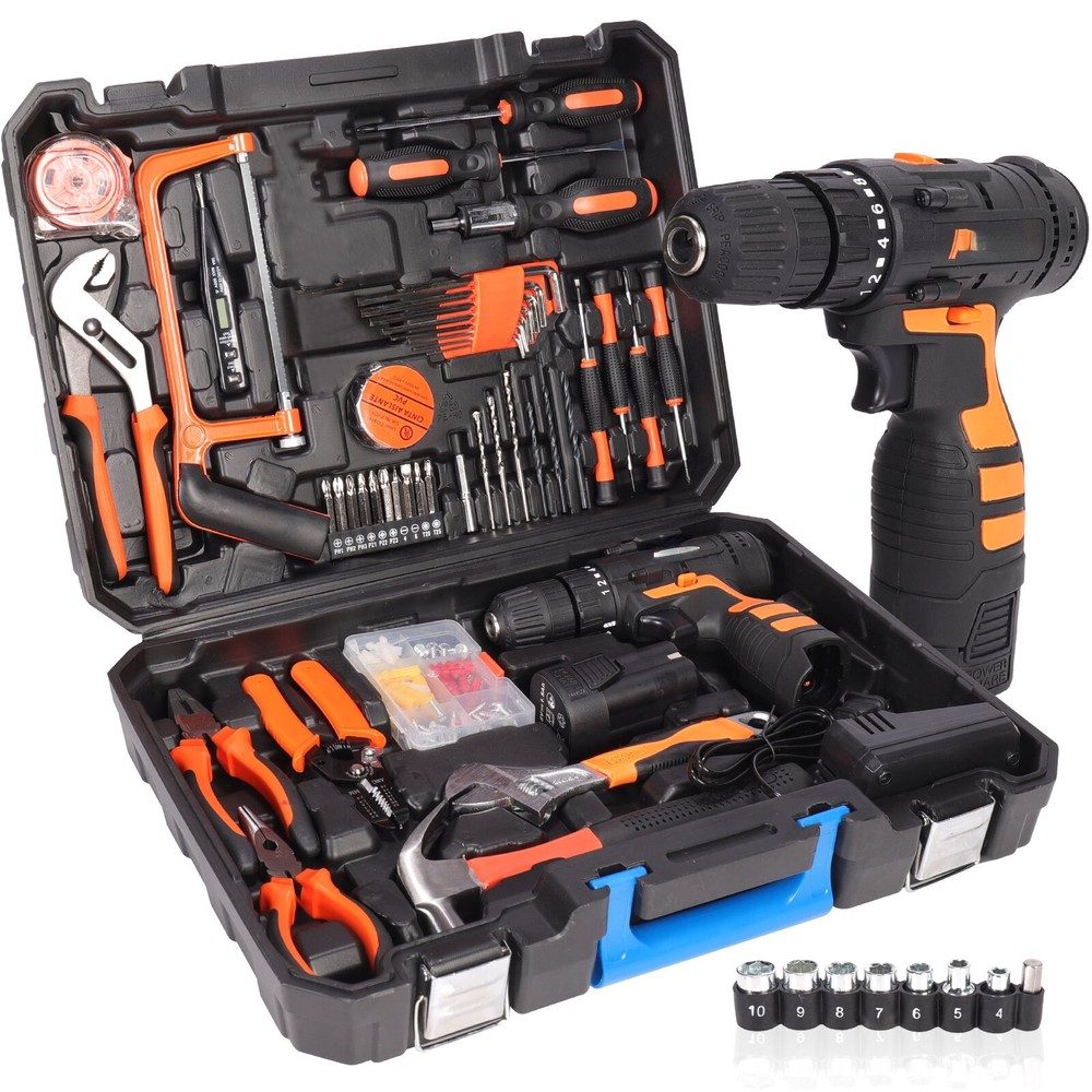 ▌ PRODUCT DETAILS: Description: 【Versatile Tool Set】Our tool kit includes the electric drill, precision screwdriver, adjustable wrench, tape measure, claw hammer, bow saw, and more practical tools to meet all your repair needs. Whether it's home repairs, DIY projects, or car maintenance, the household tool kit provides a comprehensive solution for you. 【Powerful Electric Drill】The household tool kit for home includes multiple different sizes of drill bits to meet various working needs, allowing you to find the right tool for different situations. The large-capacity rechargeable battery provides convenient cordless use for lasting performance. 【Ergonomic Design】The hand tool set features an ergonomic design for a comfortable grip, reducing fatigue during prolonged use. Non-slip design helps you use the tools more effectively, improving work efficiency. 【Portable Tool Case】Designed for portability, the tool case is convenient for carrying and use. The interior is structured to ensure tools are safe, clean, well-organized, and easy to locate. Whether you're on the go or storing at home, it keeps your tools secure and tidy. 【Multiple Sizes of Accessories】The tool kit set includes various sizes of screwdriver bits, covering common sizes to meet different screw-tightening needs in various scenarios. Whatever screw size you encounter, you'll find the right tool for quick and efficient tightening work. Specifications: Voltage: 16.8V Power: 160W No-load Speed: 1400RPM Torque: 5N.M~25N.M Torque Setting: 18+1 Battery: Lithium Battery Package Includes: 1 x 16.8V Cordless Drill 1 x Li-Ion Battery Some other accessories (as shown in the figure) 1 x Plastic Box On Jan 16, 2026 at 02:55:50 PST, seller added the following information: