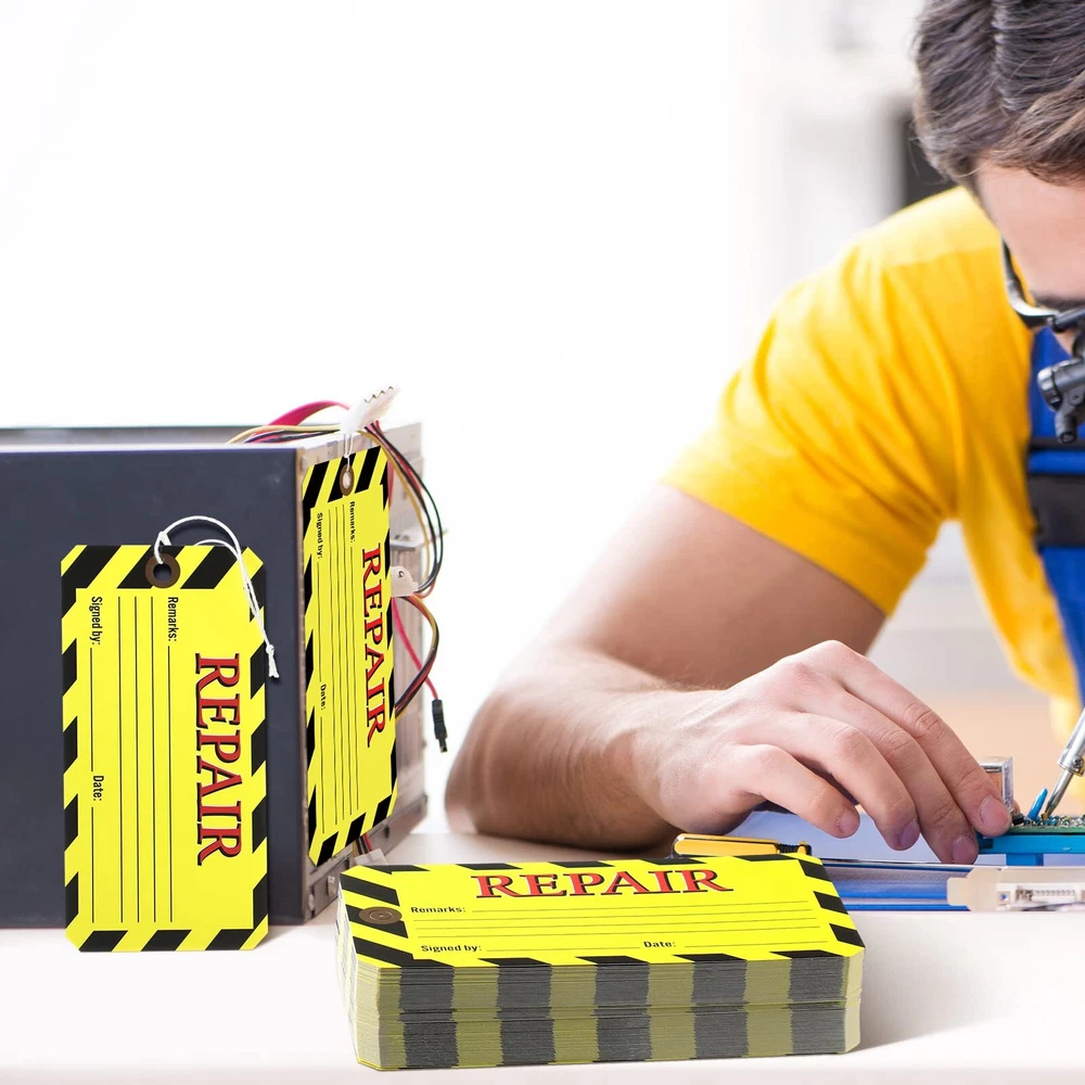 β¨ 120 Pack Repair Tags Yellow Maintenance Required Tags with Wire Production Quality Control Tags with 8 Inch Attached Cotton String, 2.6 x 5.3 Inch β¨ π Product Overview Features: Sharing with others: Sufficient paper tags with strings can meet your different needs in the life, you can also share them with friends, family in need, and those who engaged in related testing work. Easy to use: You can organize your repair tags with strings attached, and write the same serial number yourself, and the tear off stub has the same serial number as the service tags to make it easier to track and find your items. Specifications: Material: cardboard paper Main color: yellow and red Size: about 6.7 x 13.5 cm/ 2.6 x 5.3 inches Package includes: 120 x Repair tags with wires Notes: Note: the surface is covered with waterproof film, after writing the information, it needs to be left to dry, otherwise it may rub. Manual measurement, please allow slight errors on size. The color may exist a slight difference due to different screen displays. Easy to hang: The package provides you with enough tag strings for you, so you can easily hang tags with wire anywhere you like, so practical and convenient for your daily life. π₯ Key Features Satisfy Your Changing Demand: the package contains 120 pieces yellow repair tags, and 120 pieces tag wires; The bright yellow color easy to attract people's attention, and the quantity is sufficient to meet your needs Long Time Using: the service tags with wire are made of heavy cardboard paper, with double sided color printing, and a hole on the top, sturdy and not east to tear, the bright yellow color is easy to be seen; Note: the surface is covered with waterproof film, after writing the information, it needs to be left to dry, otherwise it may rub Meaningful Ways to Apply: use these yellow maintenance tags to identify machinery that is not working at the moment for warehouse, business, and restaurants, these tags also can help monitor production and equipment maintenance Safety Signs: the production facilities and workplaces are inspected for safety compliance requirements; Such kind of red tags with string can help warn safety use and update or display information about equipment status, inspection schedules or maintenance activities Proper Size: the yellow repair tags measure approximately 6.7 x 13.5 cm/ 2.6 x 5.3 inches, suitable size for you to use, and there is enough space on the back, allowing you to update data and signature to fully meet your needs π¦ Shipping Information We ship to the address provided on eBay. Please verify your address before purchasing. Orders will be processed within 1-2 business days and shipped promptly. Typical delivery time is 3-7 business days. If there are any issues with shipping, please contact us immediately. π Return Policy Returns are accepted within 30 days of purchase. Please ensure items are returned in their original packaging and condition. π³ Payment Methods We accept all major payment methods including PayPal and credit cards. π Contact Us If you need assistance, feel free to reach out via eBay messages for a prompt response!