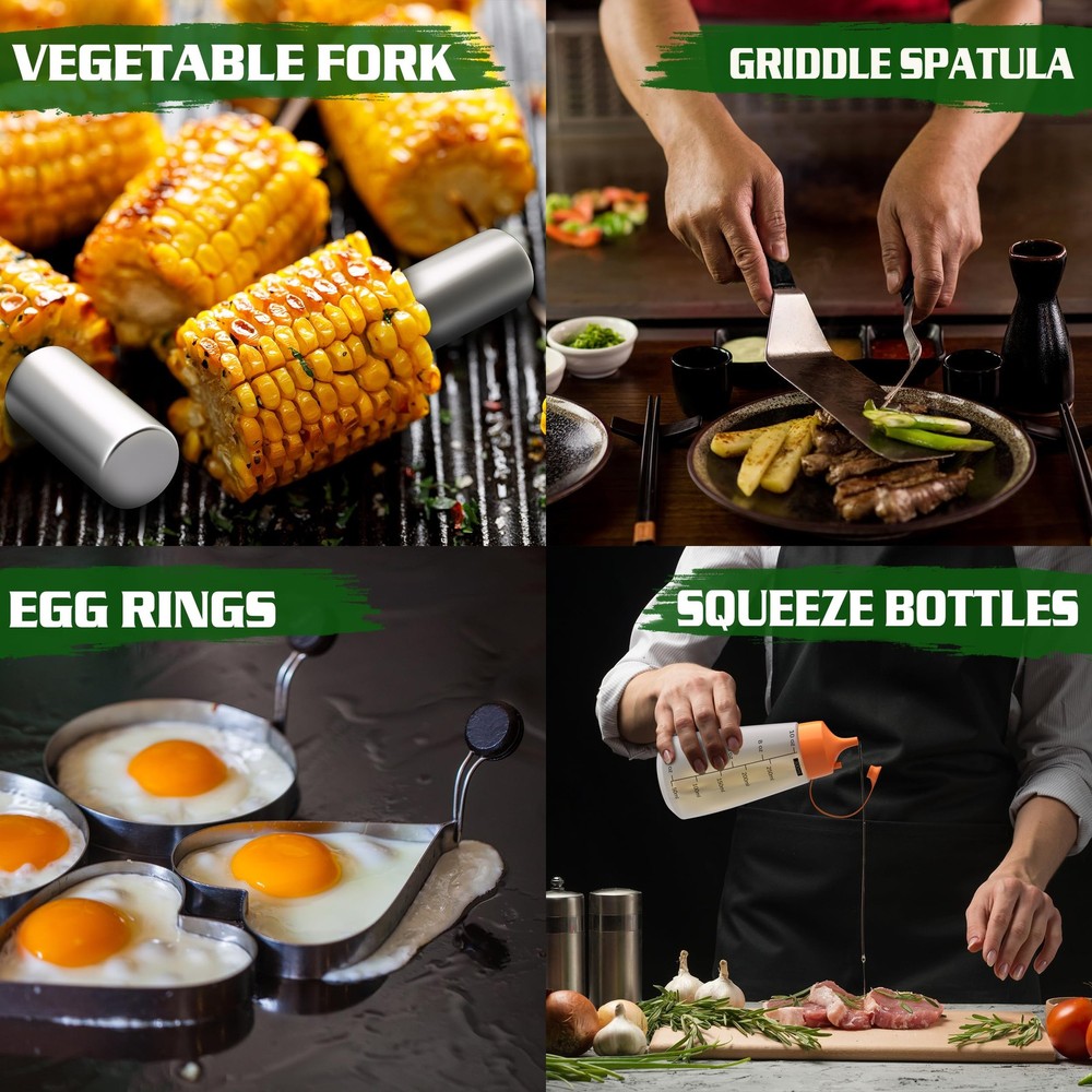 This griddle accessories kit is a game-changer for outdoor cooking! It has everything you need—spatulas, scrapers, basting tools, and even an apron. The quality is solid, and the variety makes grilling effortless. Perfect for Blackstone griddles, camping, or RV trips. Highly recommend for anyone who loves cooking outdoors!