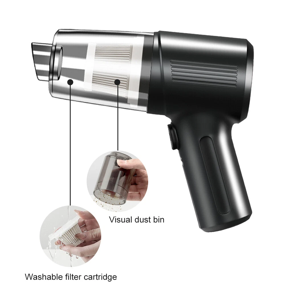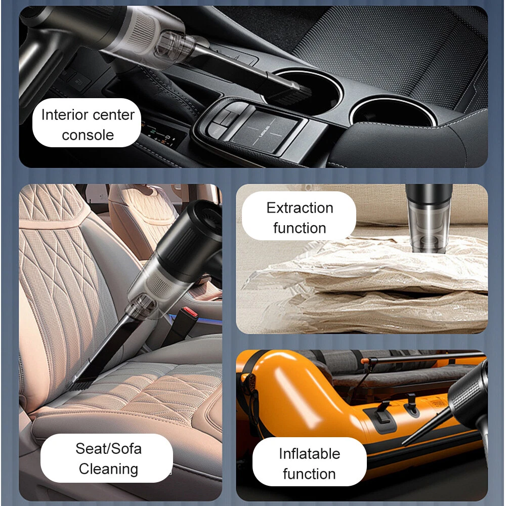 Features: 1. Convenient charging, long life: built-in rechargeable battery, no need for frequent replacement, a charge can meet the needs of many car cleaning, easy to open the repeated use mode, say goodbye to the traditional battery replacement of cumbersome and cost. 2. Wireless portable, easy to use : completely free from the wire bondage, enjoy the convenient experience of wireless operation. Regardless of the layout of the space in the car, you can freely travel to all corners, move freely and clean without dead ends. 3. Strong suction power, stains: 120W strong power to give its excellent suction performance, whether hidden in the crevices of the fine dust, or stubborn stains and debris, can be swept away, but also the interior environment of the car fresh and clean. 4. Wet and dry, easy to clean: unique wet and dry function, easy to deal with different types of cleaning problems in the car. Whether it is spilled liquid or accumulated dust and hair, all can be efficiently dealt with, a car cleaning, multi-purpose covered. 5. Compact size, convenient storage: delicate and compact body design, easy to store and carry, does not take up valuable space in the car. Access at any time, instantly transformed into a small car cleaning guard, for you to create a clean and comfortable driving environment. Specifications: 【Product Name】:Mini car hoover blowing suction pumping all-in-one 【Product colour】: Black / Pink 【Product Style】: Wireless models 【Product Material】: Plastic 【Rated voltage】: 3.7V 【Charging voltage】: 5V 【Power】: 120W 【Vacuum Suction】: 20000Pa 【Battery Type】:Built-in 1200 mAh lithium battery 【Charging port】: Type-C interface Packing list: 1 x Vacuum Cleaner 1 x Brush 1 x Flat Nozzle 1 x Blowing nozzle 1 x Type-C charging cable 1 x User Manual Attention: 1. The colour of the item may be slightly different from the picture due to different light and screen settings. 2. Please allow 1-2cm size difference due to different manual measurement. On Dec 24, 2024 at 00:50:24 PST, seller added the following information:
