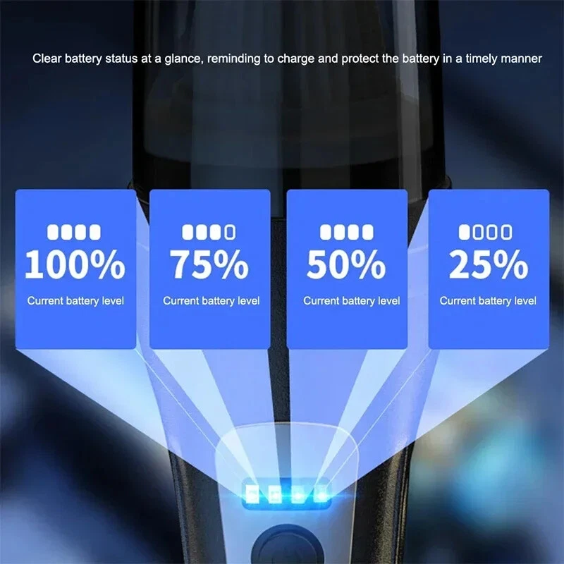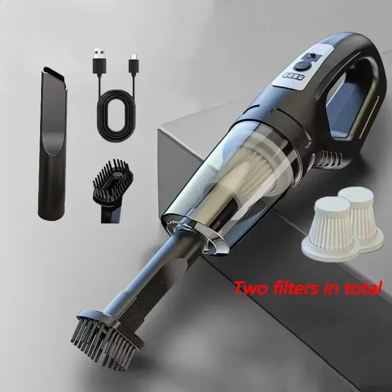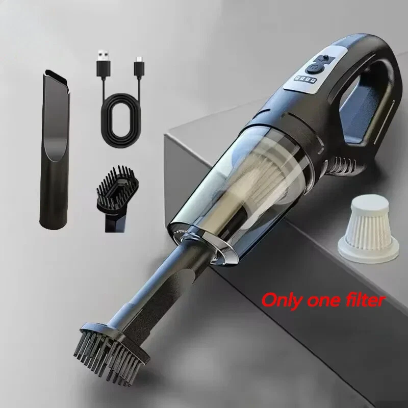 120W Car Vacuum Cleaner Wireless Portable Cordless Vacuum Cleaner USB Charging High Power Suitable for Car Home Pet Hair Features: [powerful motor and lightweight design] This car vacuum cleaner features a powerful motor that provides impressive suction while maintaining a lightweight design. It effortlessly sucks up dust and stubborn pet hair, making it perfect for keeping your car clean. The cordless design ensures convenient maneuverability, allowing even children to easily get to grips and clean with it. [high-capacity battery] The cordless car vacuum cleaner is equipped with a built-in high-capacity battery that provides extended runtime. The USB charging cable allows you to charge it anywhere with a USB port, making it convenient to charge in your car or on the go. [Advanced washable filter] This handheld cordless vacuum cleaner is equipped with a premium washable filter, ensuring efficient filtration and preventing clogging. Simply remove the filter from the dust collection box, rinse it with water and leave it to dry for future use. This saves money on replacement filters and guarantees long-lasting performance. [Multiple nozzles for versatile cleaning] The portable handheld vacuum comes with a variety of nozzles. You can customize these attachments to suit different cleaning needs, helping you achieve deep, professional cleaning results for your car. Whether it's tight corners, upholstery or hard-to-reach areas, this vacuum cleaner has you covered. [Portable and compact] With its compact size and ergonomic design, this wet-dry vacuum cleaner is easy to store in your car and transport. It takes up minimal space while providing maximum cleaning power. Whether you're on a trip, dealing with everyday messes, or preparing for special occasions, this handheld vacuum cleaner is your go-to cleaning companion. Specification: Function: Sweeping Suction Power (W): 120W Voltage (V): 6V Product noise: ≤ 50db Charging method: USB smart fast charging Shell material: Lightweight ABS Product power: 120W Product battery: large capacity lithium battery Application scenario: vehicle/home use This size is measured manually, there may be some errors, please understand. Note: Due to different monitor and light effect, the actual color of the item may be a little different from the color shown in the pictures. -Thank you! Please allow 1-2cm measurement deviation due to manual measurement.