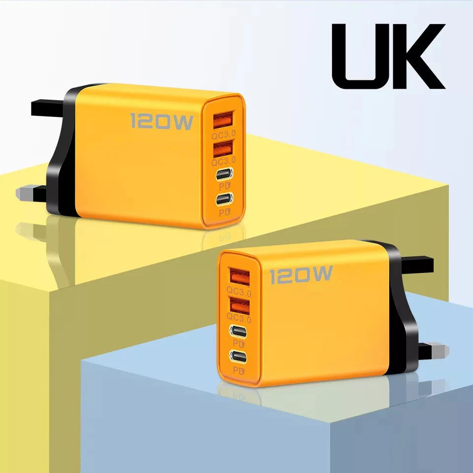 Welcome Store category Store category Phone Case Door Handles & Knobs Electrical Wire Connectors Banana Plugs Screws Nuts & Bolts Drill Bits Other Description 120W Fast Charger USB Type C US UK EU Plug Wall Charger Power Adapter 4-Ports Bullet Points: 4 Ports Charger: Charging up to 4 devices simultaneously has never been easier with this dual Type C and Dual USB-A port USB multiport charger. Let gadgets charge with unrivaled ease and convenience. Efficient Charging Boost: Our USB Multiport Charger provides fast charging with PD charging protocol. Charge your phone from 0% to 60% in just 30 minutes and experience an efficient charging boost like never before. Versatile Compatibility: Charge your mobile phones, tablets, and other devices with ease; our USB Multiport Charger is equipped with Type C and USB ports to charge most devices efficiently. Ideal Device Safety: Made with multiple protection systems, our USB Multiport Charger features short circuit protection and automatically stops charging when the battery is full thanks to its smart chip; the durable ABS shell ensures reliability for extended use. Travel-Friendly Charging: Effortlessly portable, this 4-port USB wall charger is lightweight and easy to carry, ensuring you can charge wherever life takes you. The USB Multiport Charger features dual Type-C ports that can charge your mobile phones from 0% to 60% in no time. With its durable ABS shell, this charger is perfect for everyday use. It's small in size and easy to carry around, ensuring you stay connected wherever you go. Product Details: Input:100-240V-50/60Hz0.5A(MAX) USB-C:5V=3A,9V=2.25A,12V=1.5A USB-A:3.6-6.5V=3A.6.5-9V=2A.9-12V=1.5A USB-C+USB-A :5V=3.4A Name: 120W dual PD+dual USB charger Category: Charger Size: 45.5*48.5*78mm Output voltage: 5V, 2A Material: PC+ABS fire retardant material Color: yellow Applicable: Universal for Apple and Android Packing List: 1* USB Wall Charger Block Note: Due to different lighting and screen settings, the item color may be slightly different from the picture. Due to different manual measurements, please allow a 1-2cm difference in size. Products' Images Seller Information Payment Shipping Terms of sale Return Contact us Our service time Seller Information Seller: jomobill Warehouse Address: Unit 26 Broadgate, Oldham Broadway Business Park #10008125 , Oldham Greater Manchester OL9 9XA UK VAT number: GB 273 9286 64 Payment -PayPal – Only form of Payment that we Accept. Shipping Your parcel will be dispatched within 1 business day after the payment is clear. USA Customer, by default, we will post your orders by epacket delivery from China with tracking number. Other countries' we will post your order by standard China Post with tracking number and Export Information. Terms of sale 1. Please don't make bid on the item if would never pay. 2. If you bid it by mistake, please contact us to cancel the order for you so that we can get the eBay fee back. 3. Combine Shipping is allowed in our store if it is not over weight. 4. And please also realize there is some Jet Lag between our differentcountries when you sending mails but no reply immediately. Return 1. Please don't make bid on the item if would never pay. 2. If you bid it by mistake, please contact us to cancel the order for you so that we can get the eBay fee back. 3. Combine Shipping is allowed in our store if it is not over weight. 4. And please also realize there is some Jet Lag between our differentcountries when you sending mails but no reply immediately. Contact us If you have any questions, then kindly please contact us via the ‘Ask a question’ Tab which is located on the bottom of the listing page. Our customer satisfaction is at the top of our priority. We aim to provide a pleasant shopping experience for all of our customers. If there are any questions or problems, then kindly please contact us via an ‘eBay’ message and we take every effort to answer all of the queries put forward for us within 24 hours. If for some reason you are not fully satisfied with your purchase, then please do not leave negative feedback before contacting us as we will resolve the issue for you. If you are interested in more products then kindly please have a look at our eBay shop. Thank You for shopping with us and we hope to see you soon! Our service time -Customer Service Time AS FOLLOW: -A.M. 9:30 to P.M. 18:00 (from Monday to Friday) in Chinese, Beijing Time -Saturday and Sunday are off line. -Hope you can realize. Welcome Store category Store category Phone Case Door Handles & Knobs Electrical Wire Connectors Banana Plugs Screws Nuts & Bolts Drill Bits Other Description 120W Fast Charger USB Type C US UK EU Plug Wall Charger Power Adapter 4-Ports Bullet Points: 4 Ports Charger: Charging up to 4 devices simultaneously has never been easier with this dual Type C and Dual USB-A port USB multiport charger. Let gadgets charge with unrivaled ease and convenience. Efficient Charging Boost: Our USB Multiport Charger provides fast charging with PD charging protocol. Charge your phone from 0% to 60% in just 30 minutes and experience an efficient charging boost like never before. Versatile Compatibility: Charge your mobile phones, tablets, and other devices with ease; our USB Multiport Charger is equipped with Type C and USB ports to charge most devices efficiently. Ideal Device Safety: Made with multiple protection systems, our USB Multiport Charger features short circuit protection and automatically stops charging when the battery is full thanks to its smart chip; the durable ABS shell ensures reliability for extended use. Travel-Friendly Charging: Effortlessly portable, this 4-port USB wall charger is lightweight and easy to carry, ensuring you can charge wherever life takes you. The USB Multiport Charger features dual Type-C ports that can charge your mobile phones from 0% to 60% in no time. With its durable ABS shell, this charger is perfect for everyday use. It's small in size and easy to carr